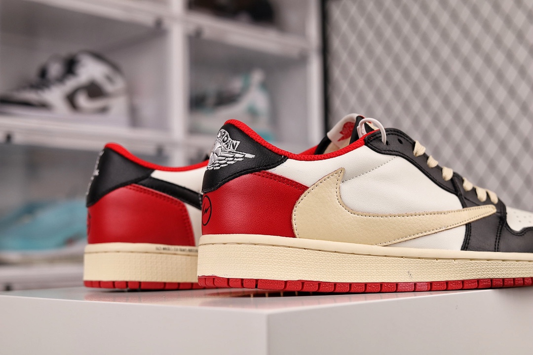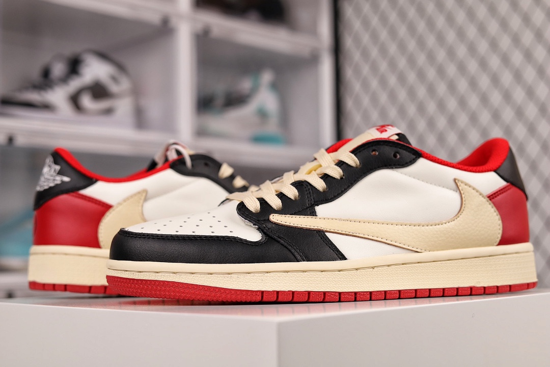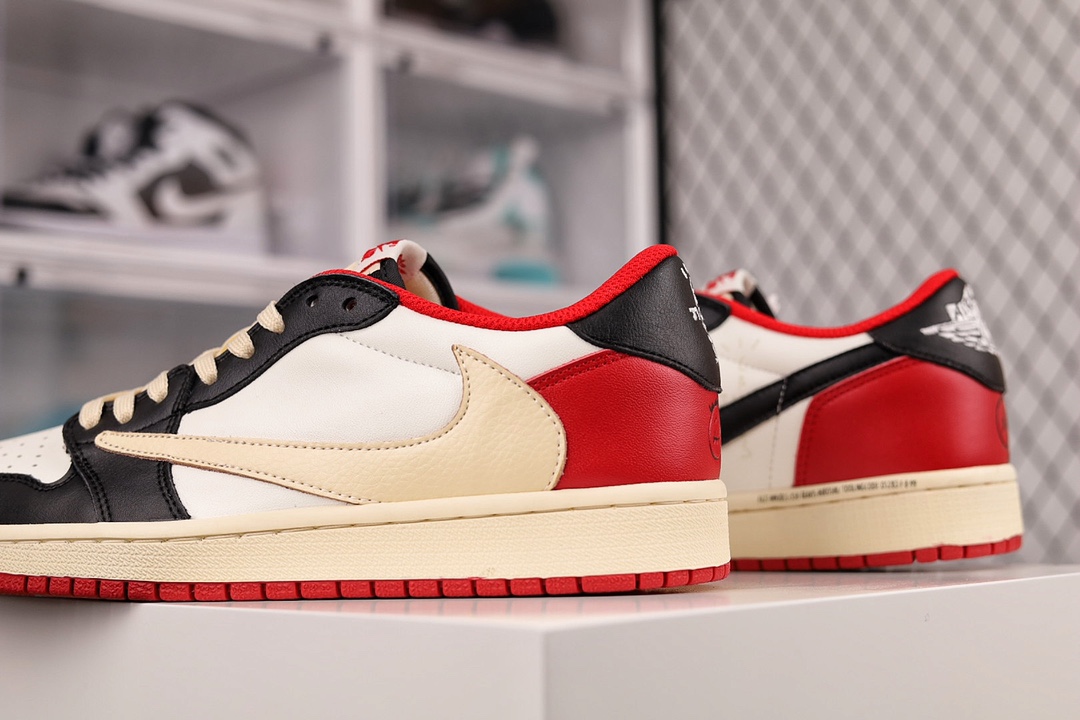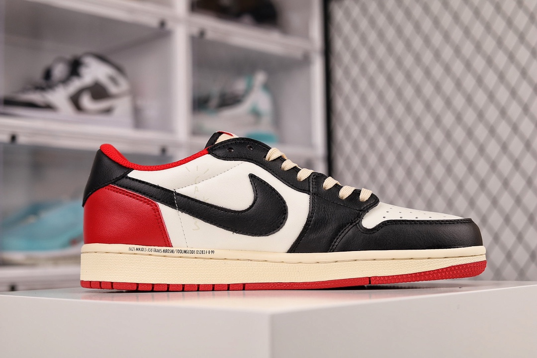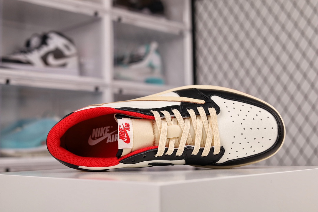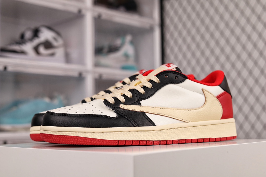 G0 Travis Scott x Air Jordan AJ1 Low QX 倒钩TS联名低帮板鞋 反向倒勾 亮点之处在于鞋侧的倒置 Swoosh。鞋面以棕色牛巴革及白色荔枝皮的混搭设计 反转Swoosh Logo荔枝头层皮打造。错版灵感来源于洛杉矶球鞋店铺收到一双特别的错版 Air Jordan 1“Gold Toe” 的勾子倒过来,之后抄近 H0 00美元 研发出反向勾的设计。