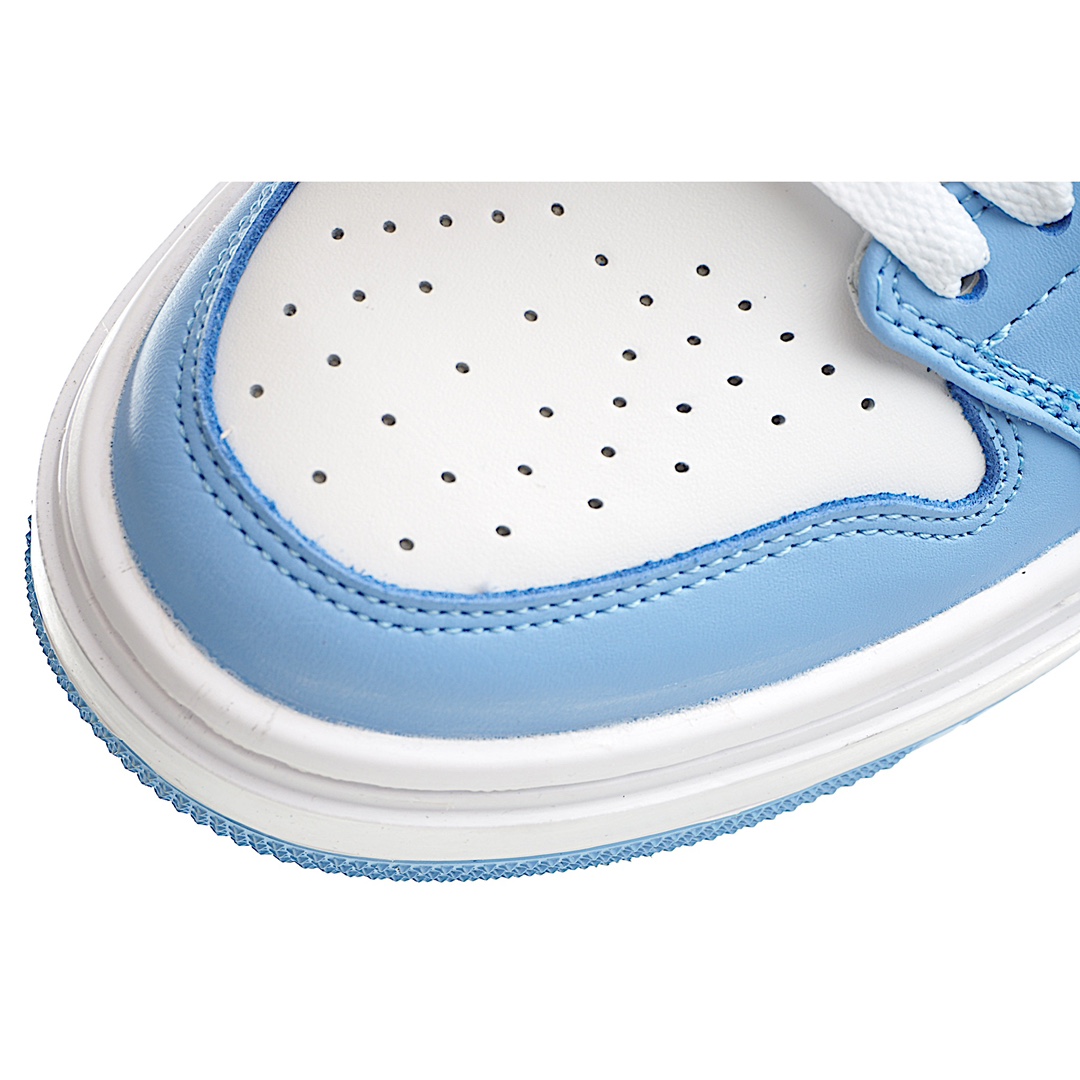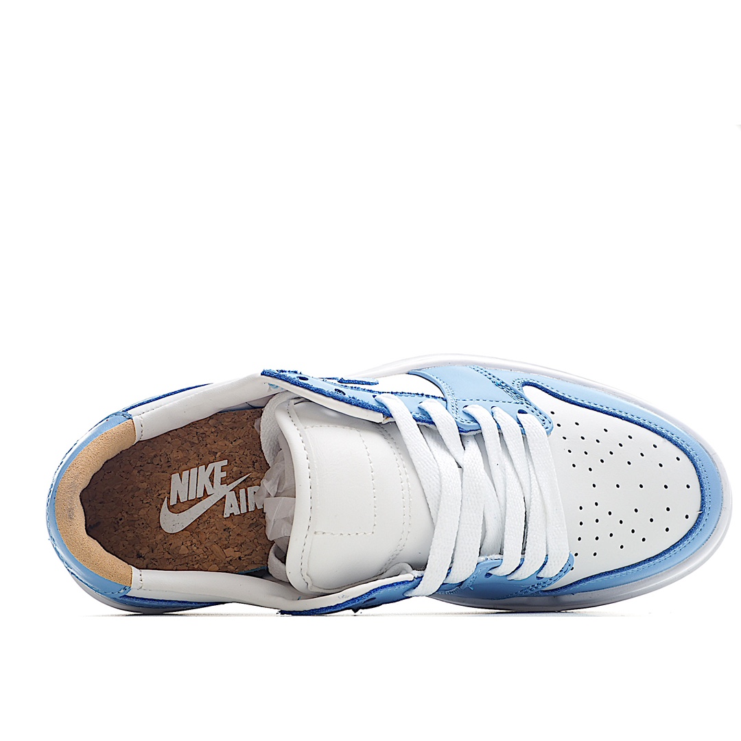 G5 Air Jordan AJ1 LV8D Elevated “Bred”厚底增高 北卡蓝 上半部分以Air Jordan 1 Low鞋款为蓝本设计 采用了皮革打造 鞋底的设计更是夸张 采用了极厚的中底和外底设计 这增高效果sacai见了都要直呼内行 此外鞋舌标签以及后跟处的飞翼Logo均采用了隐藏设计 仅用缝线勾勒轮廓 上面没有任何图案 鞋垫则采用了类似软木的设计 上面印有Jordan的照片