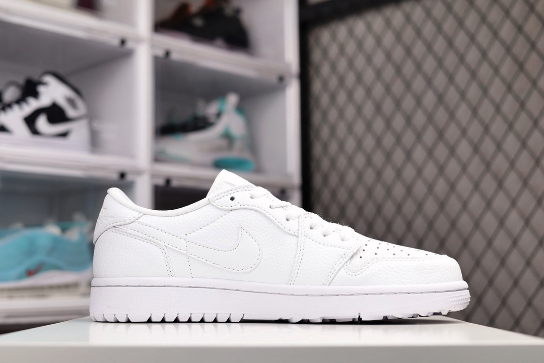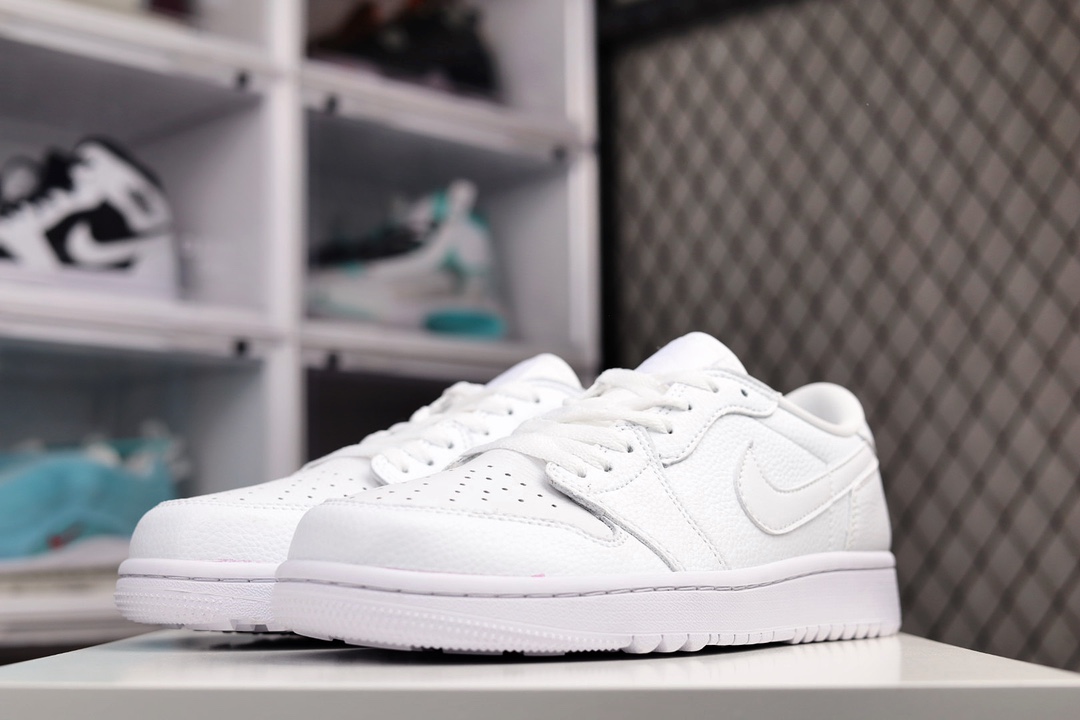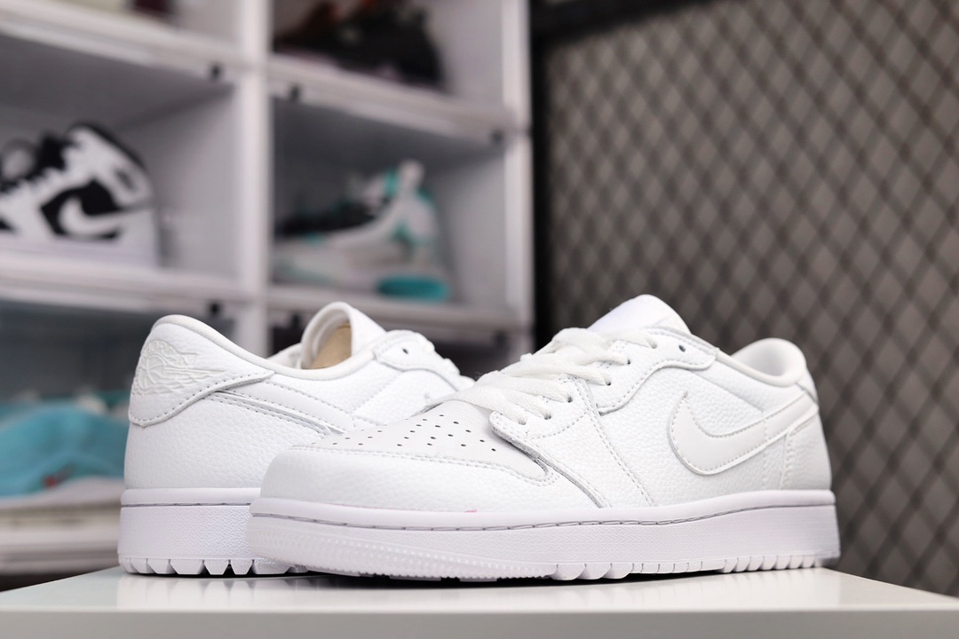 H0 公司级 Air Jordan 1 Low Golf “Triple White” AJ1 乔1全新高尔夫版 全白配色 DD9315-101采用全白色滚花皮革鞋面,鞋舌、鞋垫和鞋跟上带有皮革 Swooshes 和同色系品牌标识。纯白色橡胶鞋底完善了设计×996YJJB