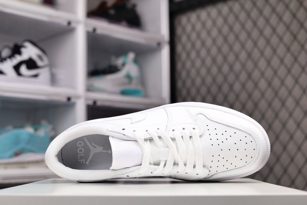 H0 公司级 Air Jordan 1 Low Golf “Triple White” AJ1 乔1全新高尔夫版 全白配色 DD9315-101采用全白色滚花皮革鞋面,鞋舌、鞋垫和鞋跟上带有皮革 Swooshes 和同色系品牌标识。纯白色橡胶鞋底完善了设计×996YJJB尺码:36 36.5 37.5 38 38.5 39 40 40.5 41 42 42.5 43 44 44.5 45 46