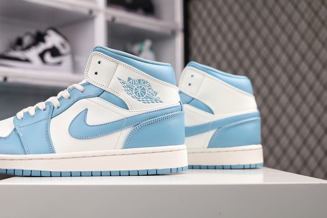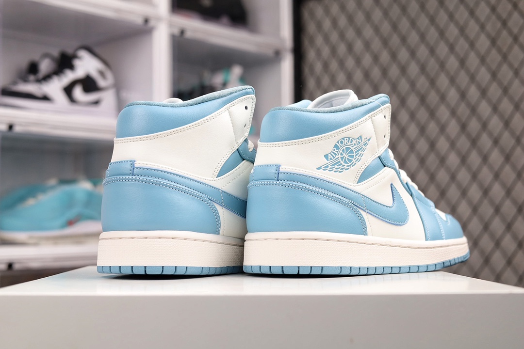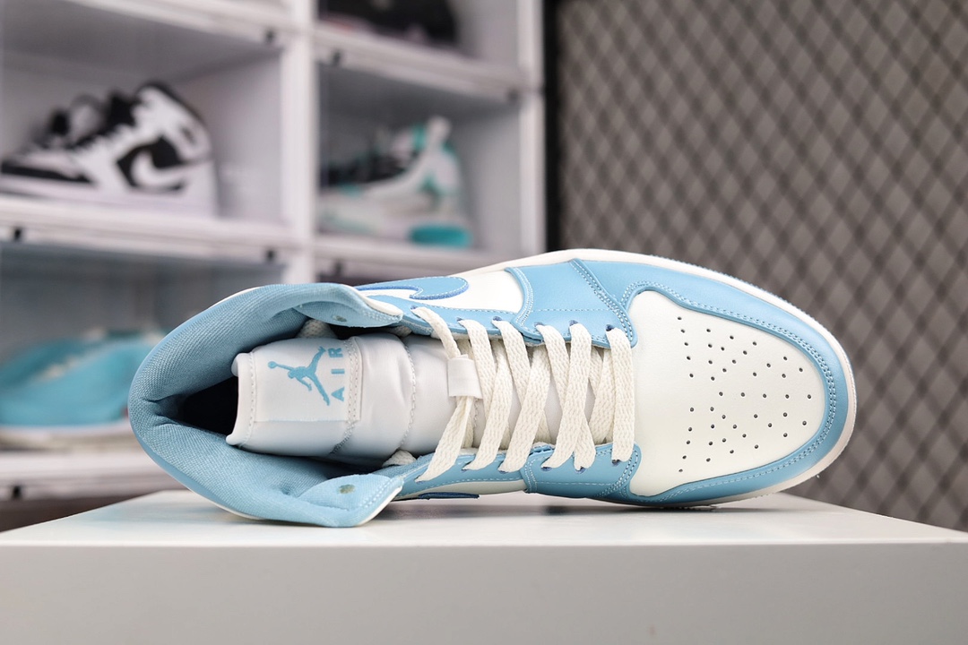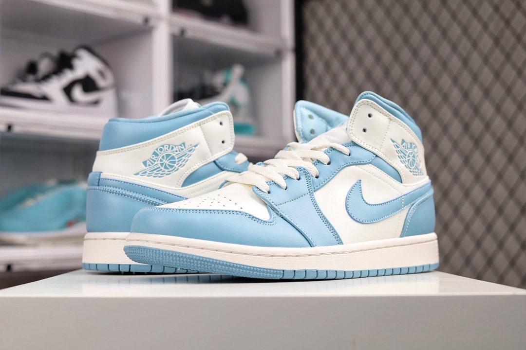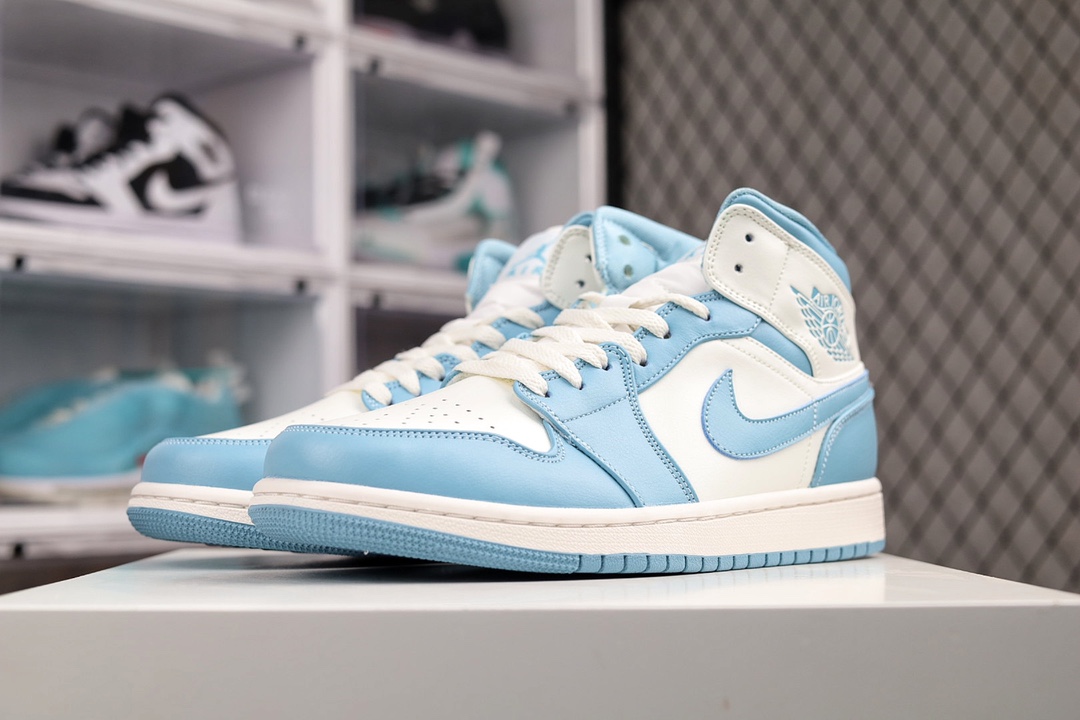 H0 公司级Air Jordan AJ1 Mid 白蓝 原厂内置全掌气垫 A模大底 头层小牛皮 鞋舌AJ原厂专用牛津布+AJ专用反口珍珠布+原厂无杂质高弹内里海棉 特殊封边弹力鞋带 全网唯一头层牛皮 原鞋开模 拒绝公底 购置公司同步原材料 原汁原味 忠于原版‼