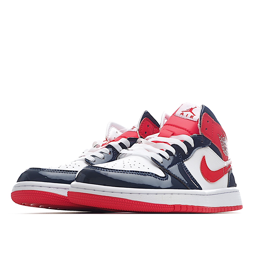 H0 Air Jordan 1 Mid AJ1 乔1漆皮拼色 中帮文化篮球鞋 DJ5984- K0