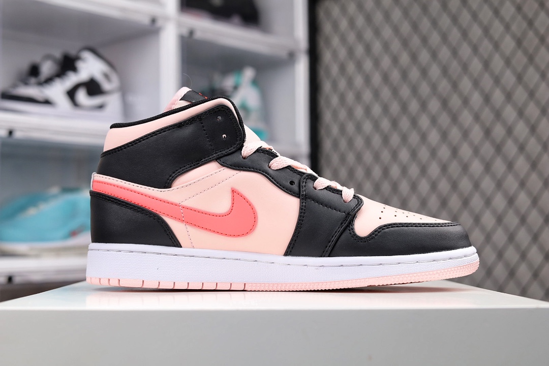 H0 Air Jordan 1 Mid (GS) 中帮 黑粉色 AJ1 乔丹1代 aj1 乔1 中邦 黑玫粉 乔丹篮球鞋系列 为了保持其最近对柔和色相的关注,这双鞋推出了柔和的粉色,称之为大气皮革鞋面、尼龙鞋舌和鞋带。然后,它被乌黑的皮革覆盖物震撼,形成强烈的对比,并在衣领、鞋舌和Swoosh套装上被亮红色的品牌流行所加热。鞋垫完全浸入浓郁的红色的色调,而它的外部,外底被染成粉色,以完成设计