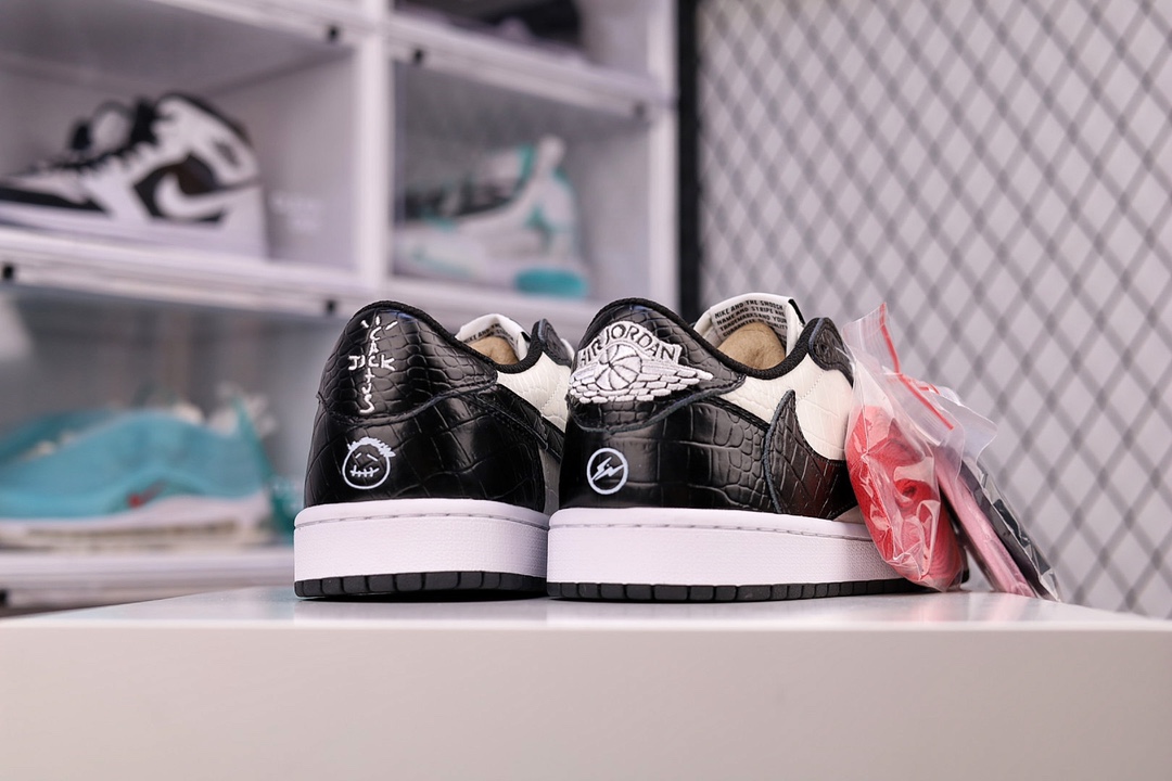 H0 Fragment x TS x Air Jordan 1 Low三方联名倒钩低帮 实拍首发全新的三方联名低帮倒钩鞋面延续了黑脚趾设计,整双鞋以全荔枝皮打造,腰身搭配白色「倒勾」,再点缀上Travis Scott 标志性的Logo,后跟处以藤原浩最拿手的蓝色为主色调,完善极具Fragment Design的白蓝黑设计风格,左右脚分别以Travis Scott鬼脸和乔丹飞翼加以修饰,彰显出三方联名的奢华格调。货号:DM7866-188Size:36 36.5 37.5 38 38.5 39 40 40.5 41 42 42.5 43 44 44.5 45 46