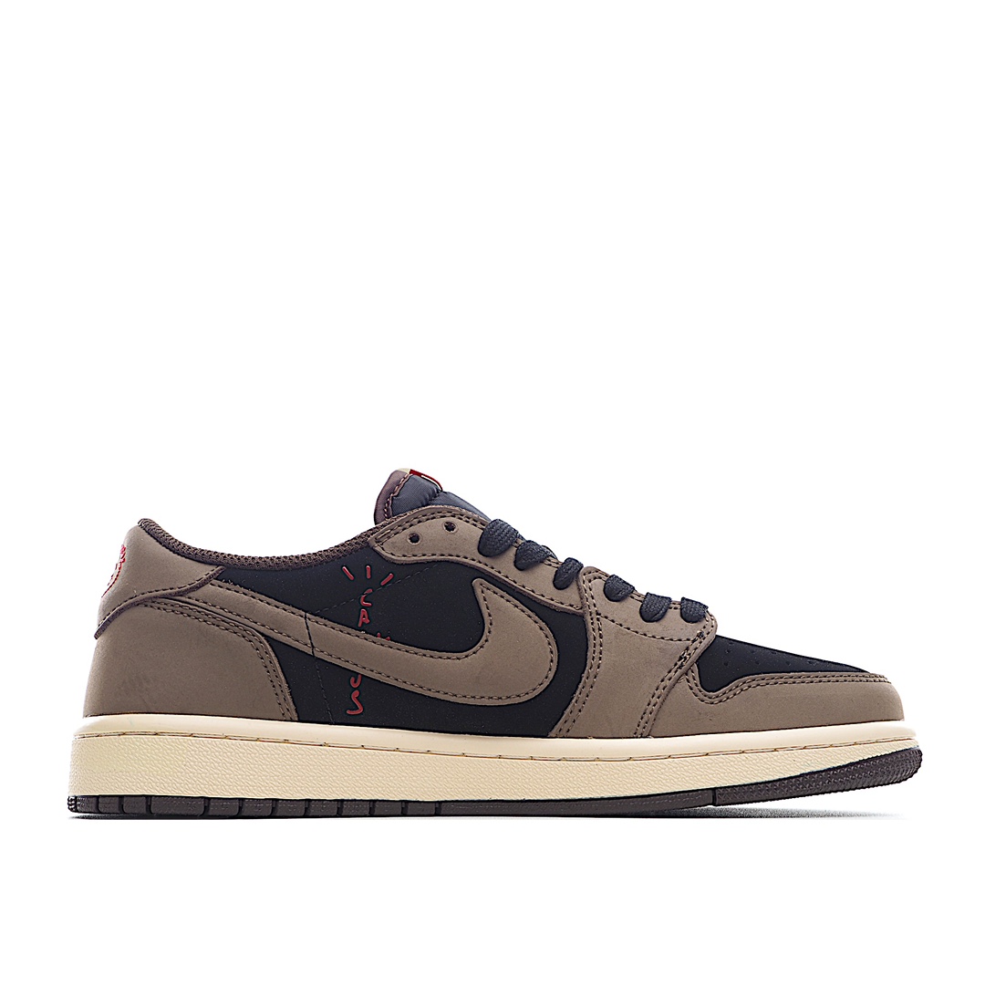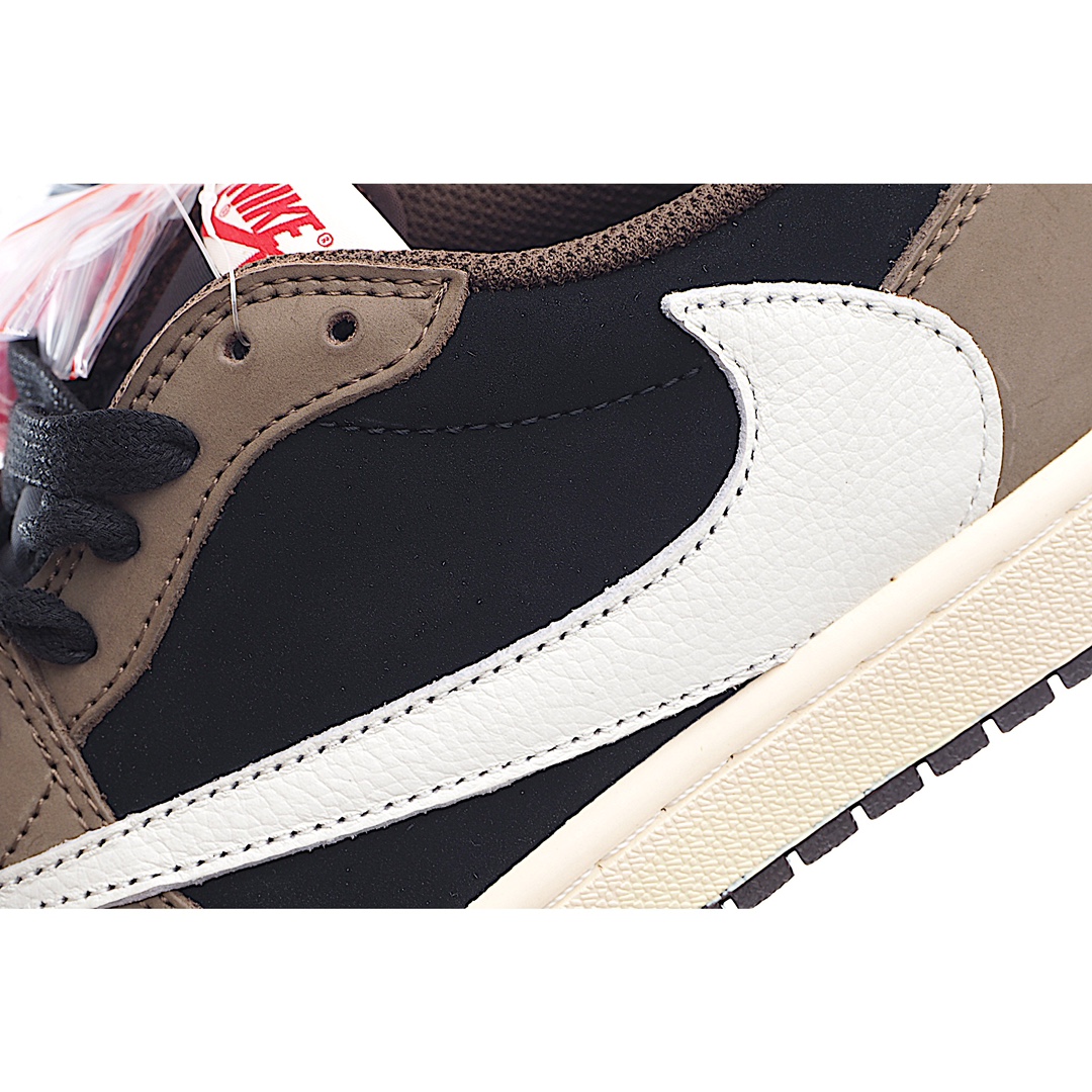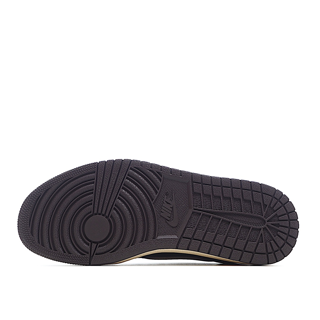 H0 Travis Scott x Air Jordan AJ1 Low TS联名倒勾低帮板鞋 CQ4277-001 亮点之处在于鞋侧的倒置 Swoosh 鞋面以棕色牛巴革及白色荔枝皮的混搭设计 反转Swoosh Logo荔枝头层皮打造 错版灵感来源于洛杉矶球鞋店铺收到一双特别的错版 Air Jordan 1“Gold Toe” 的勾子倒过来 之后抄近 H0 00美元 研发出反向勾的设计