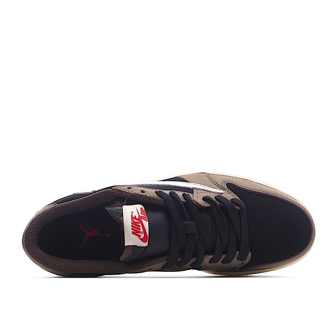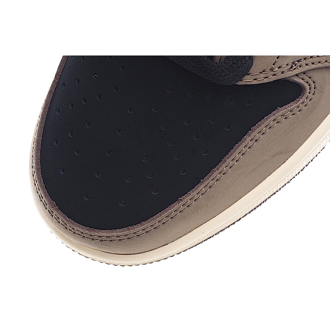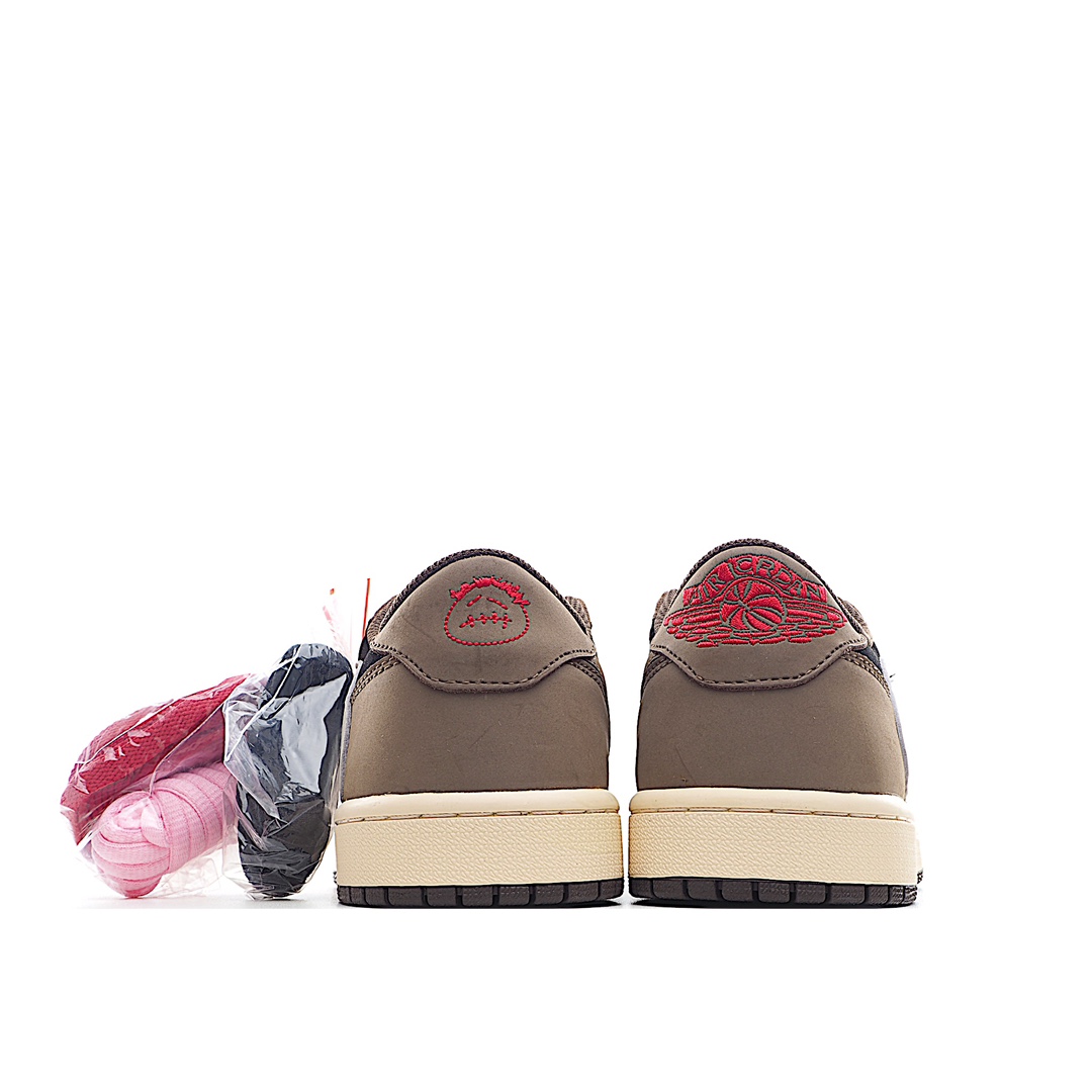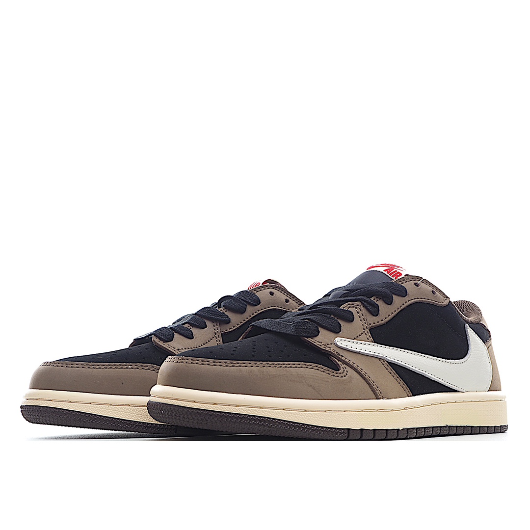 H0 Travis Scott x Air Jordan AJ1 Low TS联名倒勾低帮板鞋 CQ4277-001 亮点之处在于鞋侧的倒置 Swoosh 鞋面以棕色牛巴革及白色荔枝皮的混搭设计 反转Swoosh Logo荔枝头层皮打造 错版灵感来源于洛杉矶球鞋店铺收到一双特别的错版 Air Jordan 1“Gold Toe” 的勾子倒过来 之后抄近 H0 00美元 研发出反向勾的设计