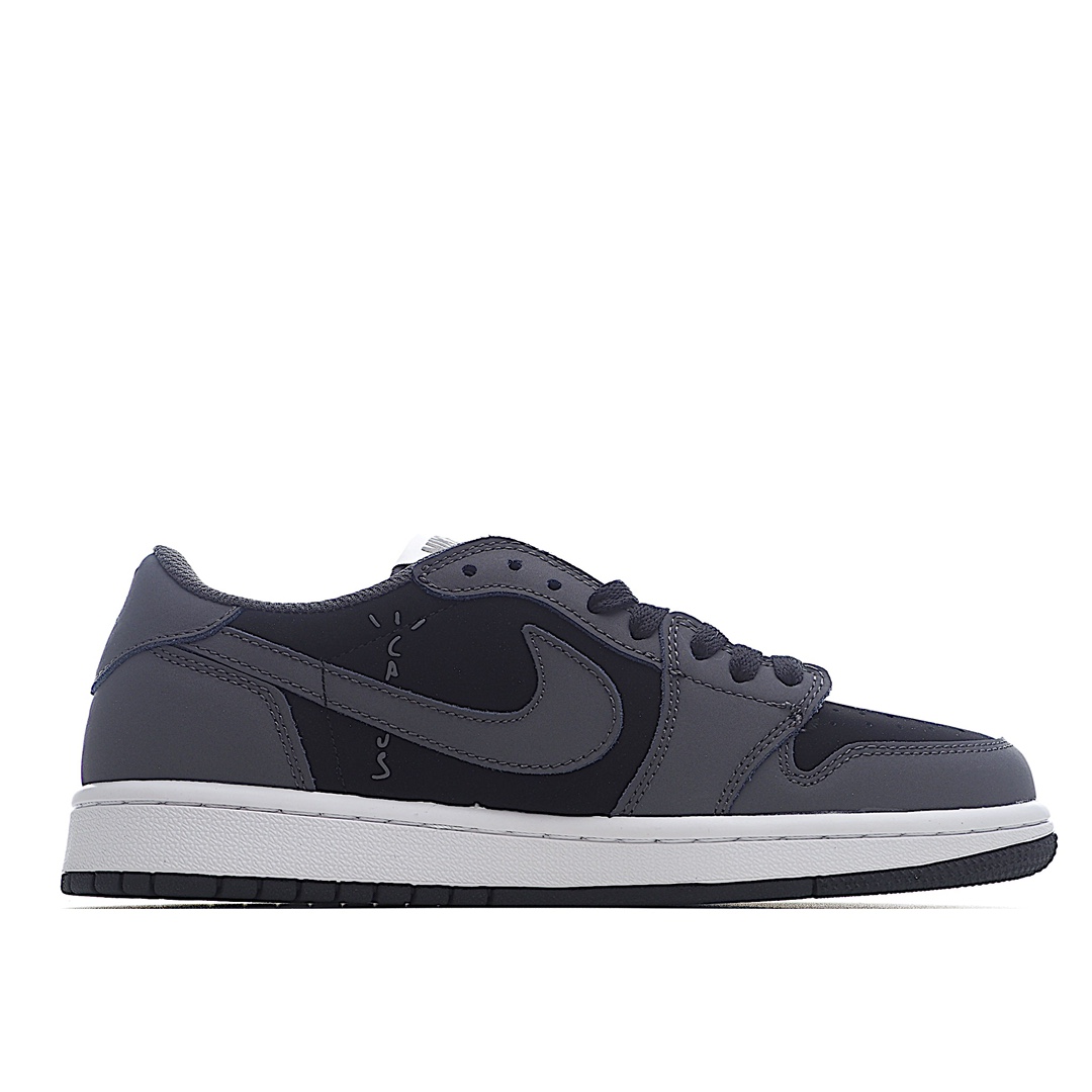 H0 Travis Scott x Air Jordan AJ1 Low TS联名倒勾低帮板鞋 CQ4277-002 亮点之处在于鞋侧的倒置 Swoosh 鞋面以灰色牛巴革及白色荔枝皮的混搭设计 反转Swoosh Logo荔枝头层皮打造 错版灵感来源于洛杉矶球鞋店铺收到一双特别的错版 Air Jordan 1“Gold Toe” 的勾子倒过来 之后抄近 H0 00美元 研发出反向勾的设计
