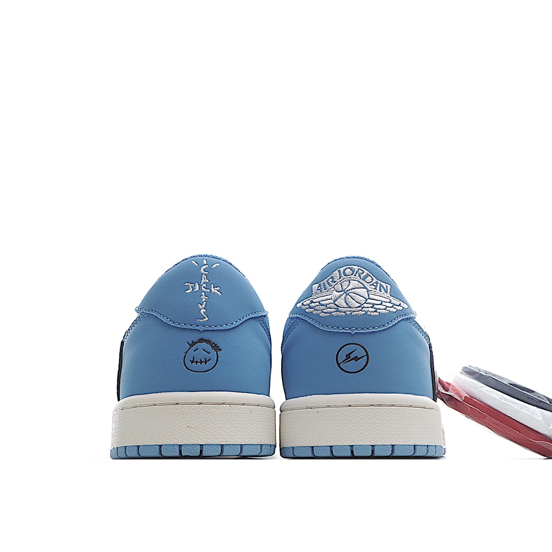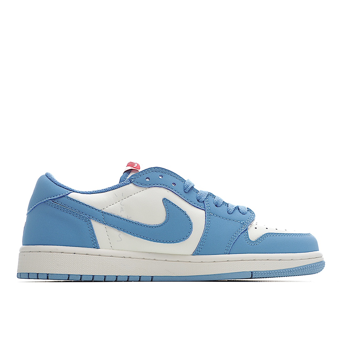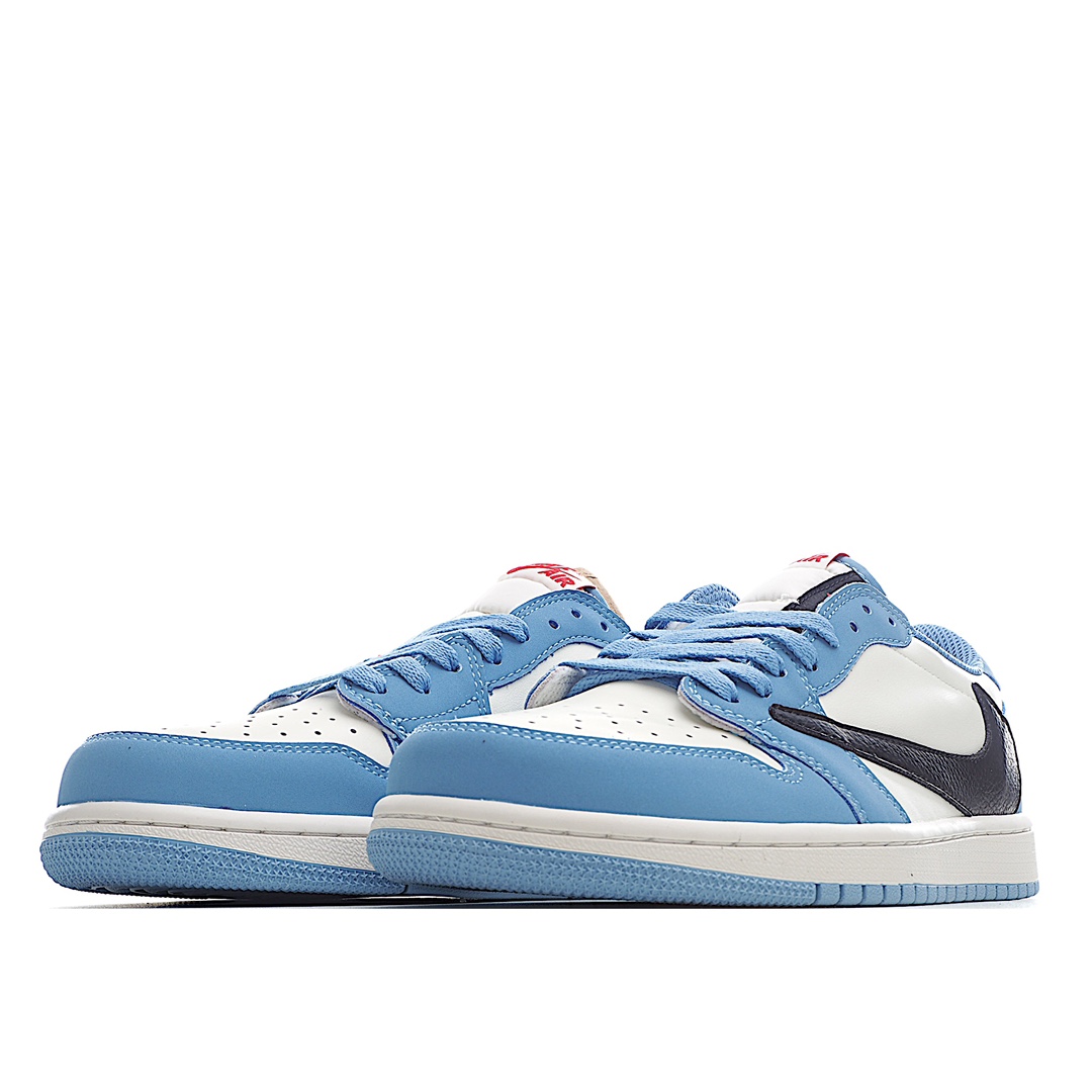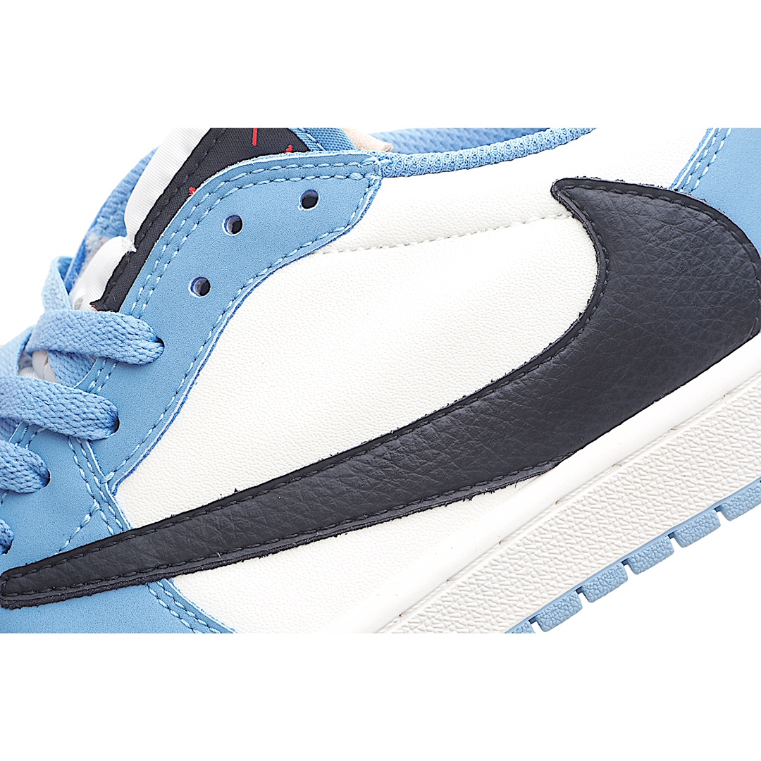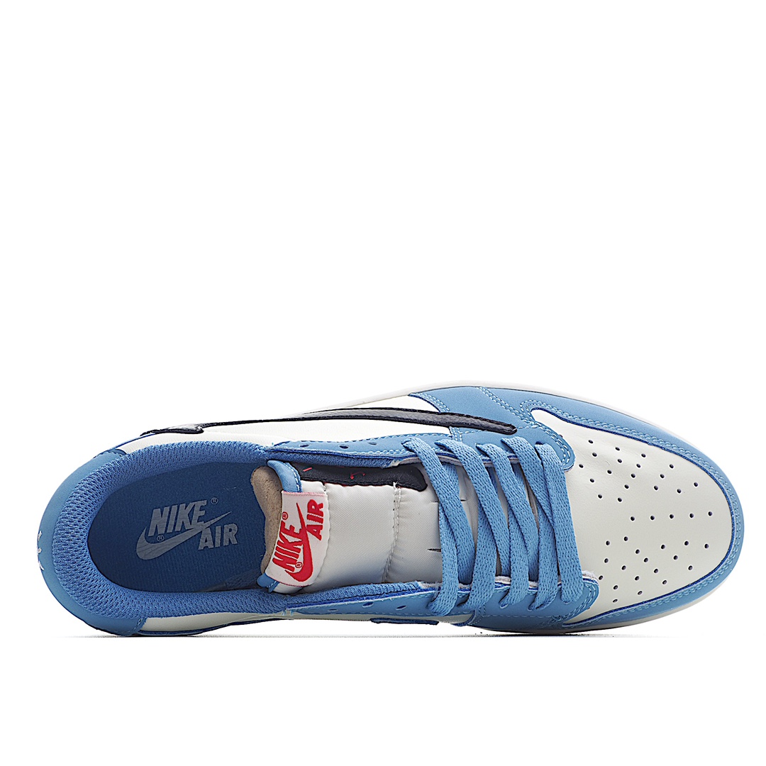 H0 Travis Scott x Air Jordan AJ1 Low TS联名倒勾低帮板鞋 DH3277-109亮点之处在于鞋侧的倒置 Swoosh 鞋面以白蓝牛巴革及黑色荔枝皮的混搭设计 反转Swoosh Logo荔枝头层皮打造 错版灵感来源于洛杉矶球鞋店铺收到一双特别的错版 Air Jordan 1“Gold Toe” 的勾子倒过来 之后抄近 H0 00美元 研发出反向勾的设计