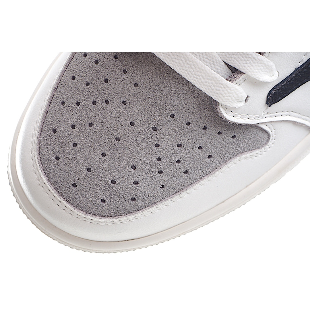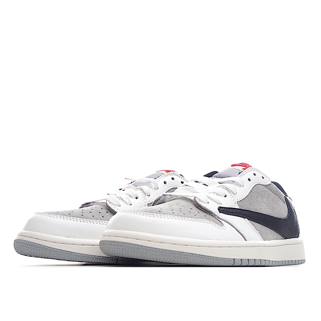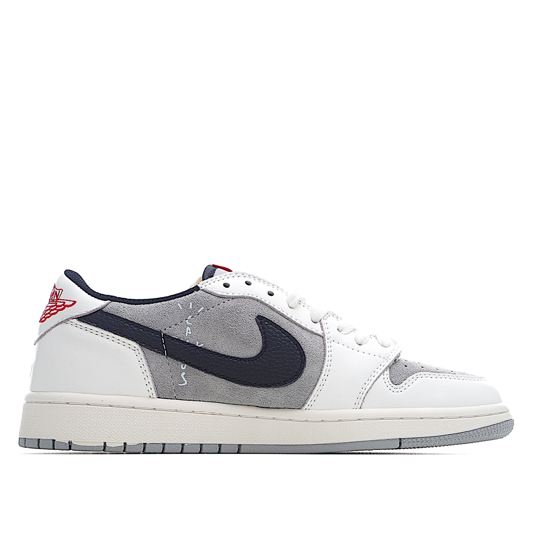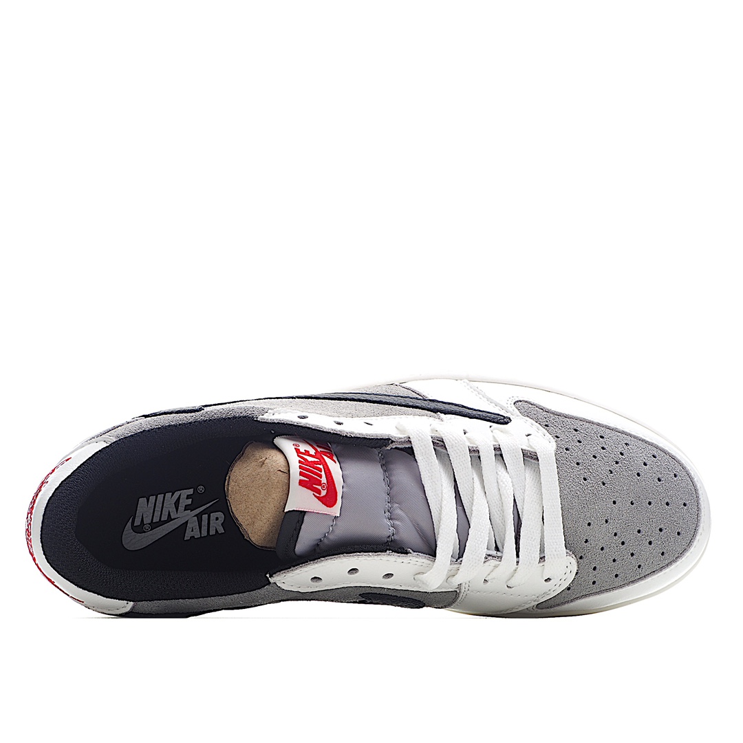 H0 Travis Scott x Air Jordan AJ1 Low TS联名倒勾低帮板鞋 DM7866-162亮点之处在于鞋侧的倒置 Swoosh 鞋面以白灰牛巴革及黑色荔枝皮的混搭设计 反转Swoosh Logo荔枝头层皮打造 错版灵感来源于洛杉矶球鞋店铺收到一双特别的错版 Air Jordan 1“Gold Toe” 的勾子倒过来 之后抄近 H0 00美元 研发出反向勾的设计