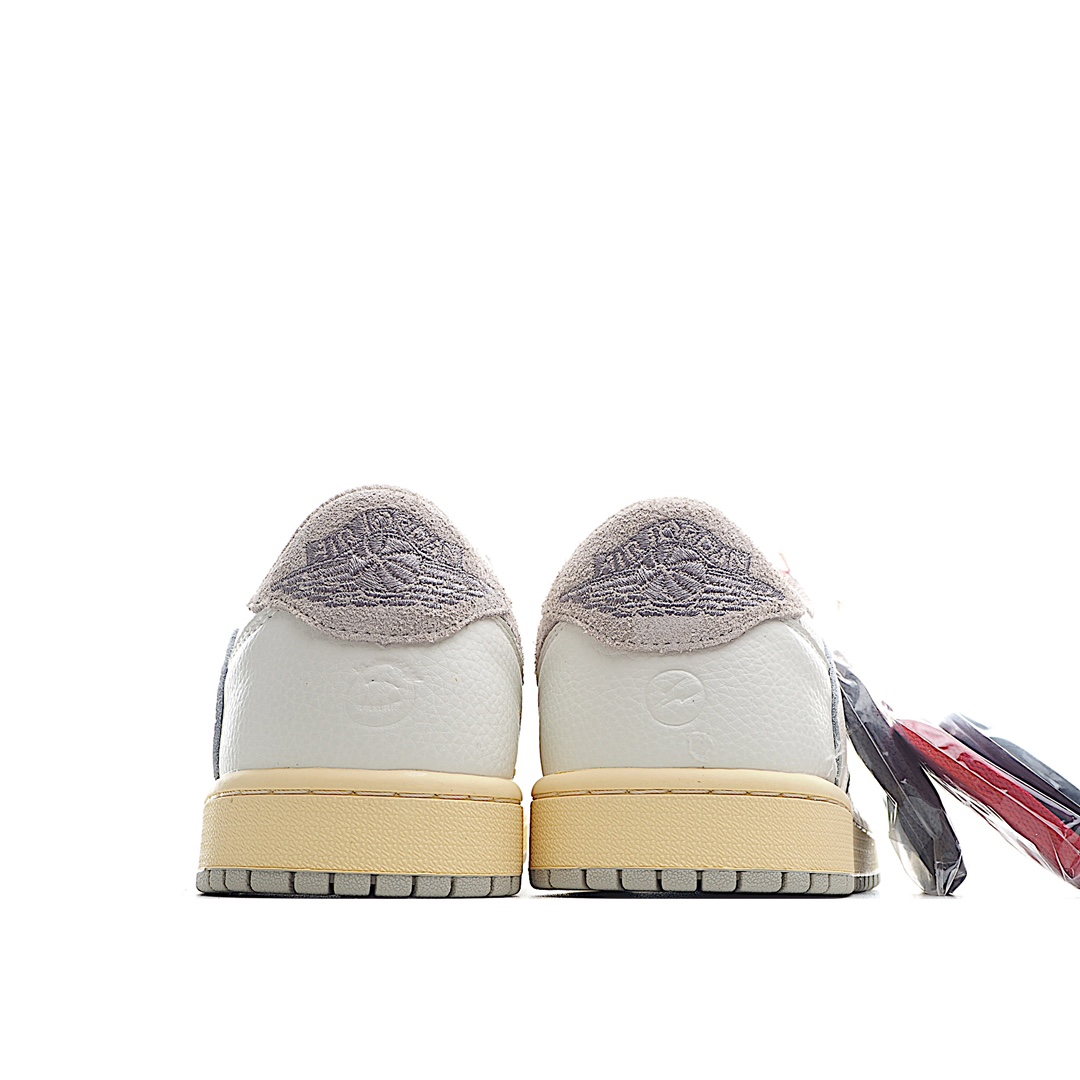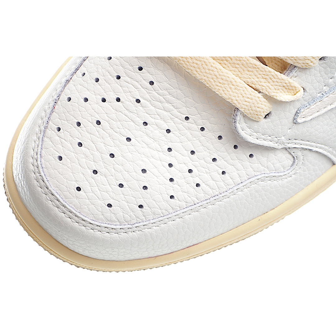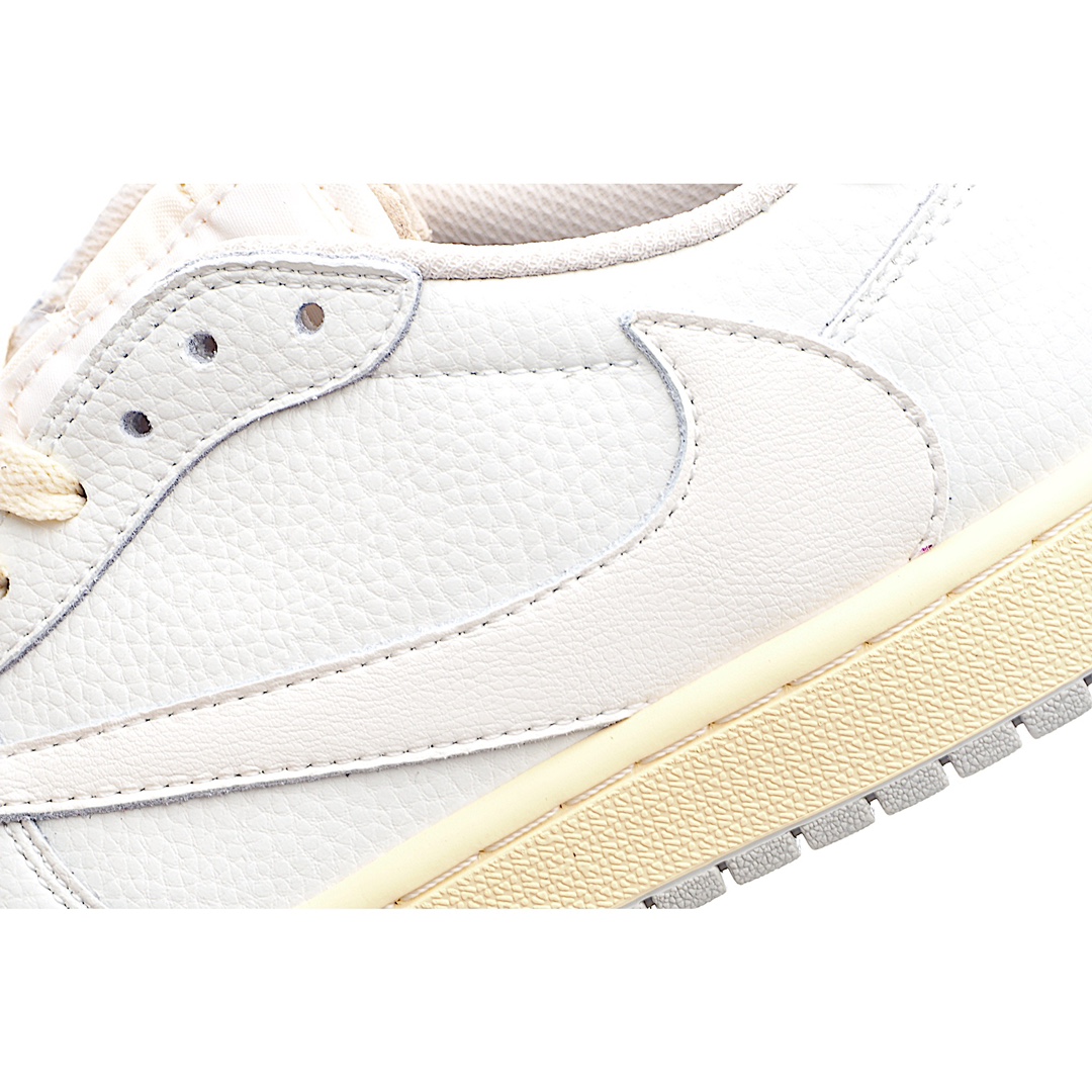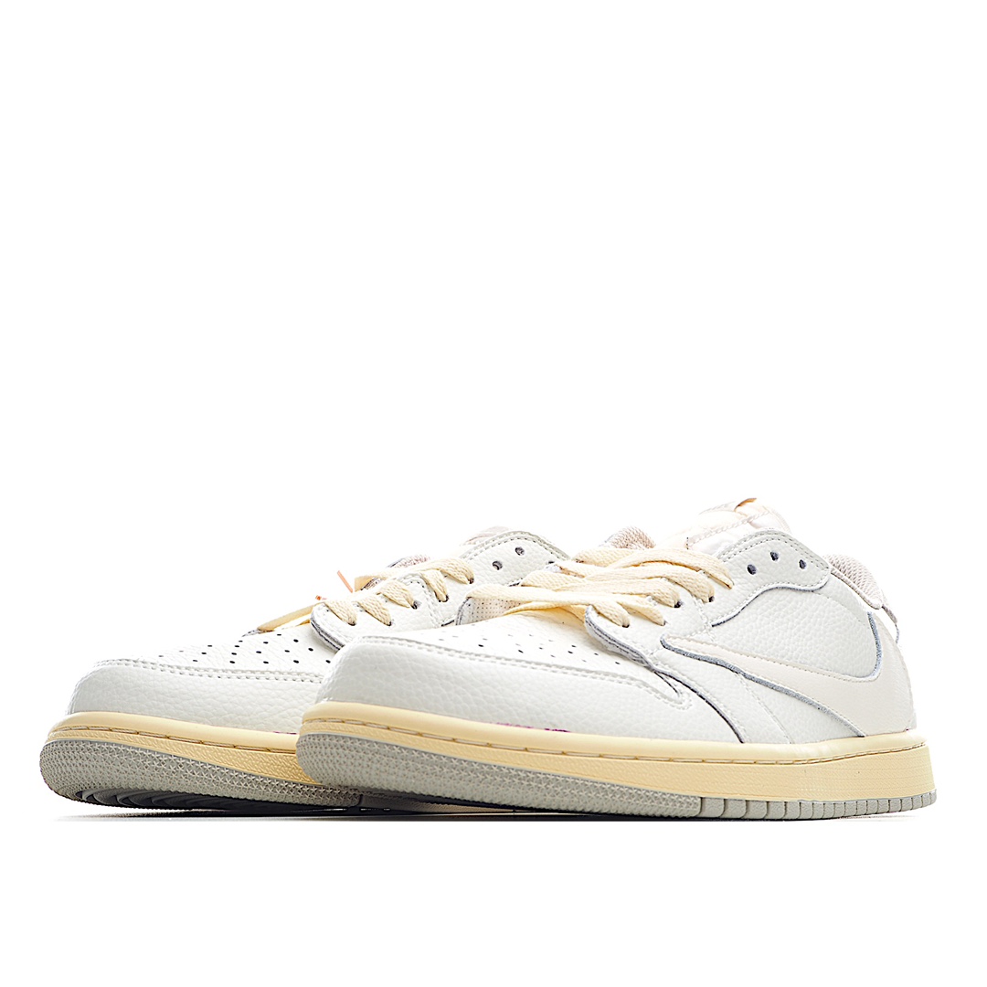 H0 Travis Scott x Air Jordan AJ1 Low TS联名倒勾低帮板鞋 DM7866-169亮点之处在于鞋侧的倒置 Swoosh 鞋面以白色牛巴革及荔枝皮的混搭设计 反转Swoosh Logo荔枝头层皮打造 错版灵感来源于洛杉矶球鞋店铺收到一双特别的错版 Air Jordan 1“Gold Toe” 的勾子倒过来 之后抄近 H0 00美元 研发出反向勾的设计