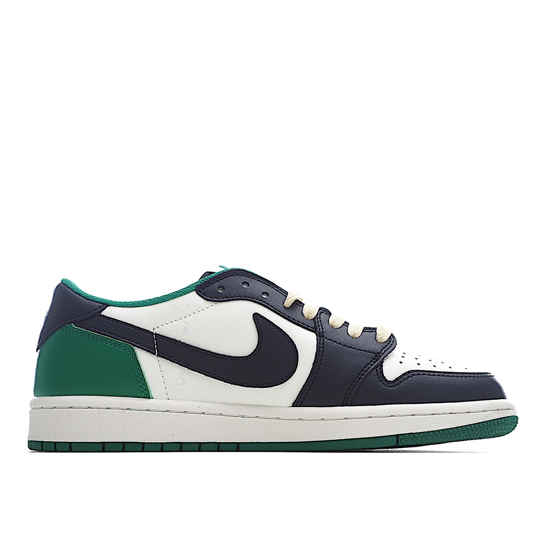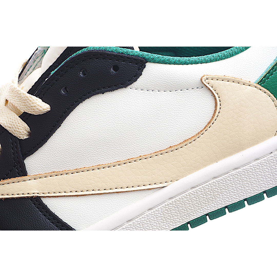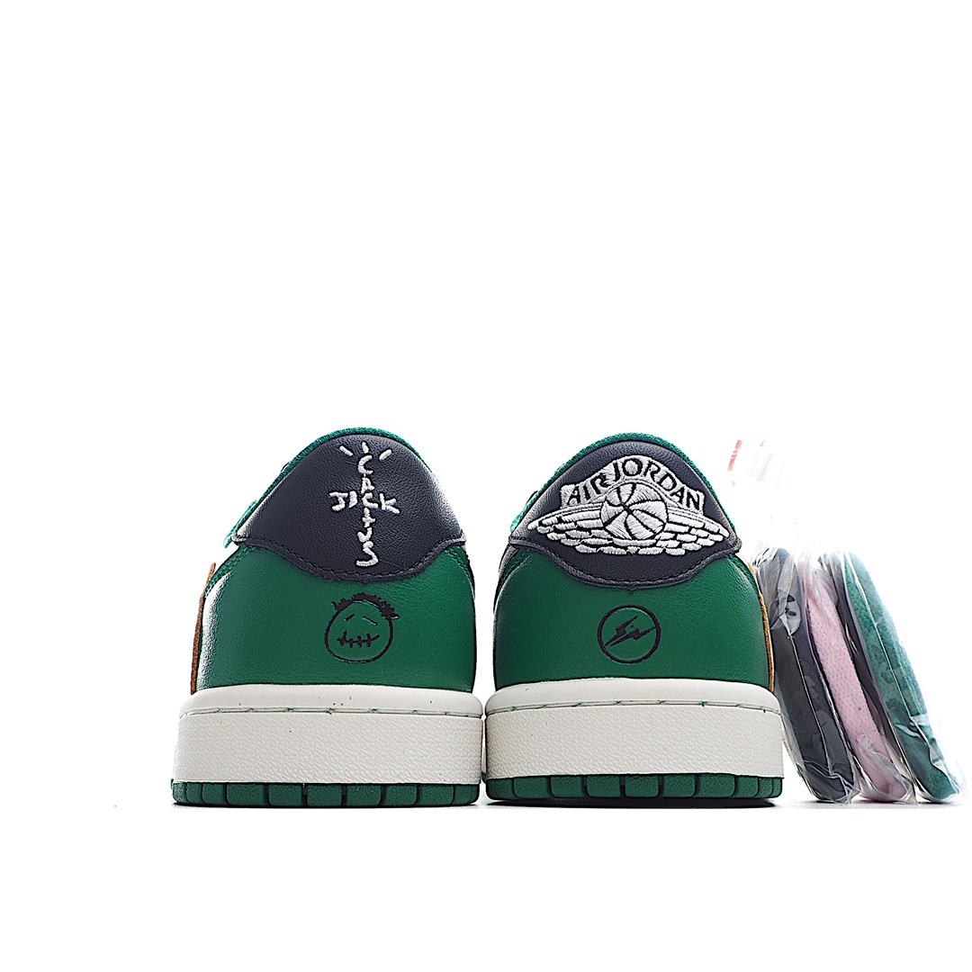 H0 Travis Scott x Fragment x Air Jordan 1 Low TS联名倒勾低帮板鞋 DM7866-128错版灵感来源于洛杉矶球鞋店铺收到一双特别的错版 Air Jordan 1“Gold Toe” 的勾子倒过来 之后抄近 H0 00美元 研发出反向勾的设计