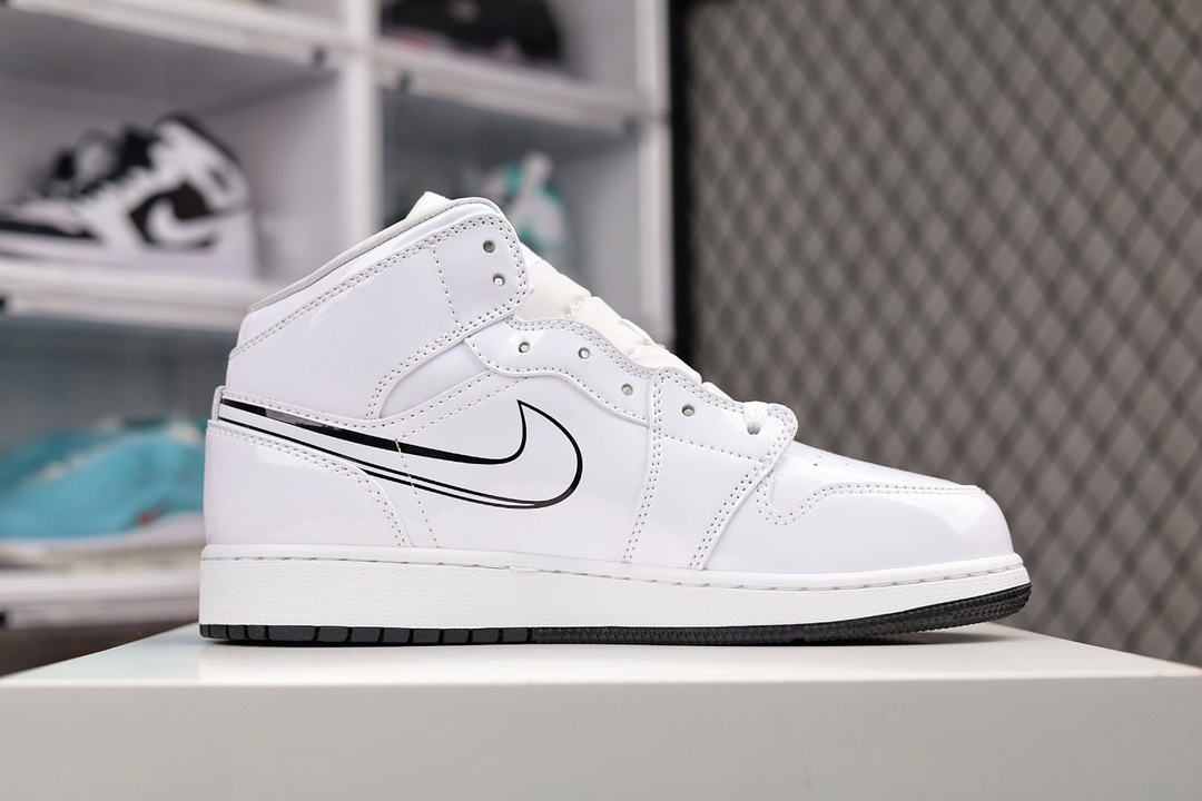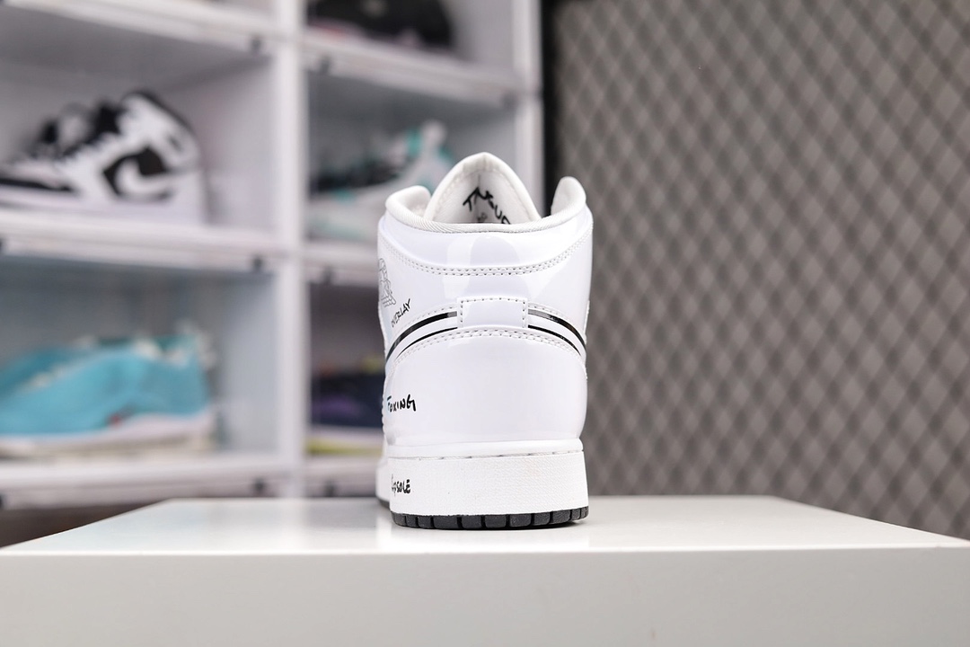 H5 纯原版本 耐克Nike Air Jordan 1 Mid GS”Schematic”AJ1乔丹一代中帮经典复古文化休闲运动篮球鞋“皮革白黑二次元涂鸦”升级原楦原档案数据开发原厂立体填充鞋舌海绵中底注胶孔内置真Sole气垫原数据开发模具大底×877BX