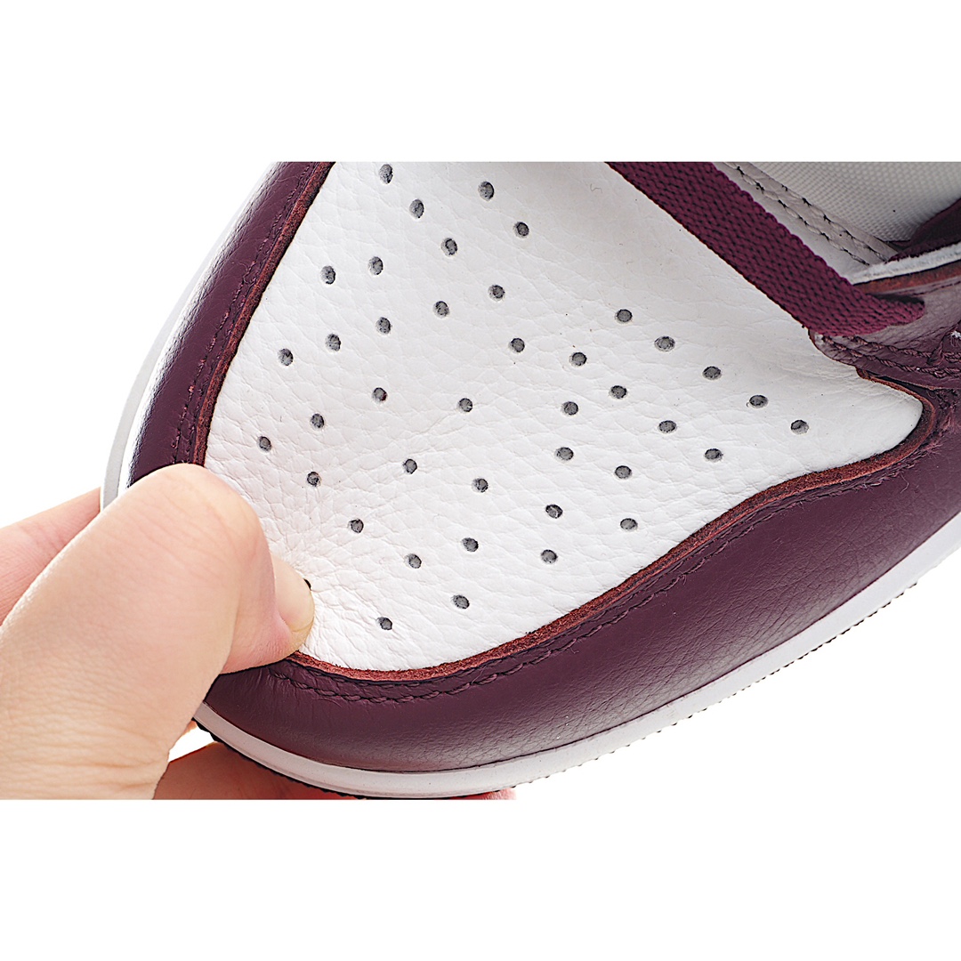 H5 Air Jordan 1 High OG “Bordeaux” 波尔多 货号:555088-611整个鞋身以酒红色和白色勾勒出轮廓,荔枝皮的细腻质感辅以银色Swoosh提亮点缀,传统的浮雕飞翼标志以透明的独立部件装饰,进一步营造出波尔多特有的风格。尺码:40 40.5 41 42 42.5 43 44 44.5 45 46 编码:348877mswr/258936kswi