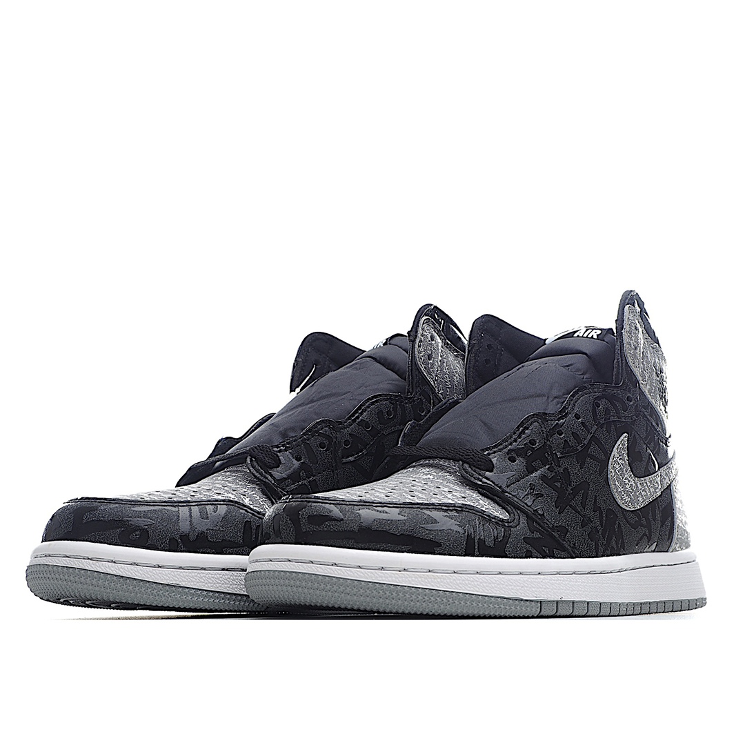I0 Air Jordan 1 High OG AJ1高帮系列 黑灰 叛逆 整体采用黑灰主色,外观酷似经典的黑灰「Shadow」配色,后跟醒目的X油漆涂鸦,强调禁穿主题。最亮眼之处在于黑灰色调下鞋身满印IThey can’t stop you from wearing them