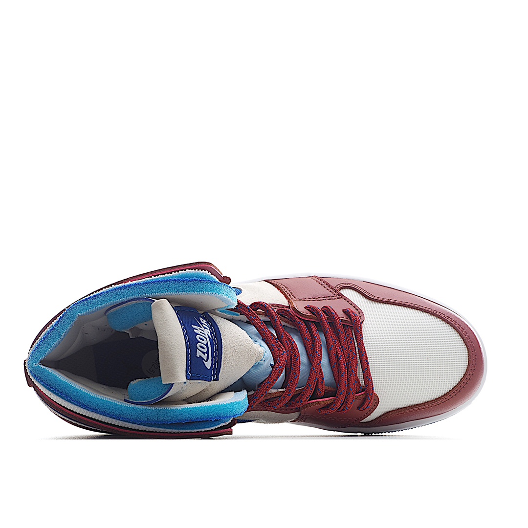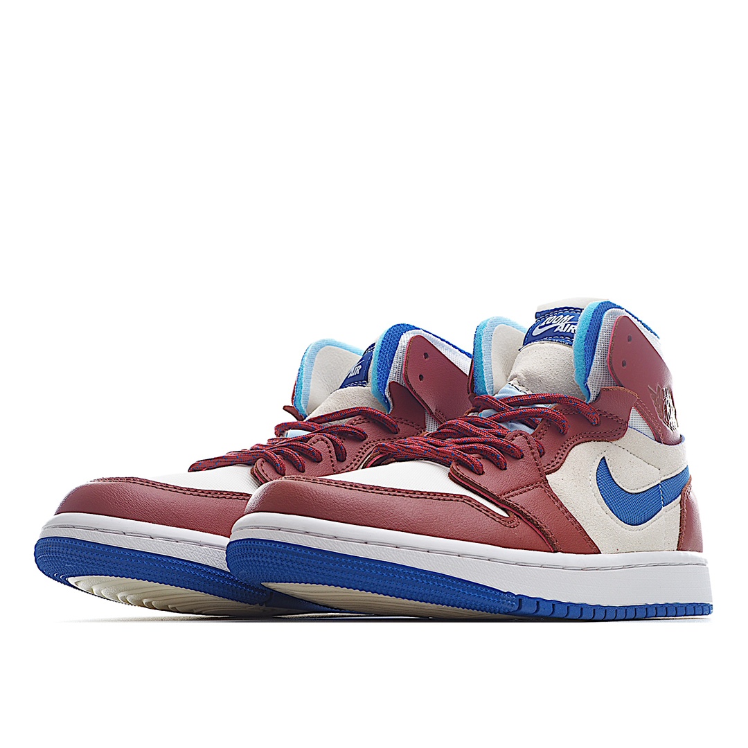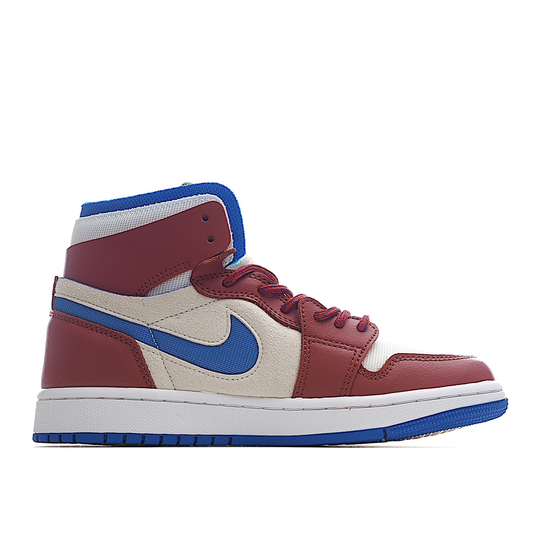 I0 Air Jordan 1 Zoom Air CMFT AJ1 乔1 酒红色 CT0979-104整双鞋子以米白色为主色,点缀具有复古气息的酒红色皮革材质鞋身,将绒毛材质和细腻皮革材质相结合,并在侧面配以镂空蓝色Swoosh标签,最后搭配上马蹄形Zoom气垫以及泡棉中底和外底完成整体设计,吸睛效果十足的同时又不失质感,简约又高级。