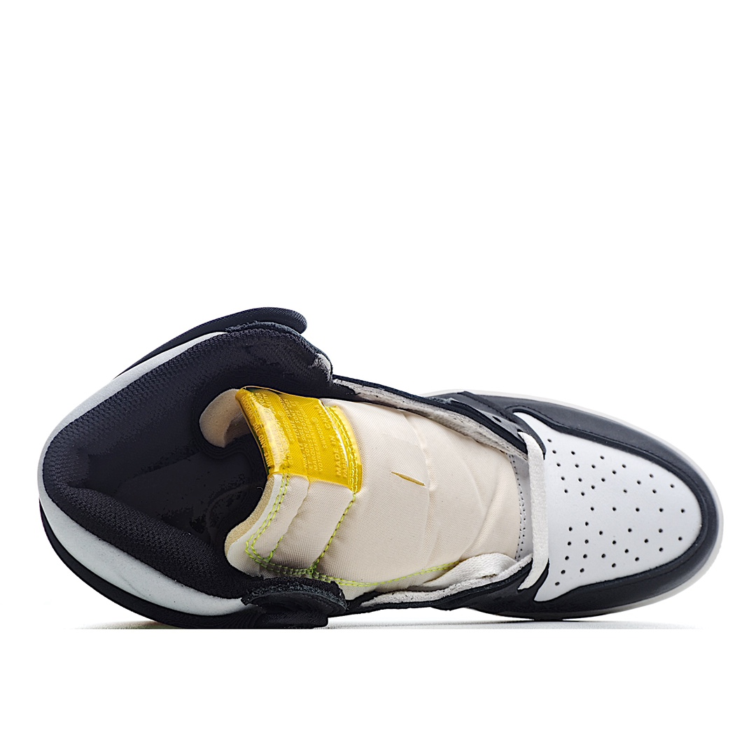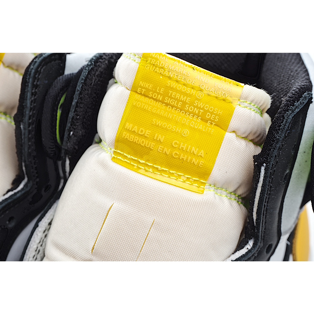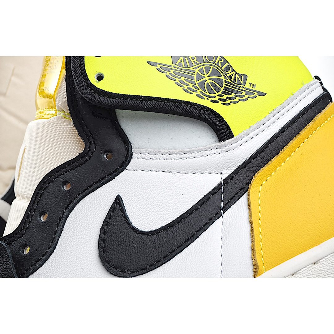 I5 Air Jordan 1 Retro High OG “VoltGold” 黑黄 全新配色的 Air Jordan 1。整双鞋采用白、黑、荧光绿和橘黄色拼接呈现,鞋头采用经典的黑脚趾配色设计,鞋帮处和后跟以荧光,土黄色点缀,十分跳脱的视觉效果!带来丰富视觉效果,十分亮眼。颜值爆表!