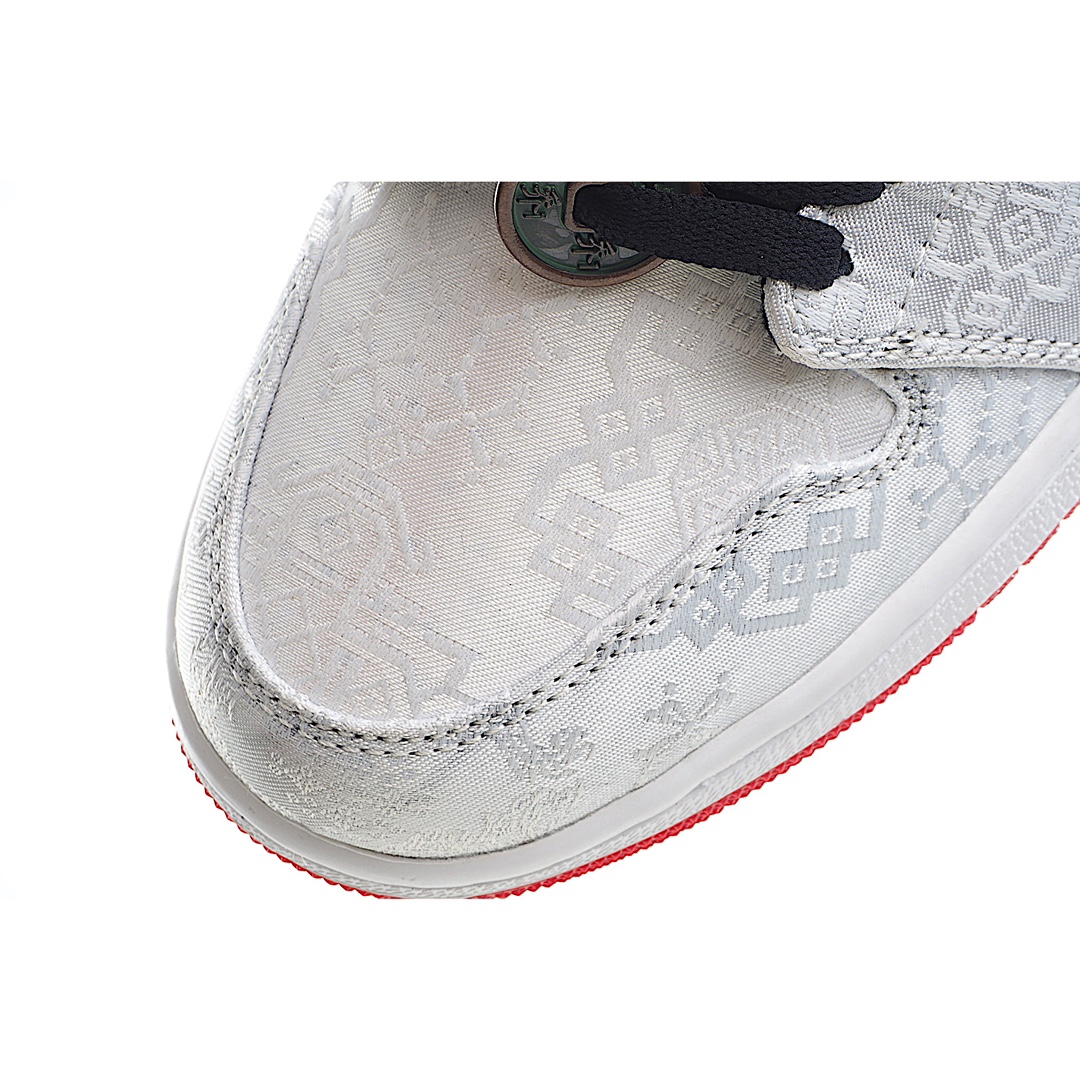 I5 Clot x Air Jordan AJ1 Mid “Fearless” 中帮 白丝绸 CU I5 4- F5 公司同源原装韩国进口丝绸面料 鞋面丝绸任何图案均可精准对位 铜钱原版开模 做旧➕抛光 效果已达到目前最接近原版 原楦头原档纸板 版型完美匹配ZP 采购原厂后跟港宝 成型坚挺后跟 鞋垫刷胶 独家采用原厂热熔水性胶 原厂金色立体凹陷字体吊牌 质感满分 官方原盒、配件 正确包装纸字体