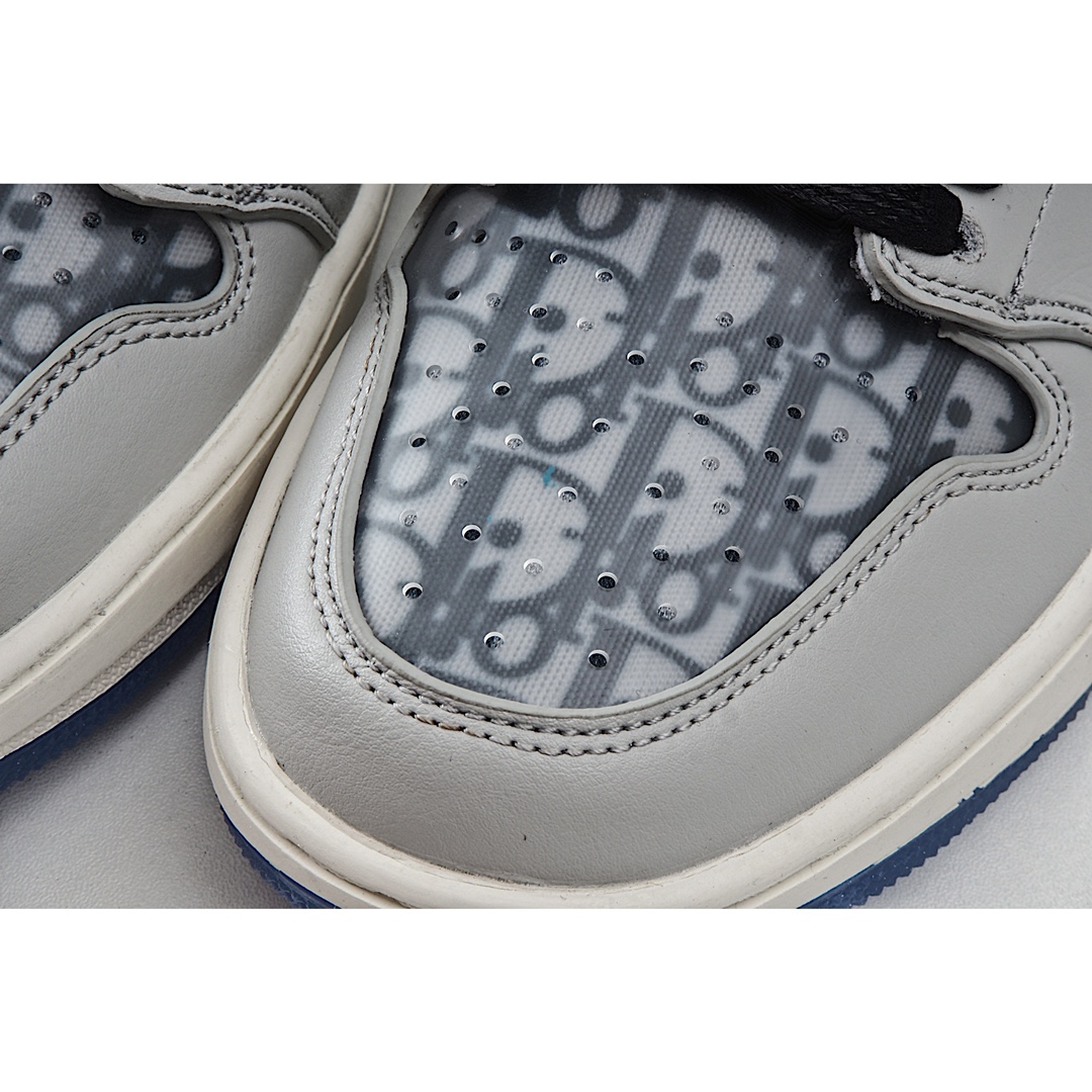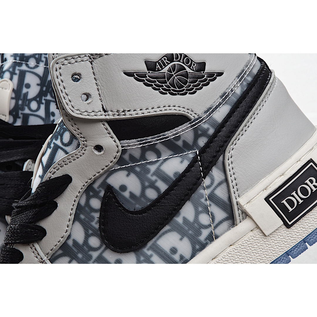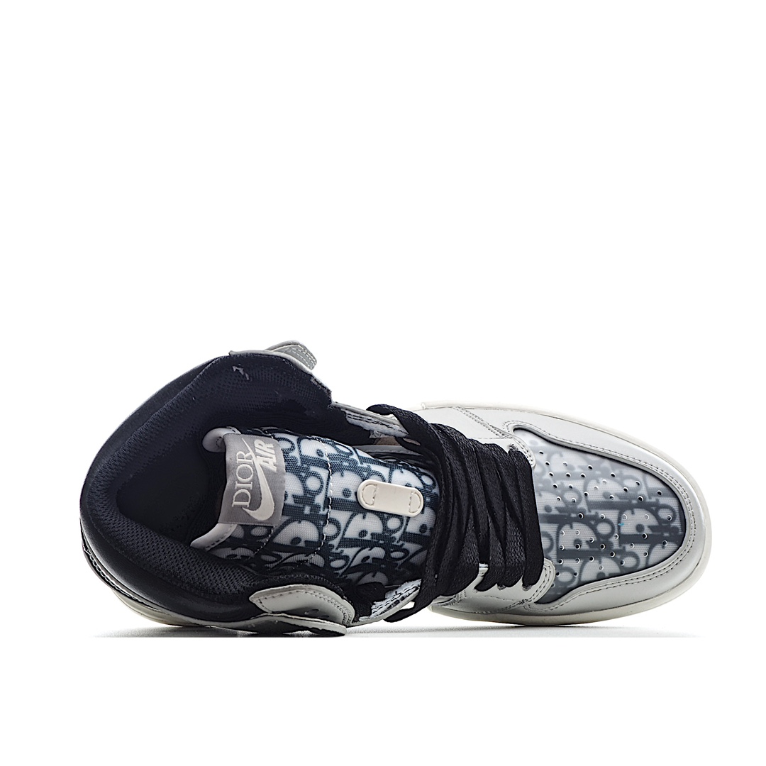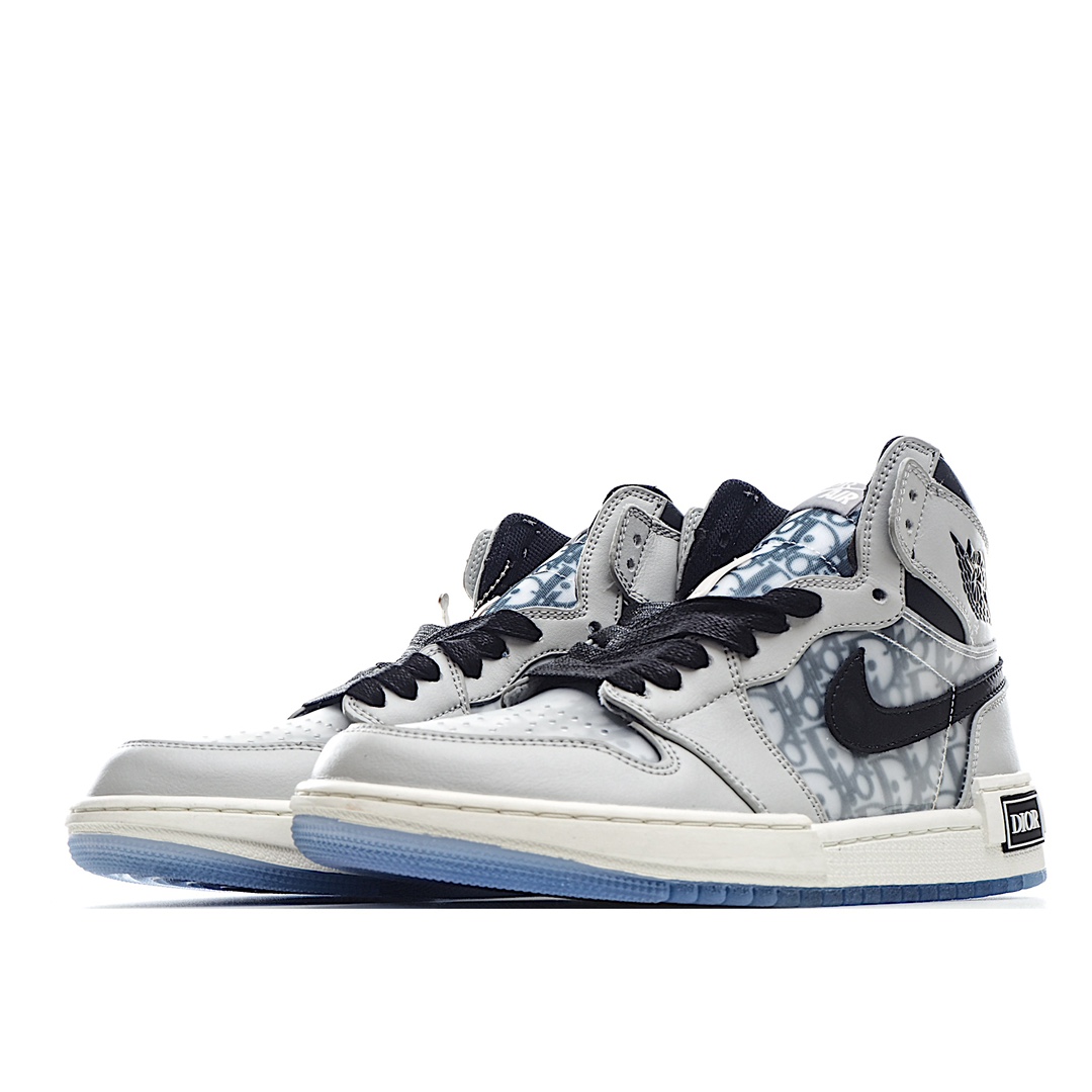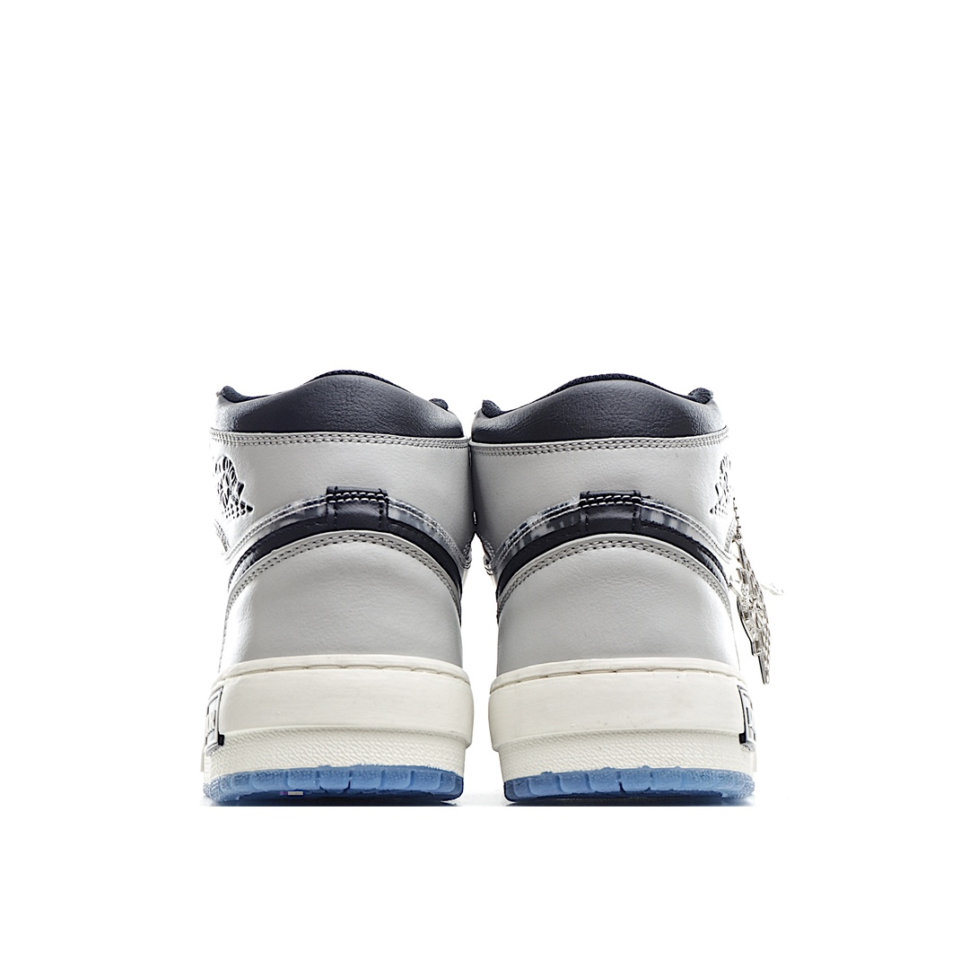 J5 高奢品牌-迪奥Dior x Air Jordan Brand 1 2.0 High “Grey”AJ1 2.0乔丹一代经典高帮文化百搭休闲运动篮球鞋“浅灰黑CD重影”CN8 F5 7-002AJ1 周年限量联名鞋款选择了Air Jordan 1 High为基底打造,选择白色与深灰色拼接呈现鞋身。鞋侧的Nike Swoosh则以黑色刺绣镶边,并满幅点缀有Dior字母印花。鞋舌整体也压印有Dior字母印花,凸显细节。而最为显眼的设计则出现在外底,醒目的蓝色水晶大底内可以透视出黑色的DIOR与飞翼LOGO,联名的身份得以凸显‼