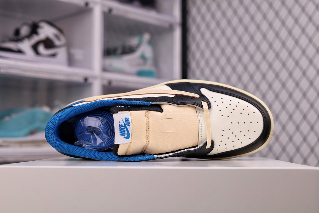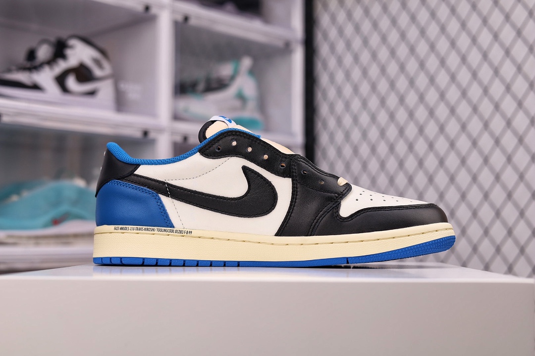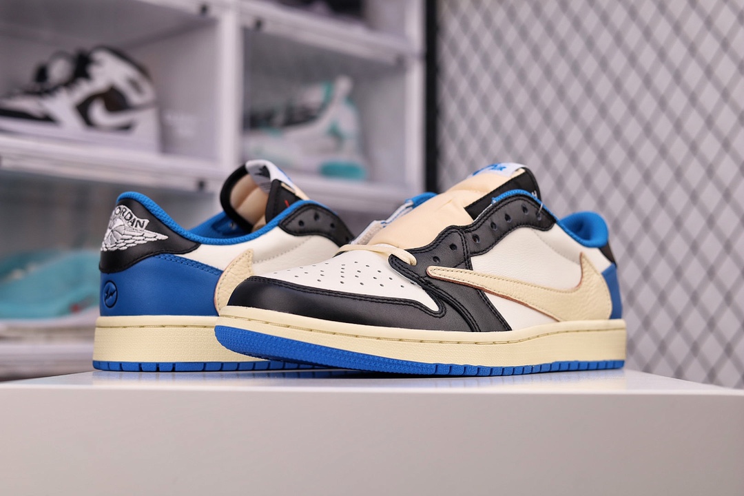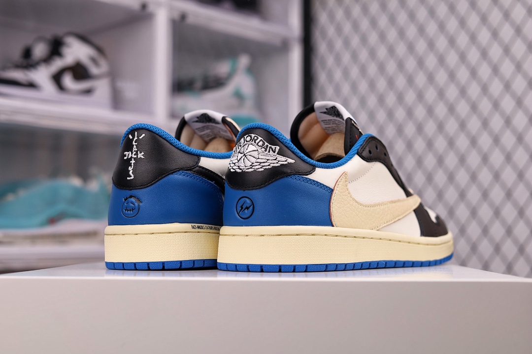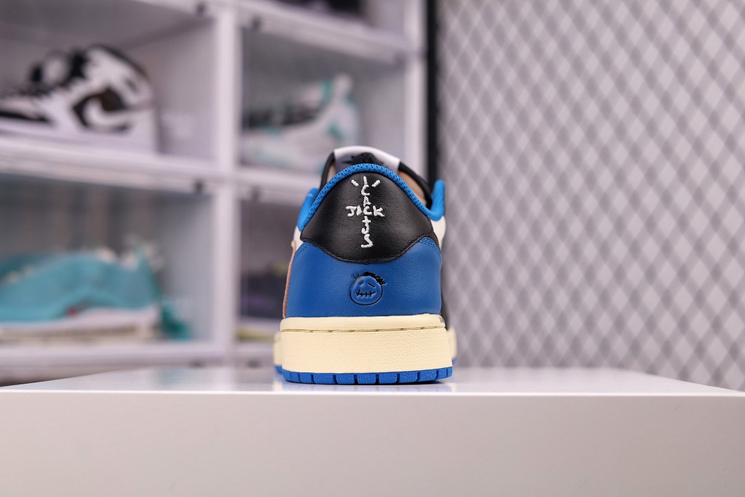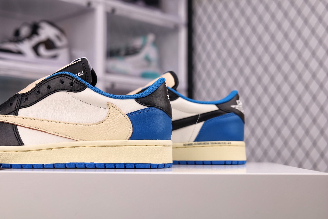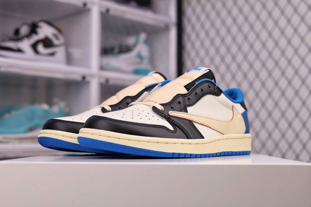 K0 K0 纯原版本 AS NK Travis Scott x Fragment Design x Air Jordan 1 Low 藤原浩三方联名 白蓝黑 倒钩低帮 原配方烧制大底 原厂SDS皮料全部采用德国进口电脑针车机台 针距、边距完全同步原鞋 原档案刺绣飞翼Logo 目前市面最高水准