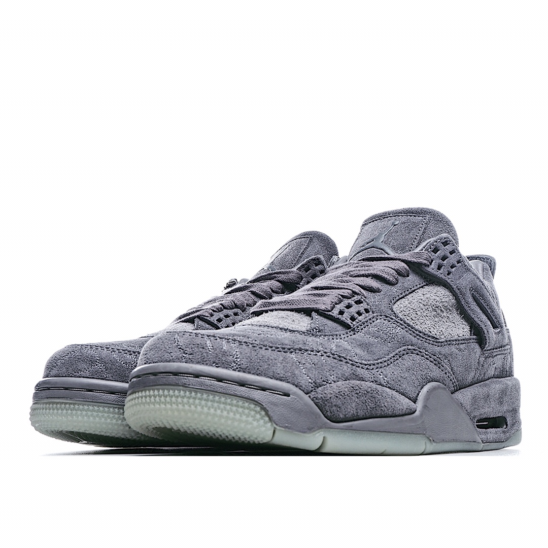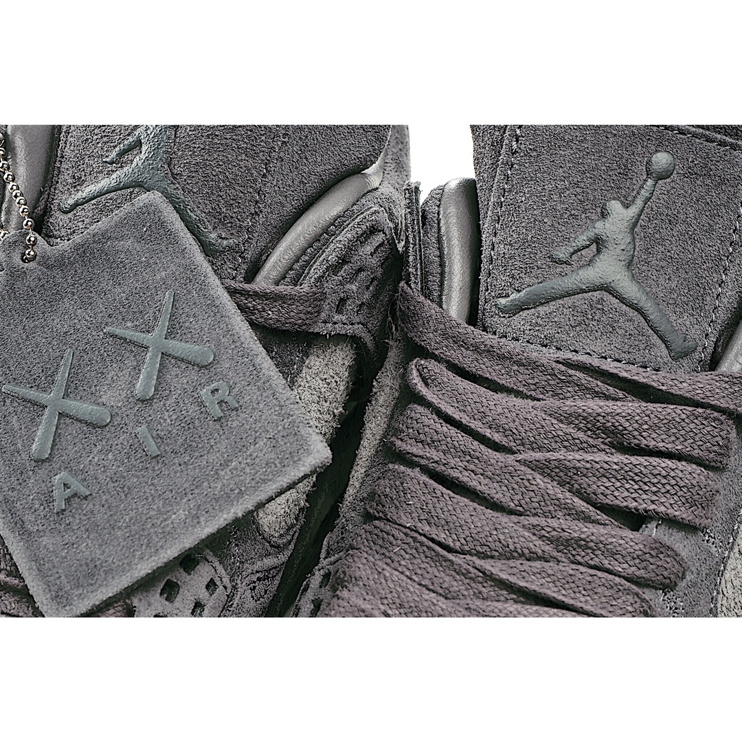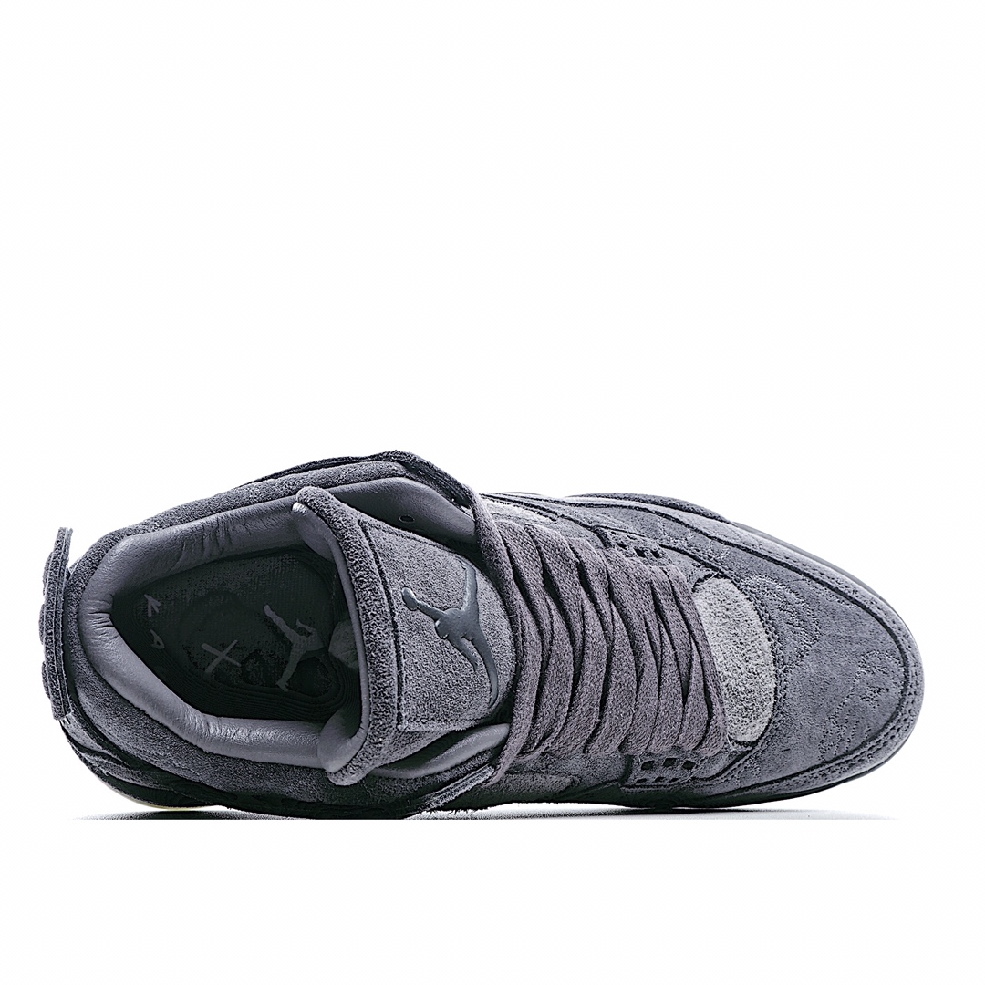 纯原 全球限量版,街头与传奇的全新结合✖✖潮流设计师品牌Kaws x Air Jordan 4 Retro”Cool Grey”迈克尔·乔丹AJ4代中帮复古休闲运动文化篮球鞋“麂皮酷灰夜光” 麂皮搭配夜光外底,酷灰配色清爽百搭,材质奢华、质感独特原楦原档案开发纸版楦型还原ZP细节渠道定制腐烂长绒麂皮原厂流水成型工艺厂级拉帮注胶效果