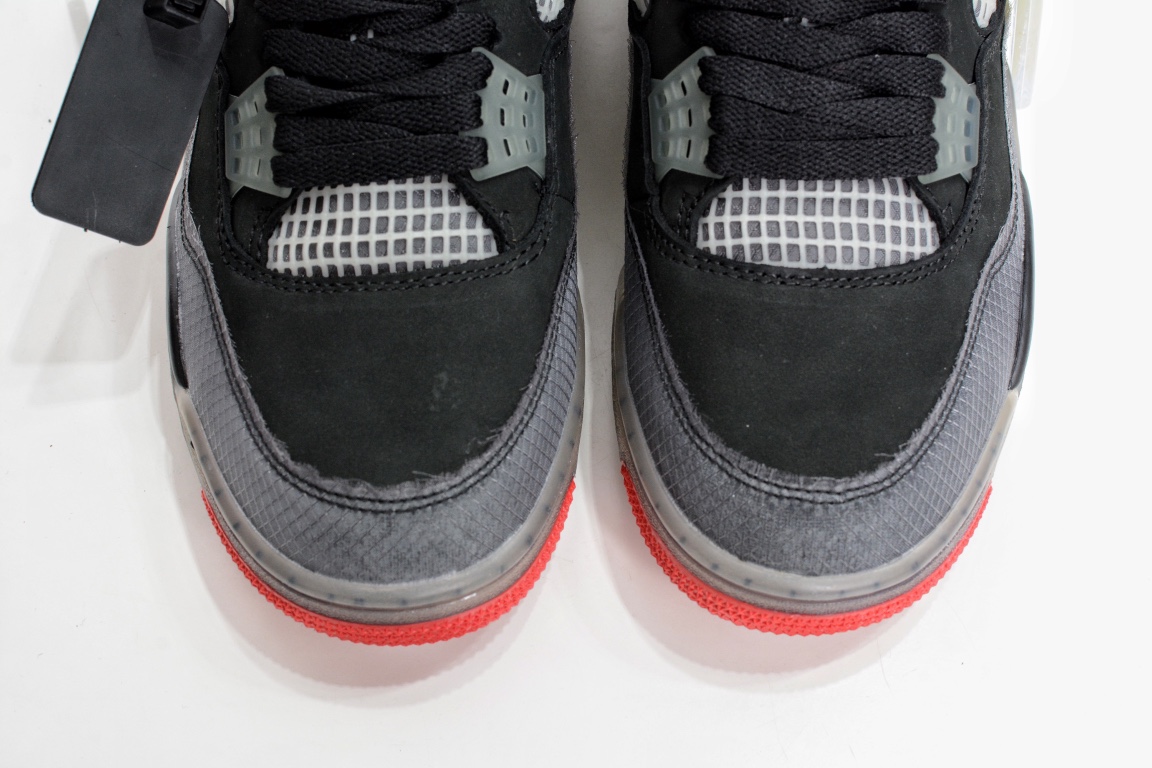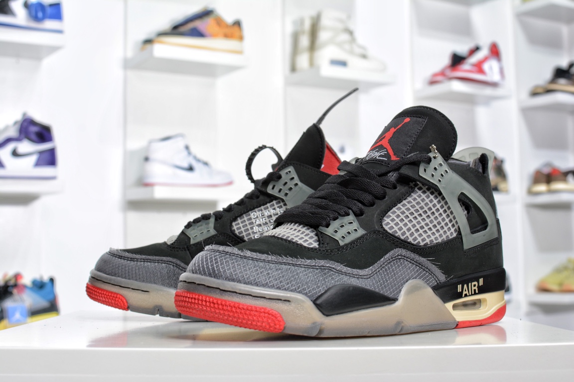 G版纯原第一批G版纯原❗️ off white x air Jordan 4 黑红 提前渠道开发,发售后可对比原鞋,区别市面看图做货版定制头层磨砂皮料 正确侧边tpu材料卡色 正确鞋舌立体高频 内置原厂气垫