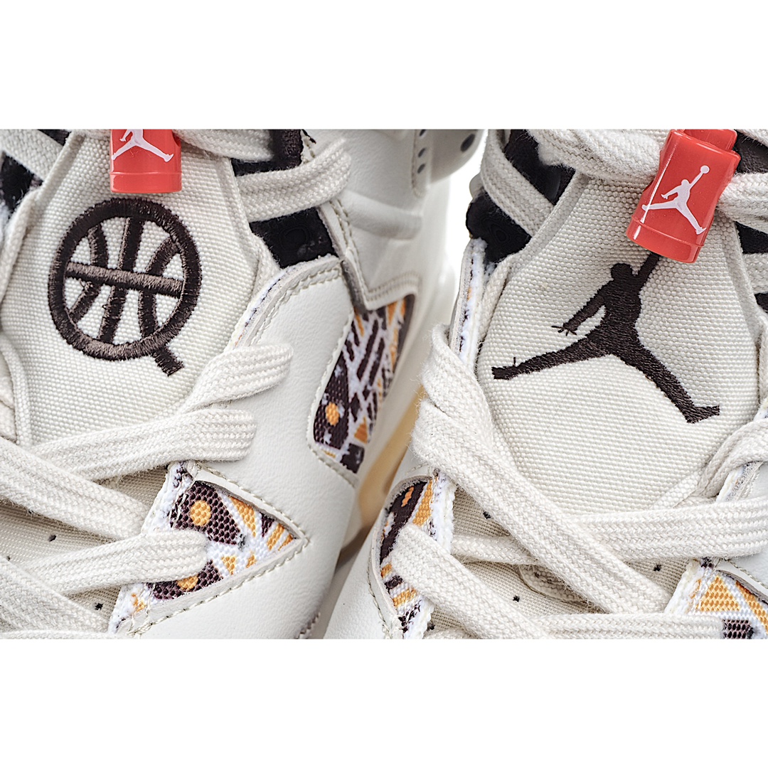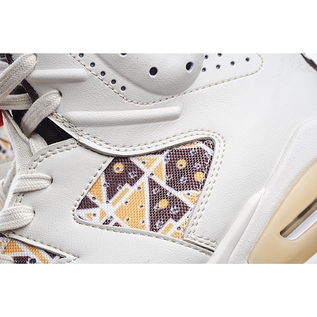 H0 Air Jordan 6“Quai 54”AJ6 乔6卡其棕 CZ4152- F5 街球竞标赛配色依然是帆白色的整体色调,有着极为清爽百搭的视觉感受,细节则以黄棕色呈现民族风图纹,有一种原始的时尚感受。左右后跟分别以 Nike Air 和 Quai 54 Logo 呈现,在遵循 OG 复古设计的同时,又表明了它的身份。