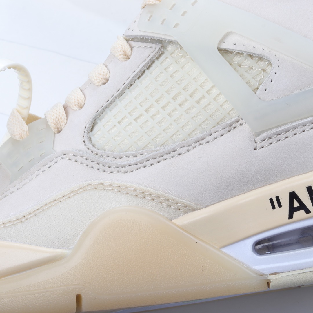 H5 超级纯原 绝佳好货Off-White™ x Air Jordan AJ4 Retro”Cream/Sail”“OW联名白帆”货号:CV9388- F5 尺码:40-47.5带半码