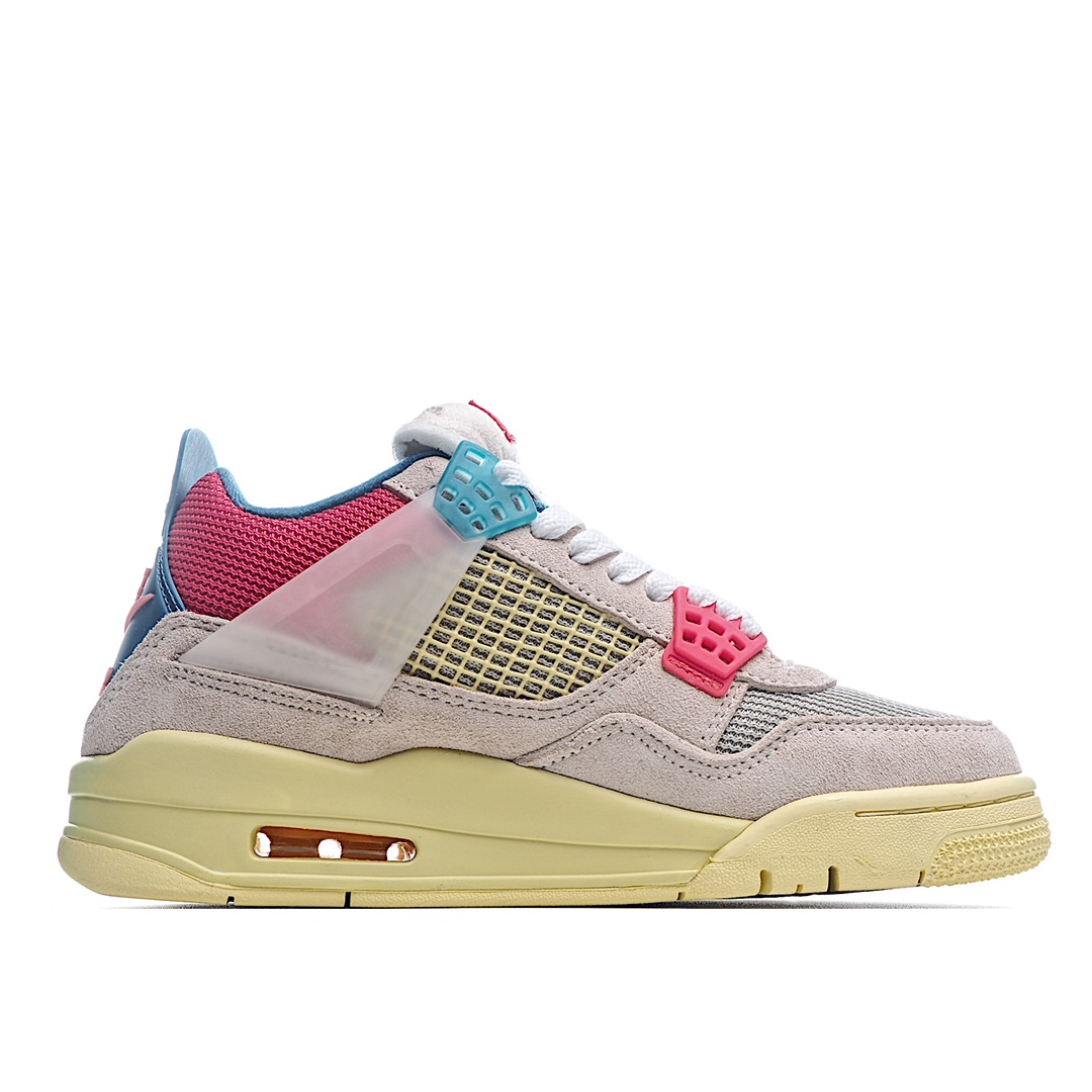 I0 Union x Nike Air Jordan 4 天价联名 蓝海岸 粉红蓝鞋身上经典的网格开窗部位缝有联名标签。鞋舌是最特别的细节之一,鞋舌长度变短并改为海绵材质,缝有 “AIR JORDAN” 字样。搭载自带氧化效果的黄色鞋底,后跟则是鲜艳夺目的 Nike Air 标志,遵从了 OG 元年的设计 货号:DC9533- F5 0尺码:36-46带半码 编码:mzrwy91