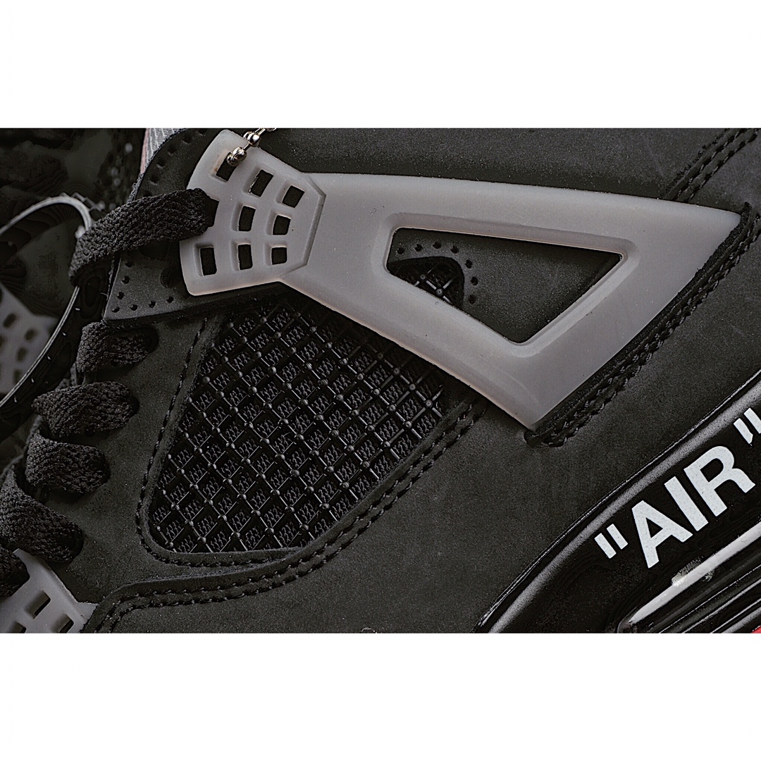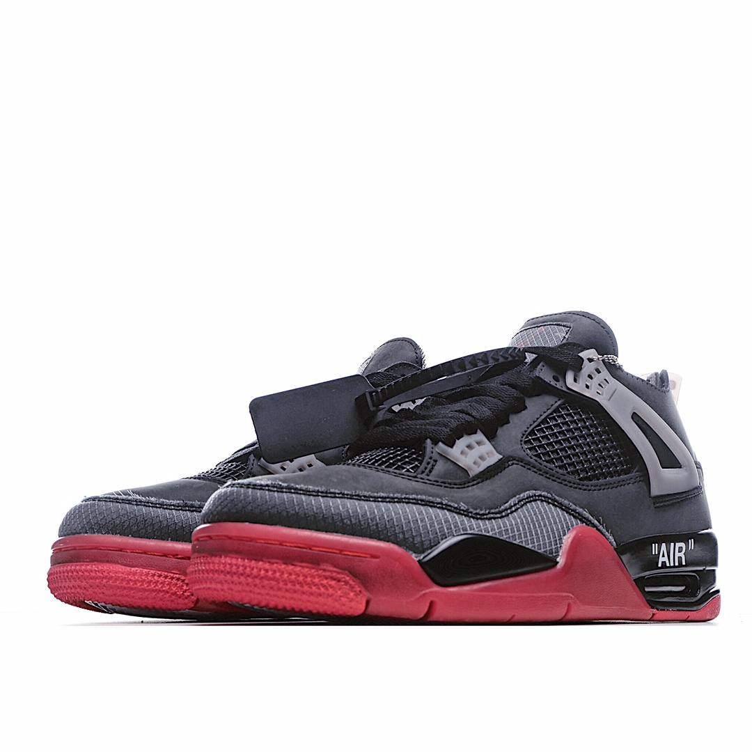 I5 Off-White x Air Jordan 4 Retro AJ4 乔4中帮复古休闲运动文化篮球鞋该鞋款采用灰色为主体,运用红色进行视觉效果上呼应。当中能够看到全鞋设计上在搭载经典轮廓的同时,亦注入了中底 AIR 字样、泡棉外露鞋舌、异材质拼接、半透明橡胶物料和说明书式字样等标志性元素,提供截然不同的细节质感。