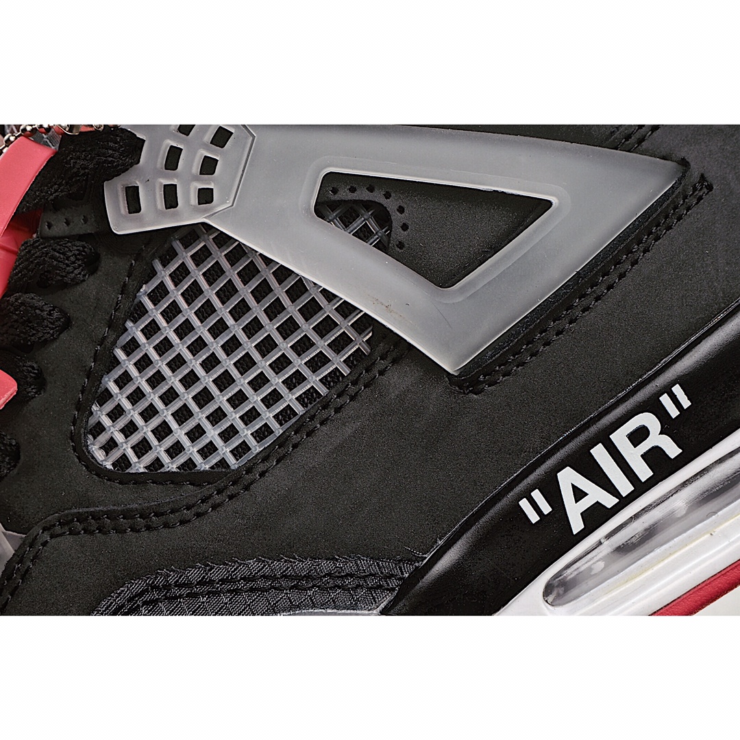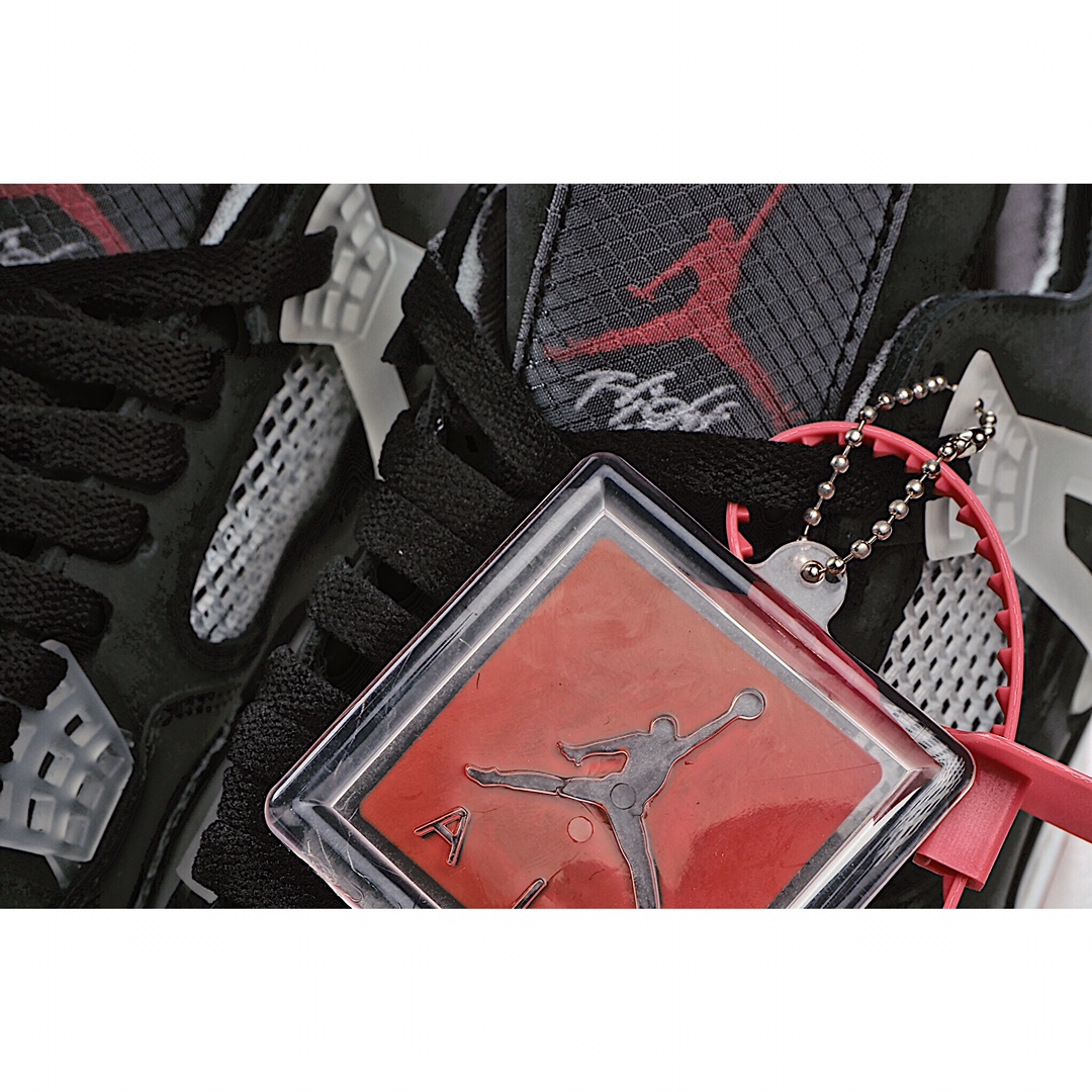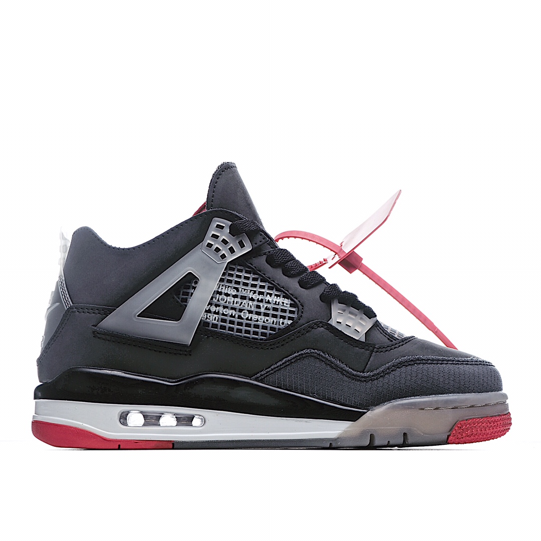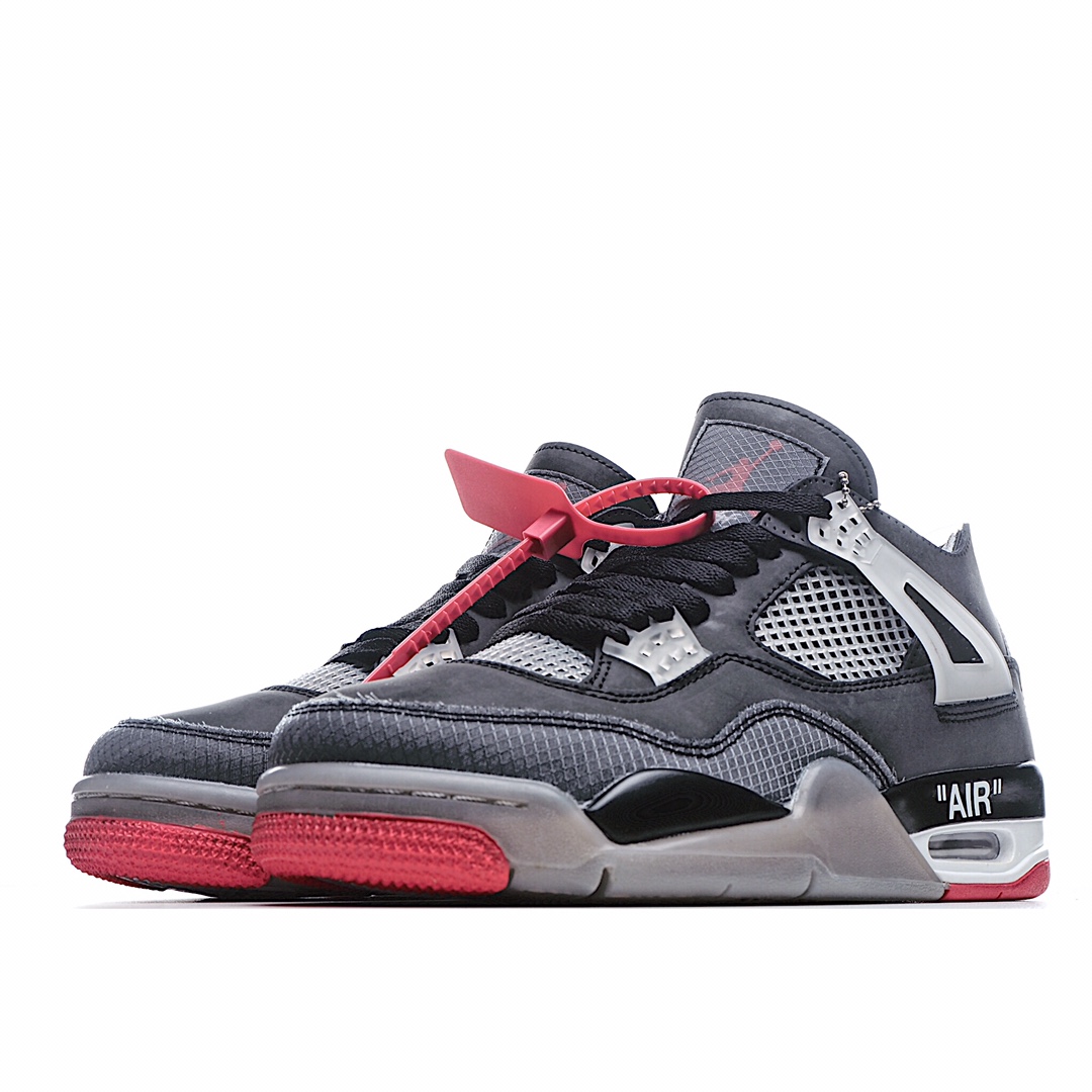 I5 Off-White x Air Jordan 4 Retro AJ4 乔4中帮复古休闲运动文化篮球鞋该鞋款采用灰色为主体,运用红色进行视觉效果上呼应。当中能够看到全鞋设计上在搭载经典轮廓的同时,亦注入了中底 AIR 字样、泡棉外露鞋舌、异材质拼接、半透明橡胶物料和说明书式字样等标志性元素,提供截然不同的细节质感。