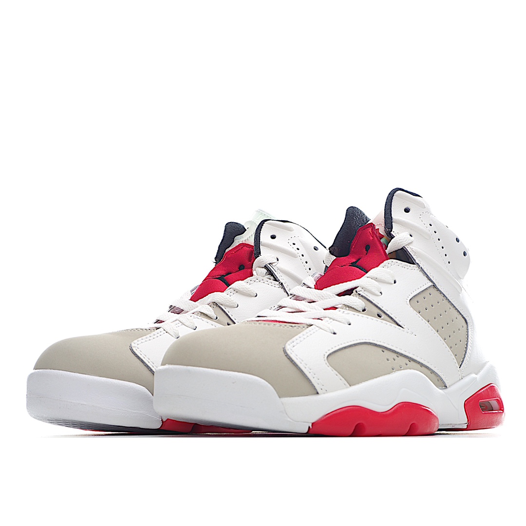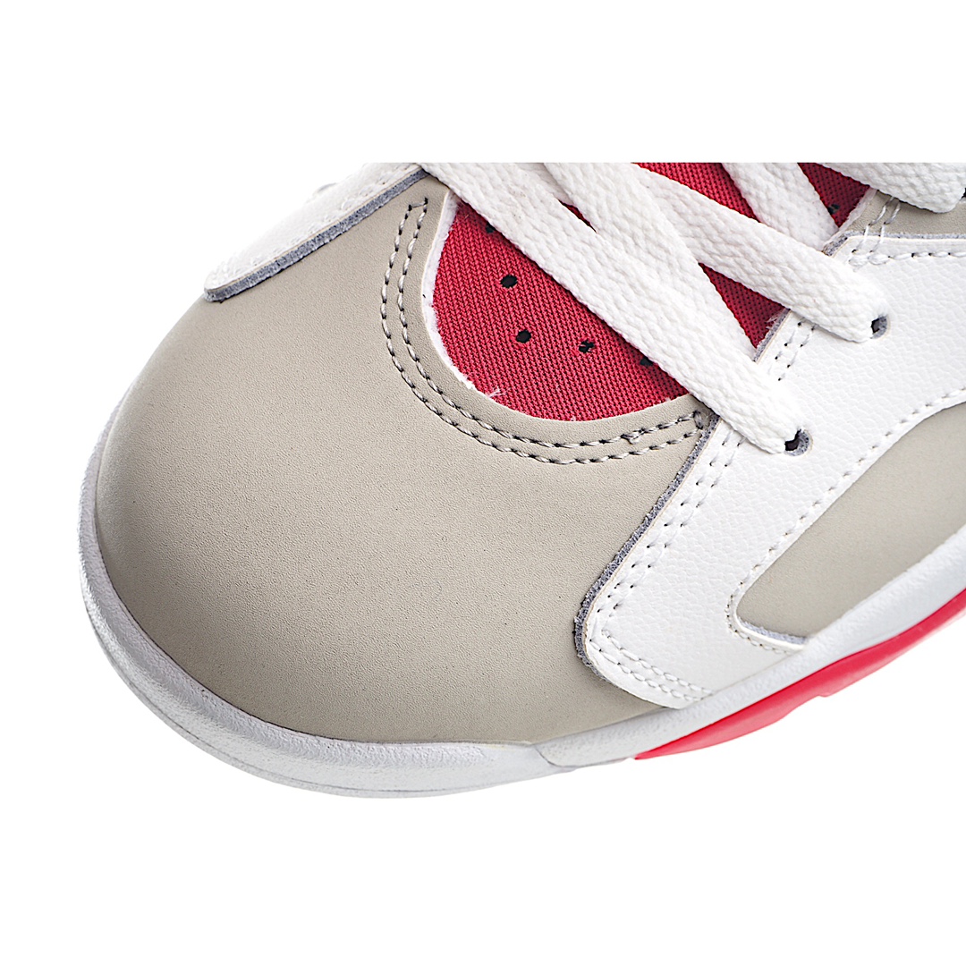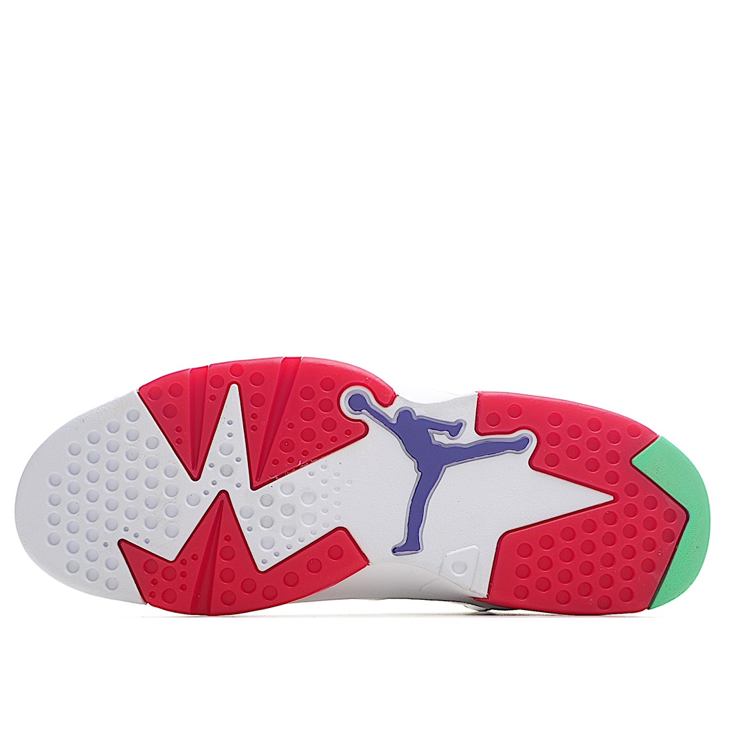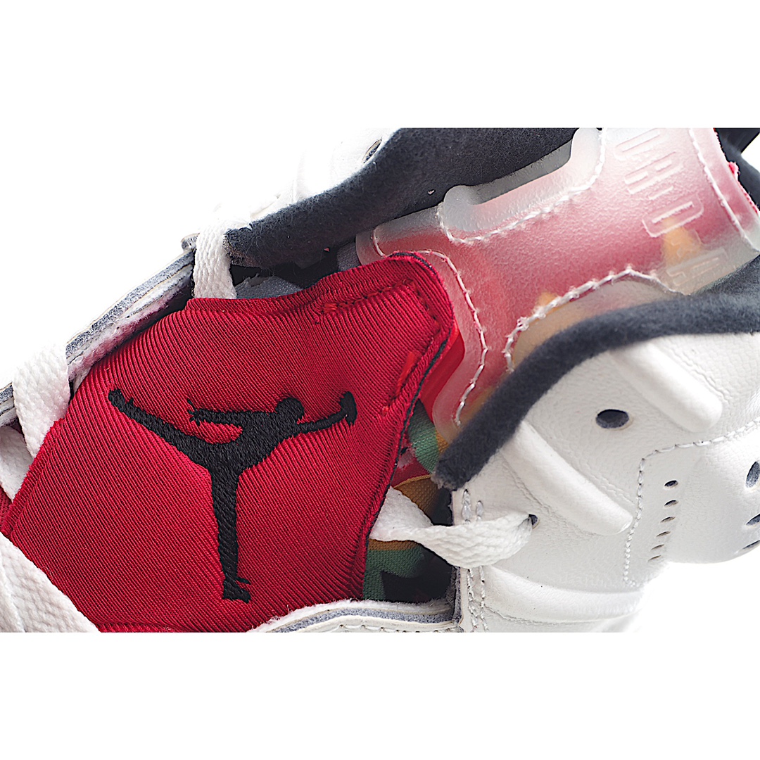 J0 公司级 原盒 乔丹 AJ6 兔八哥 白红色 Air Jordan 6 “Hare” 源自华纳兄弟的经典动画人物兔八哥,通过《空中大灌篮》 与 Jordan Brand 结下深厚友谊。 鞋面延续灰白两色,并在鞋舌融入标志性的彩色涂鸦。 材质搭配也颇为考究,绸缎鞋带扣、紫色刺绣飞人点缀后跟,外加拼色鞋垫。 并且,这双鞋与新 Air Jordan 7 “兔八哥 2.0” 一样,胡萝卜鞋盒。