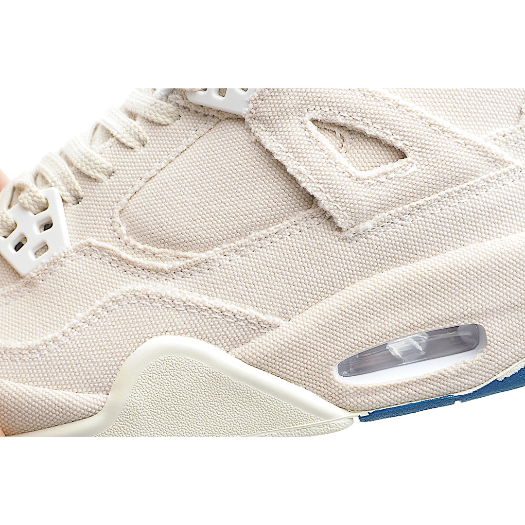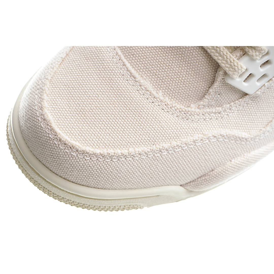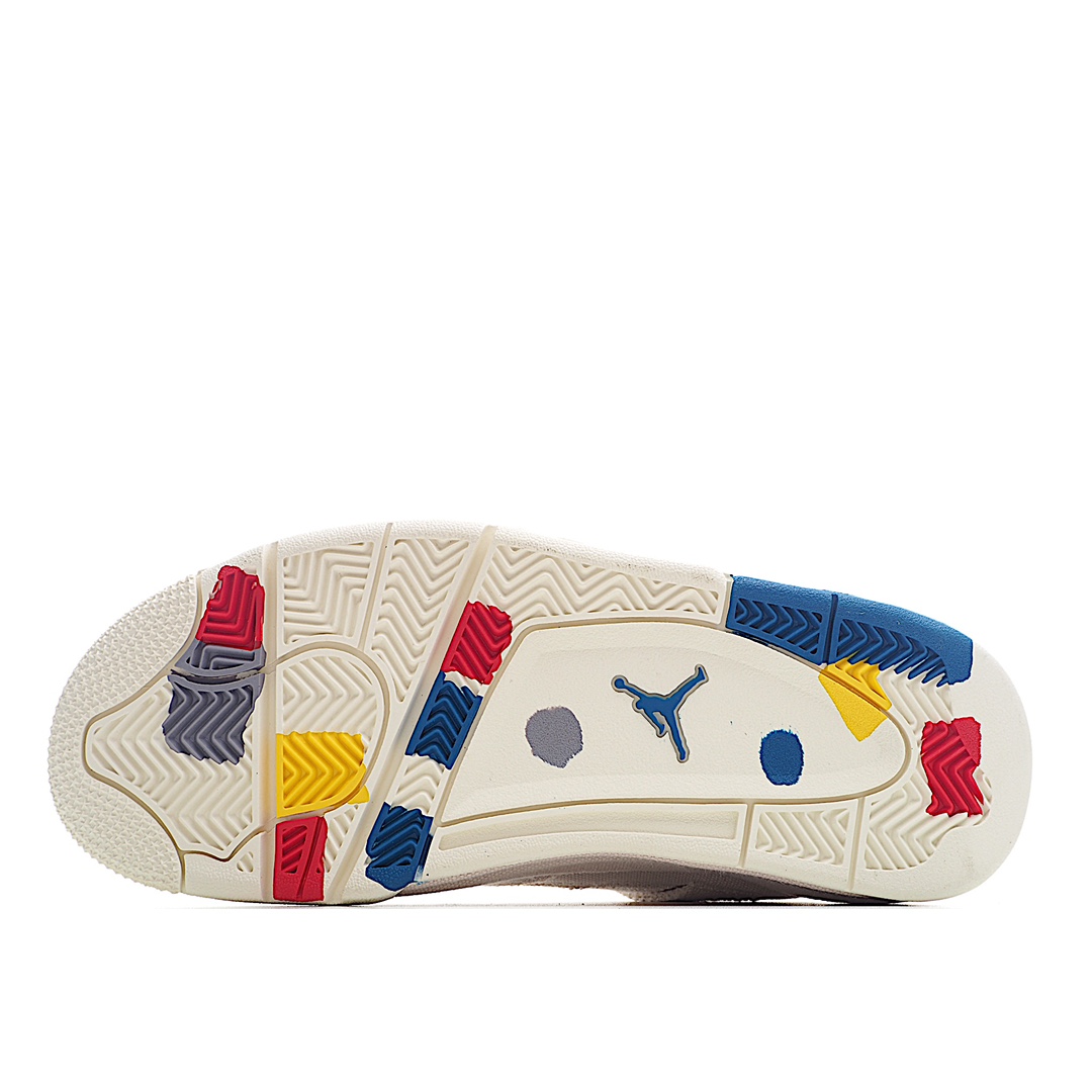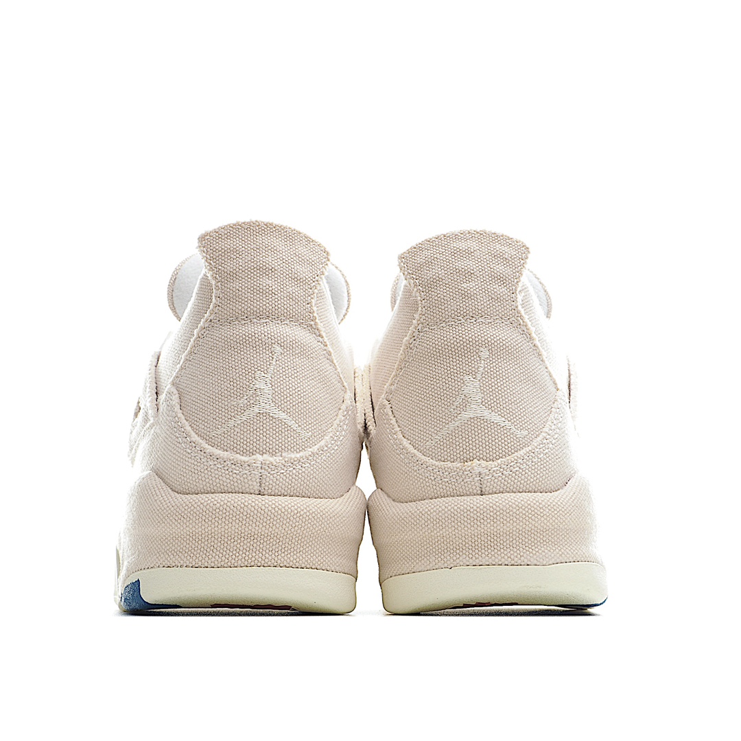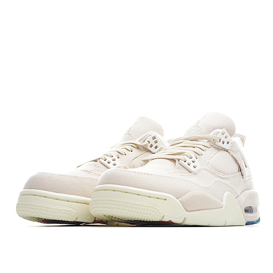 J5 纯原版本 耐克 Nike Air Jordan 4 Retro”Canvas” AJ4代复古休闲运动文化篮球鞋“米白帆布 小Levi’s”整体采用 Sail 帆白配色构建鞋身,中底特别采用帆布材质包裹,营造统一的质感表现。外底方面通过多彩喷墨装扮营造,鼓劢玩家也可参考,对简洁帆布鞋面进行 DIY 上色改造。细节方面也与传统的 Air Jordan 4 大不相同,鞋侧框架、网面以及后跟装饰均改用帆布示人,日常穿搭也会更为讨喜。