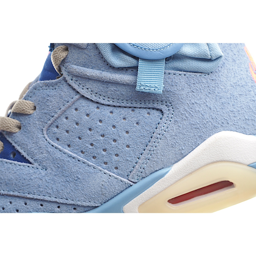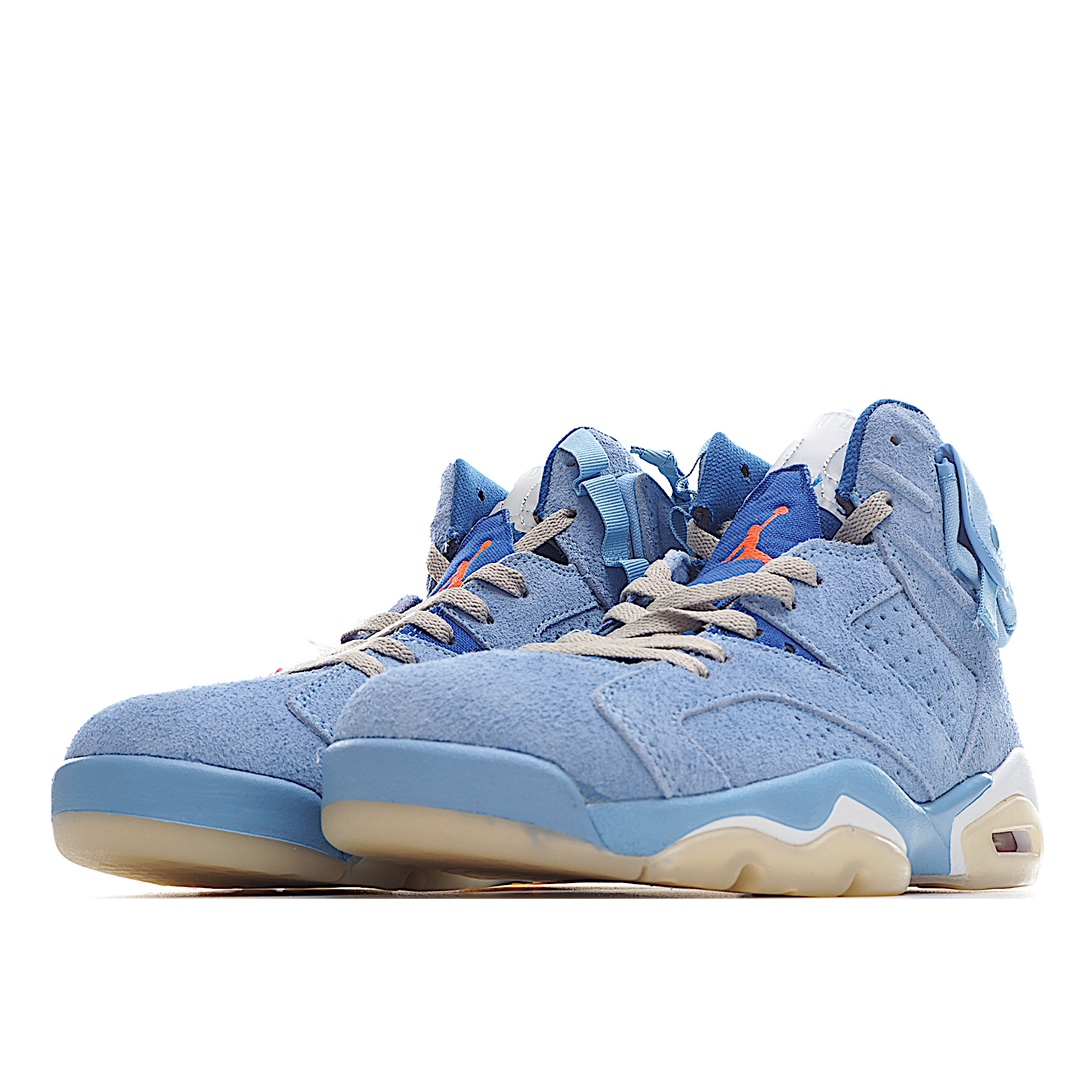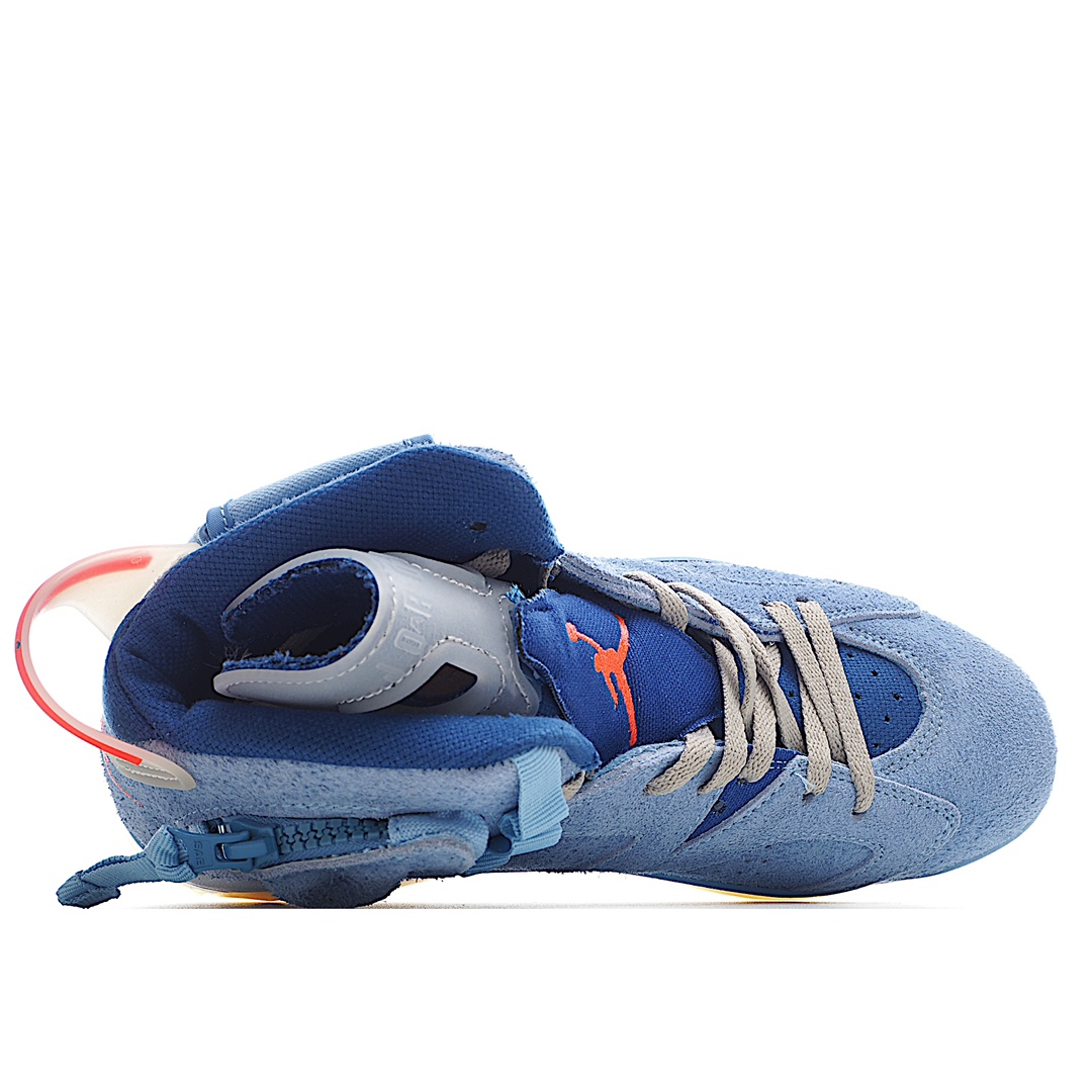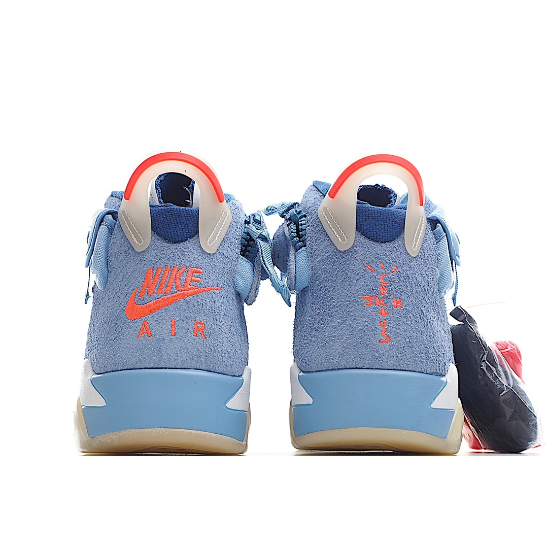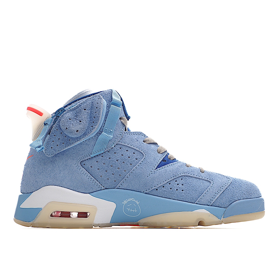 K0 纯原 Travis Scott x Air Jordan 6 重磅联名ST鬼脸 新配色蓝麂皮 鞋面采用台产长绒“腐烂”麂皮,夜光效果及3M反光 追求原厂工艺,刺绣饱满立体原厂大底纸板钢印 鬼脸烫画正确美观 真实大底气垫 清晰可视小窗特别是两边口袋作工精细完美 拒绝一眼假整鞋用料质感厚重 针车难度极大 非一般工厂所能完成 整体鞋型收腰底趴
