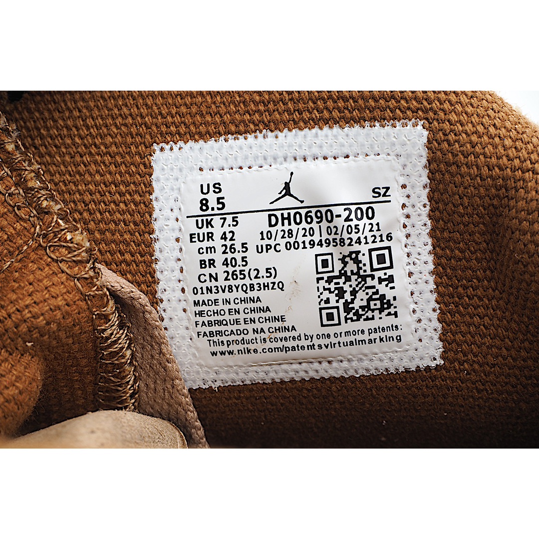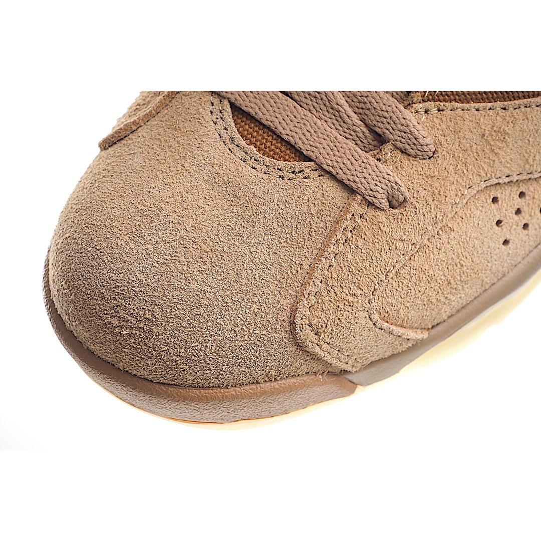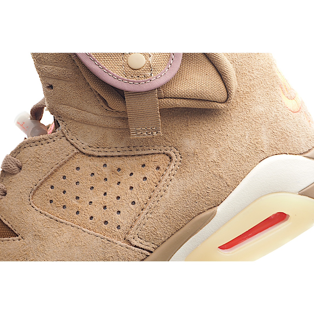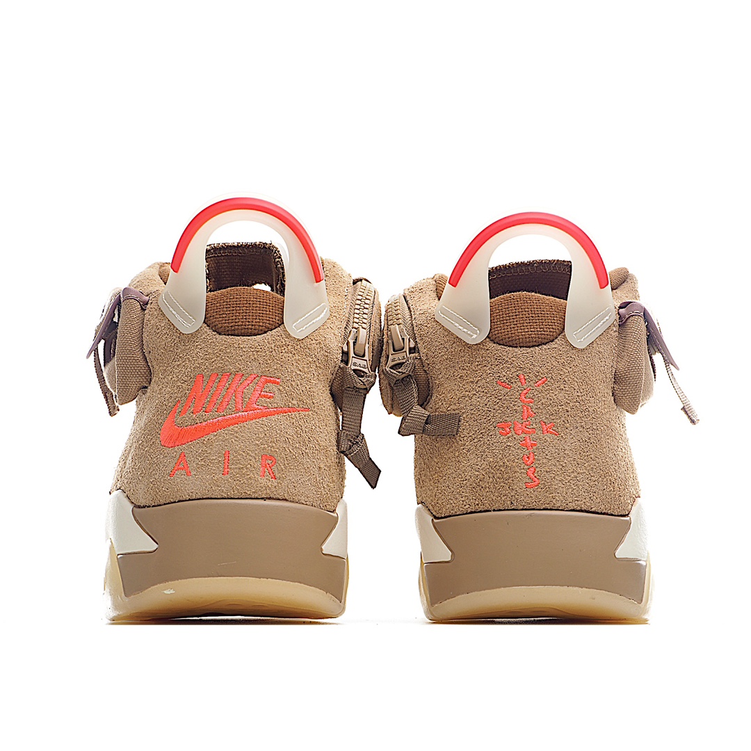 K0 纯原Travis Scott Air Jordan 6 British Khaki 夜光反光篮球鞋 全新的 Travis Scott x Air Jordan 6 采用了不同于前作的翻毛皮材质,以棕色色调贯穿全身。红色 Jumpman Logo 居中点缀,鞋舌侧边缀有 Travis Scott Logo,并且极具工装韵味,很好穿搭极具街头辨识度。细节设计与此前大不相同,鞋帮内侧位置以拉链设计妆点,中底上缀有 Travis Scott 经典的笑脸 Logo。最后以乳白色水晶大底收尾,并缀以笑脸 Logo 和镜像的 Travis Scott 字样,完善整体造型设计。