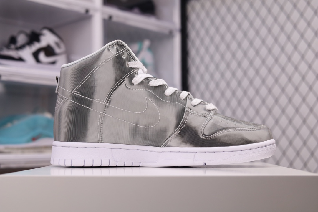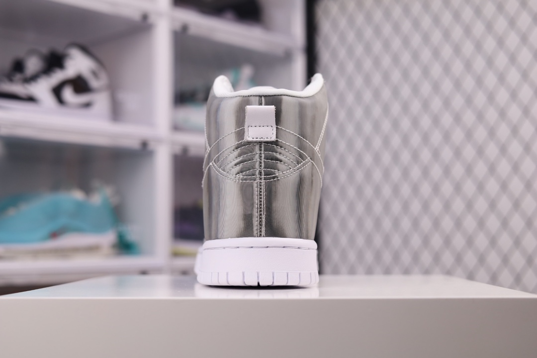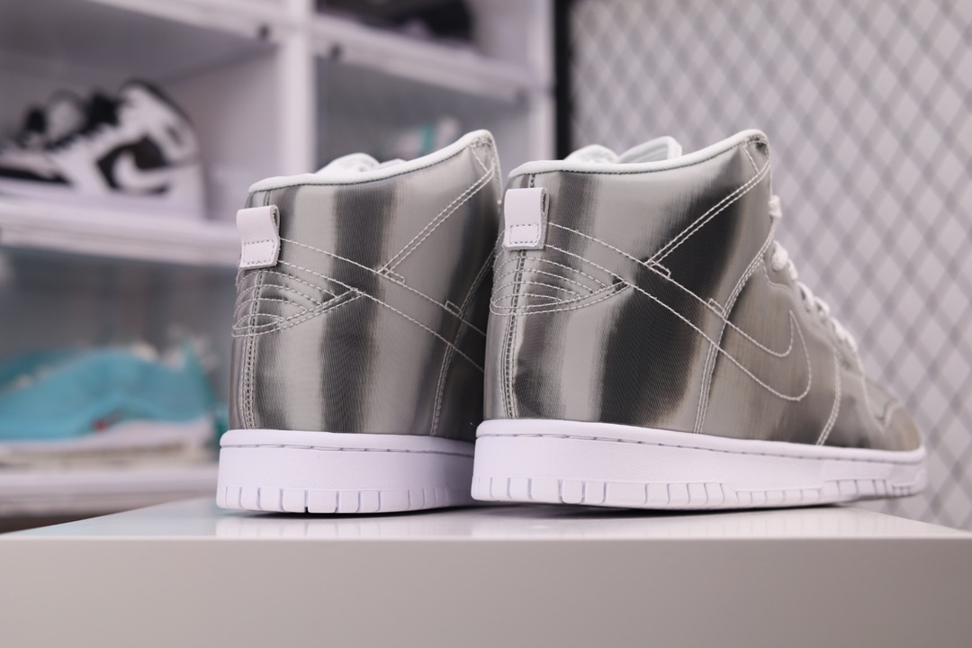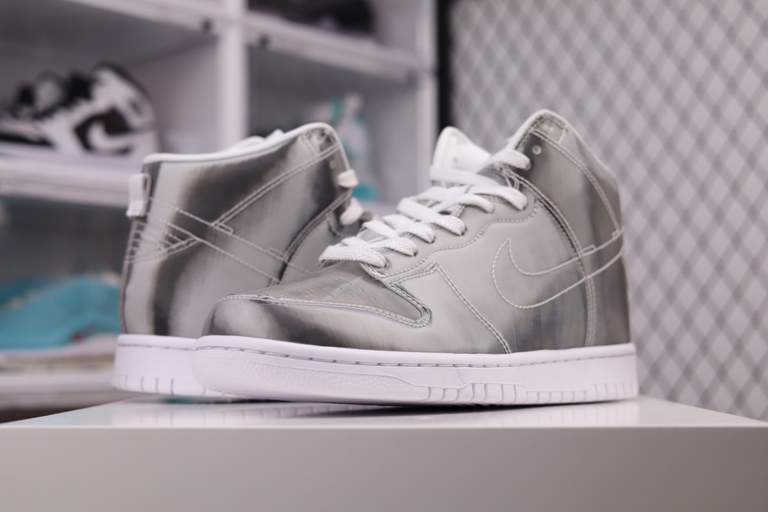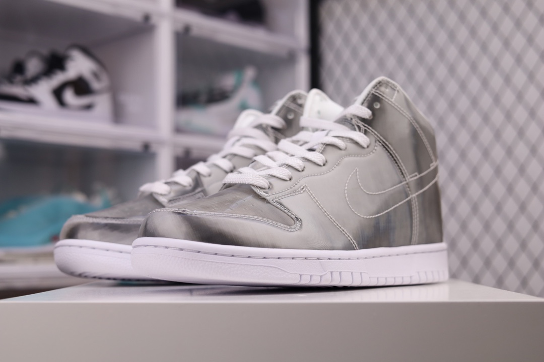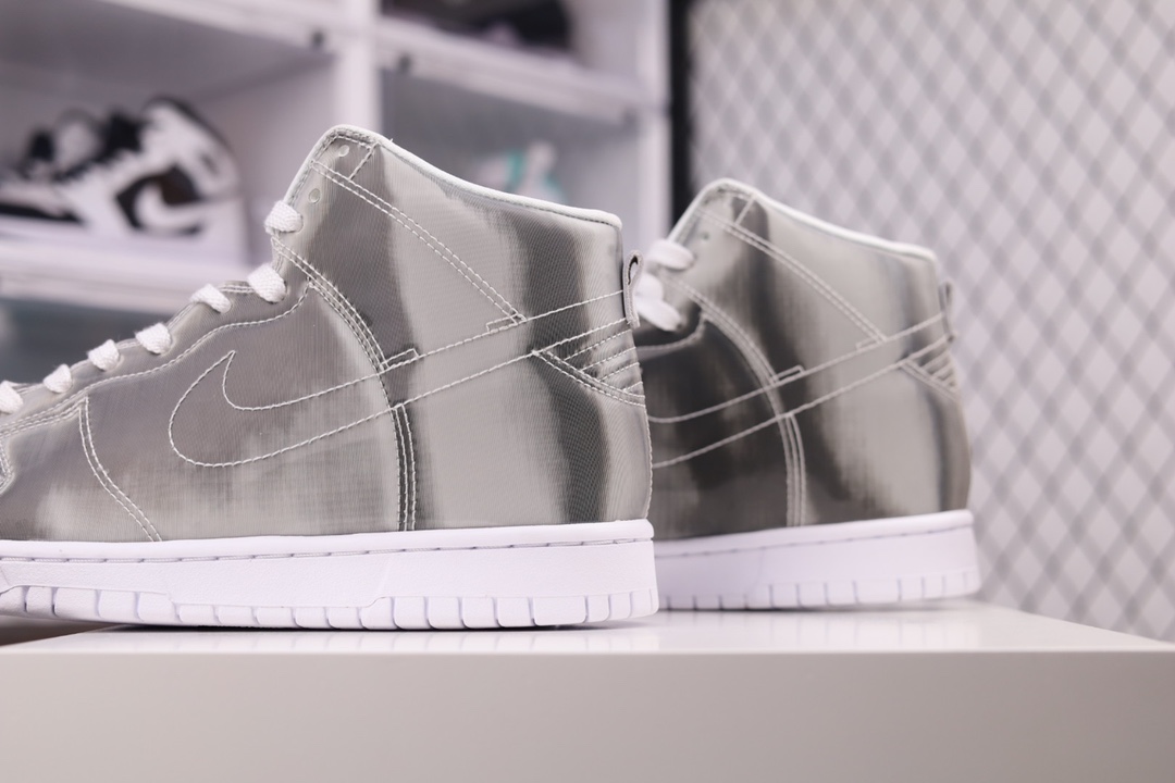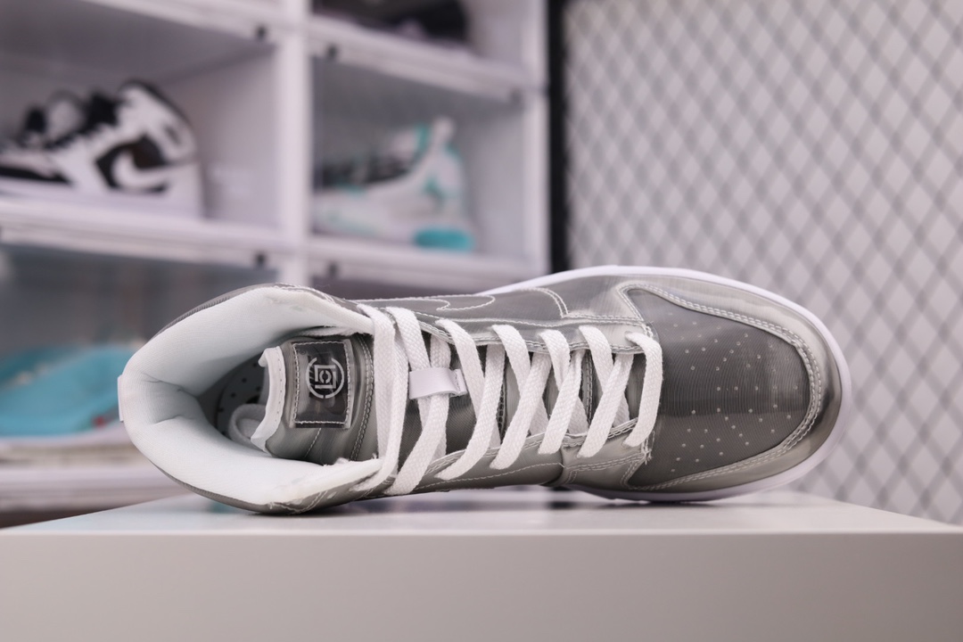 纯原版本 帅爆了,金属配色CLOT x Nike Dunk High”Silver Metallic”扣篮系列高帮休闲运动滑板板鞋“渐变金属银白”采用同源全息金属质感半透明TPU覆盖层鞋面材质原厂级拉帮中底效果正确后跟反口里弧度鞋垫嵌入缓震乳胶+Sole真气垫装置内置Sole真气垫装置及耐磨防滑外底❗