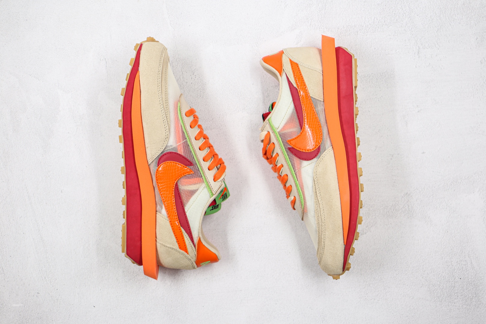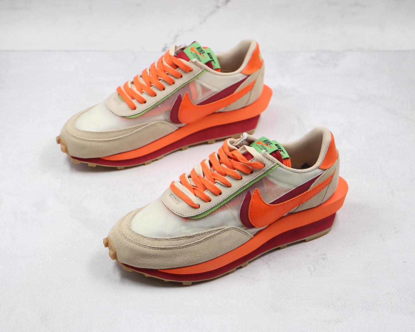 纯原 华夫二代 2.0 白橙红 双钩 网面 透明 日式解构美学SACAI联名 × NIKE LDV Waffle重叠设计前卫华夫变形休闲慢跑鞋 sacai在SS19的发布会上展示了自己与Nike全新联名的系列,其中有两款鞋特别引人注目,这两款鞋均为混合鞋款,分别将Blazer与Dunk和Waffle Daybreak与LDV融为一体,采用了双鞋舌,双鞋带,双Swoosh的设计,并且每款鞋均有两种的配色方案。