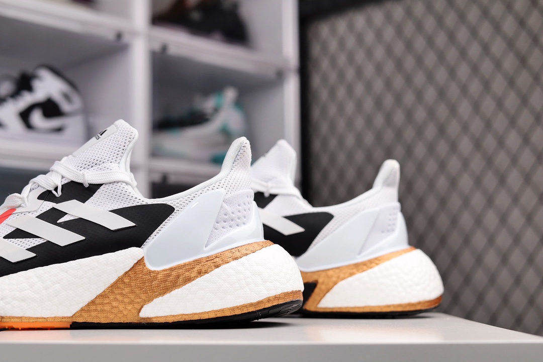G0 公司级 AD Boost X F5 00L4 整体造型极具速度感 实拍首发鞋面以织面材质,搭配热固橡胶装饰,三角形贴面让鞋身呈现出满满的科技感与力量感。中底以夸张的前后掌厚度差呈现,锯齿状廓形,后跟向外大幅延伸,设计非常拉风×996MG