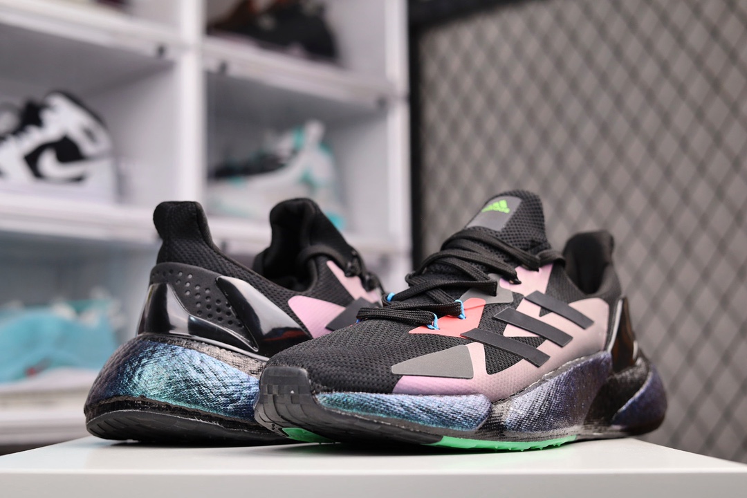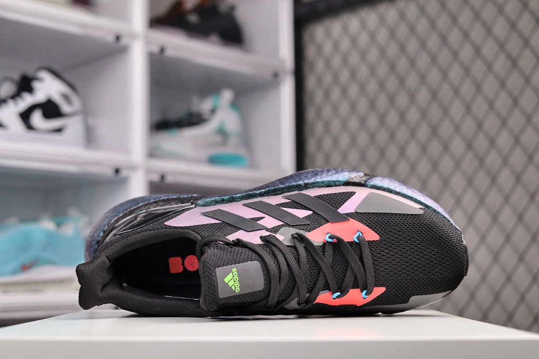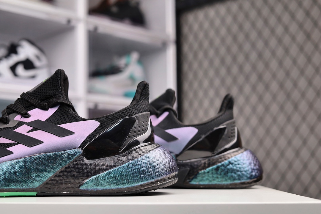 G0 公司级 AD Boost X F5 00L4 整体造型极具速度感 实拍首发鞋面以织面材质,搭配热固橡胶装饰,三角形贴面让鞋身呈现出满满的科技感与力量感。中底以夸张的前后掌厚度差呈现,锯齿状廓形,后跟向外大幅延伸,设计非常拉风×996MG