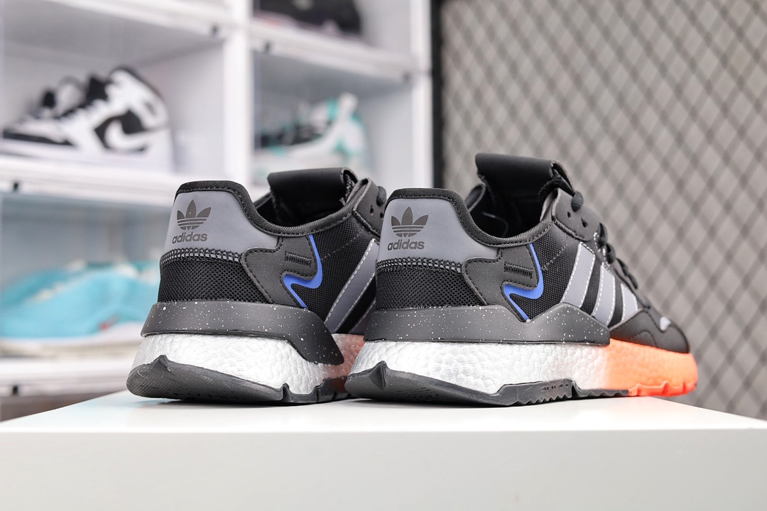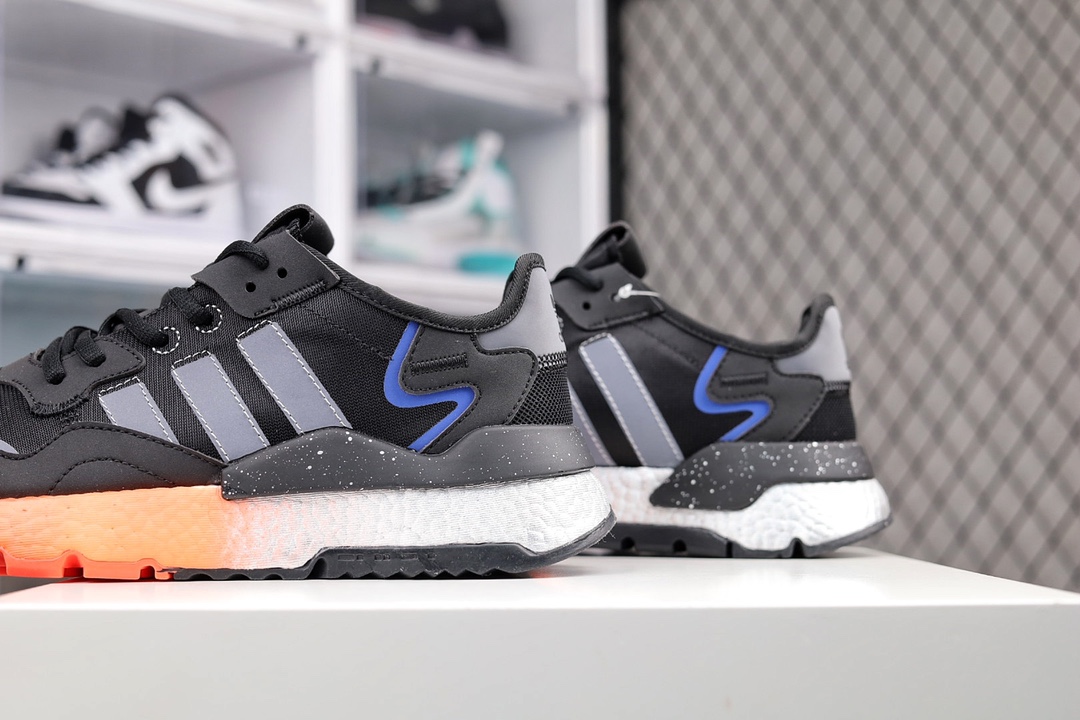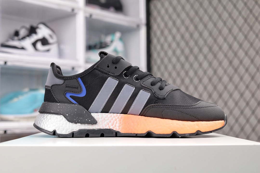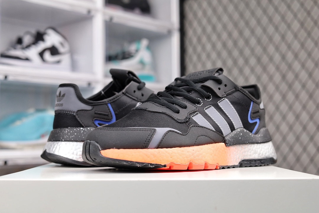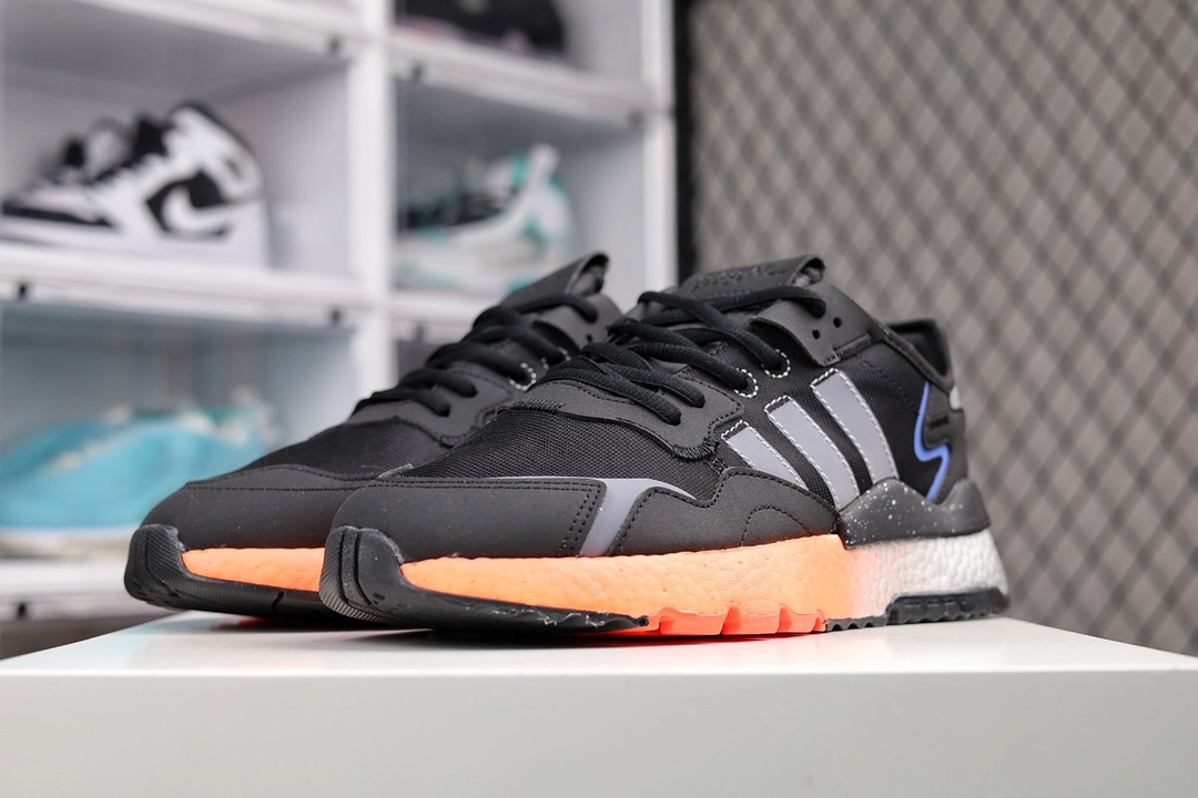 G0 夜行者一代 黑色 3M反光 三叶草 Nite Jogger 联名夜行者 AD Nite Jogger 2019 Boost复古跑鞋原厂材料 原厂大底 家独模 网布搭配麂皮拼接打造鞋面 极具复古风格鞋头及鞋跟点缀3M反光设计极为亮眼中底采用全掌 Boost 科技,厚度相当可观,脚感极佳×996BL