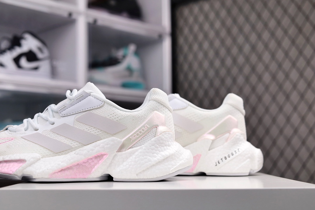 G0 Adidas Boost X F5 00L4 W全新99系列复古爆米花跑鞋整体造型极具速度感,与 Adidas ZX 系列相似的硬挺廓形。 鞋面以织面材质,搭配热固橡胶装饰,三角形贴面让鞋身呈现出满满的科技感与力量感。 中底以夸张的前后掌厚度差呈现,锯齿状廓形,后跟向外大幅延伸,设计非常拉风。 另外,这双鞋的外底花纹构成也非常独特,致密的小方格纹深浅不一。 前掌外沿还配有特殊处理的稳固模块,搭配 Boost 中底材质×336XQ
