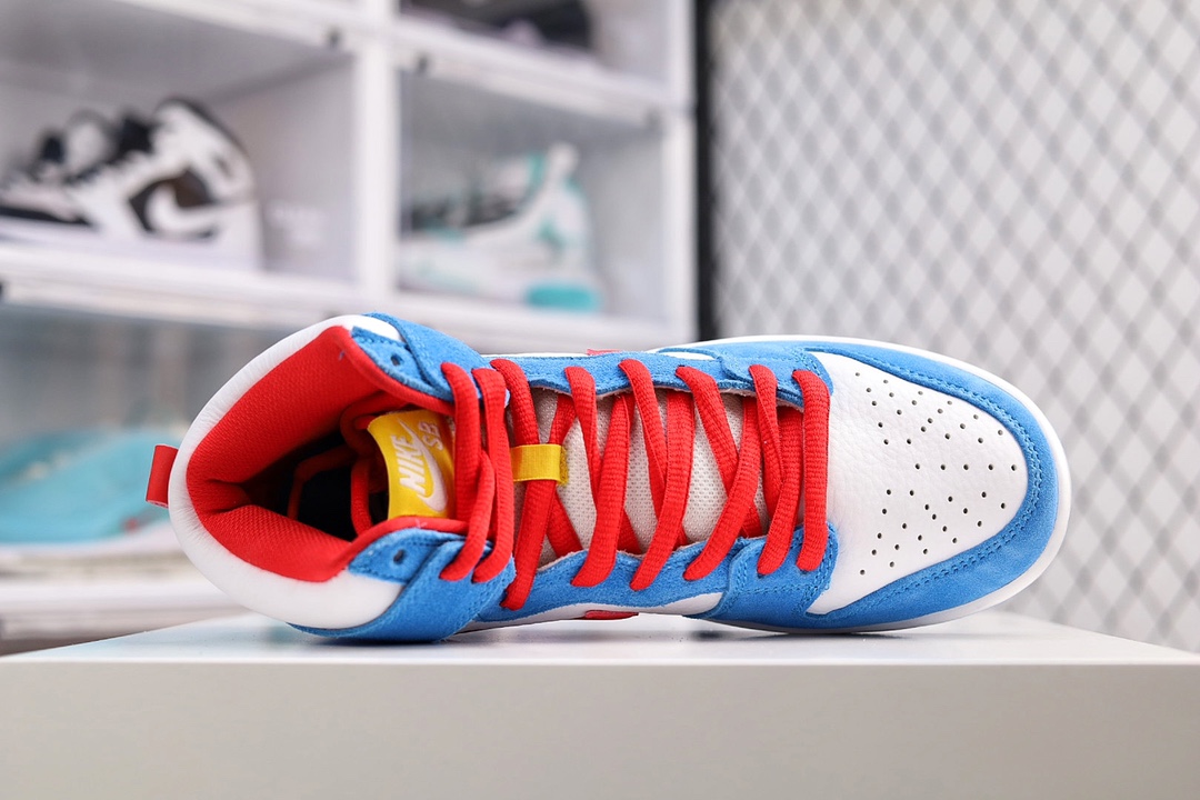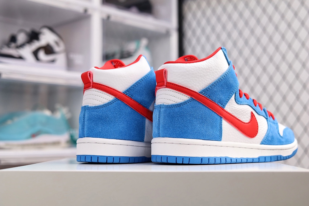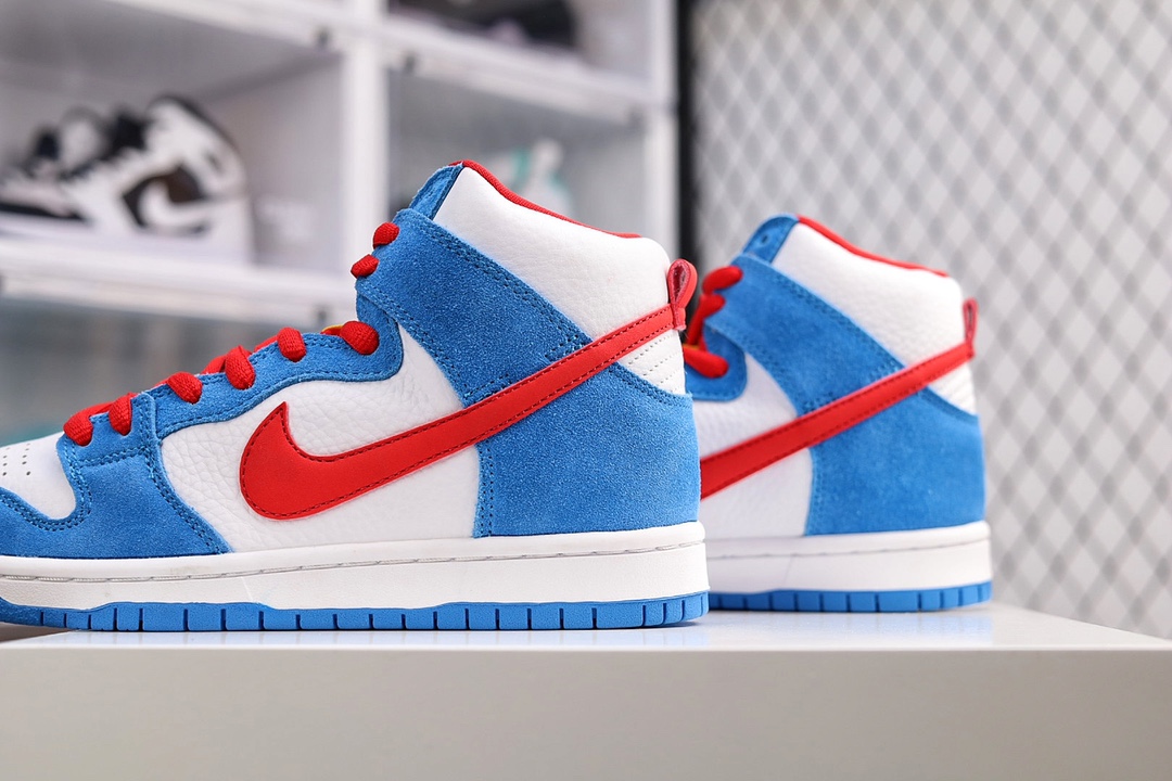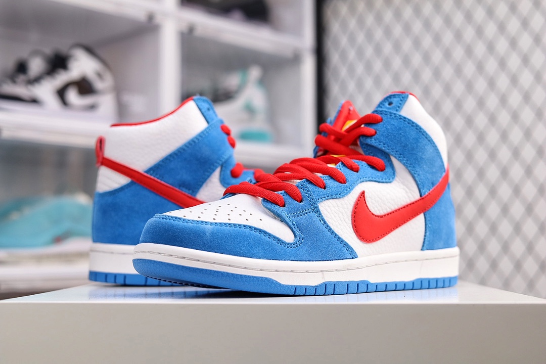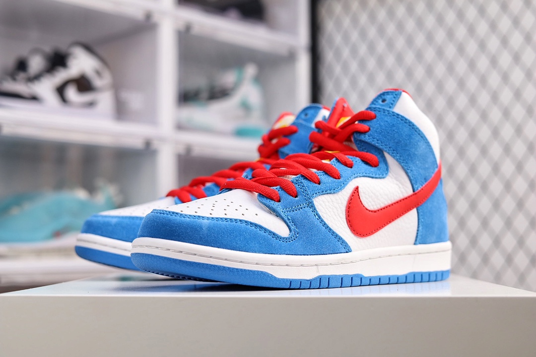 G0 NK Dunk High SP Pro高帮滑板鞋DUNK的本意其实是一对贴地性良好的板鞋。在设计方面Dunk是以Air Jordan 1代为设计原型,所以都拥有了极好的抓地性能和场地感,保证了那些优秀的球员在场上可以轻巧且稳定的运动,因此性能也不可挑剔。【林允同款】公司级 NK SB Dunk High “Doraemon” 哆啦A梦 机器猫主题配色 货号:CI2692- K0 尺码:36 36.5 37.5 38 38.5 39 40 40.5 41 42 42.5 43 44 44.5 45 46