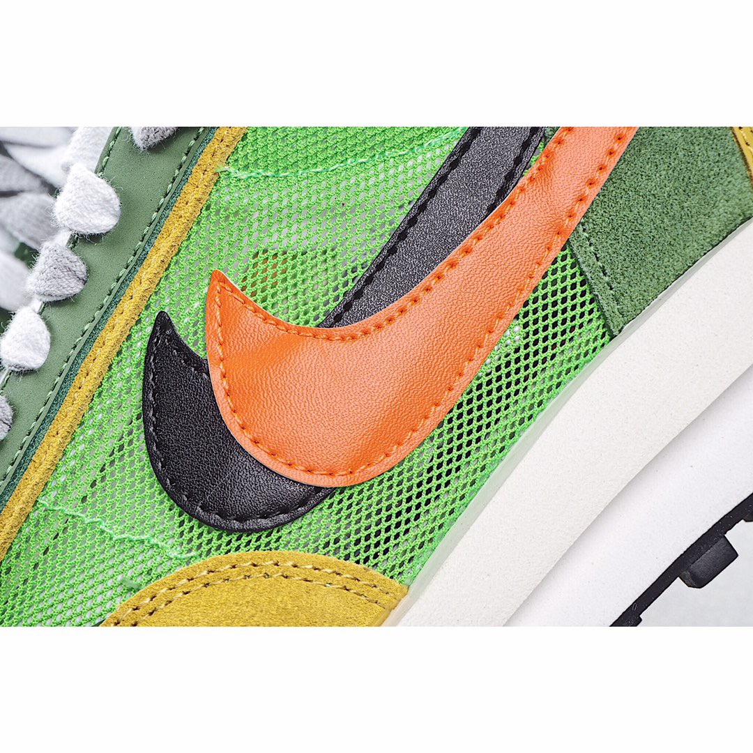 G0 Sacai x Nike LVD Waffle Daybreak 联名走秀款 网纱皮面拼接 解构双勾双标双鞋带厚底 双勾Swoosh跑步鞋