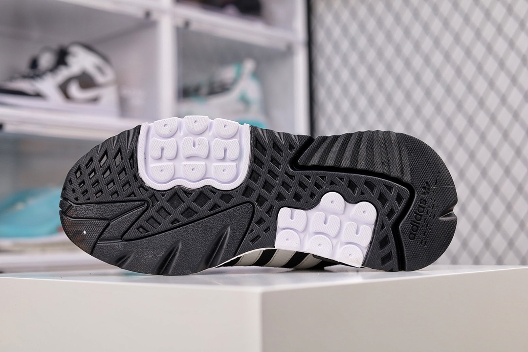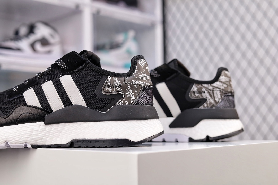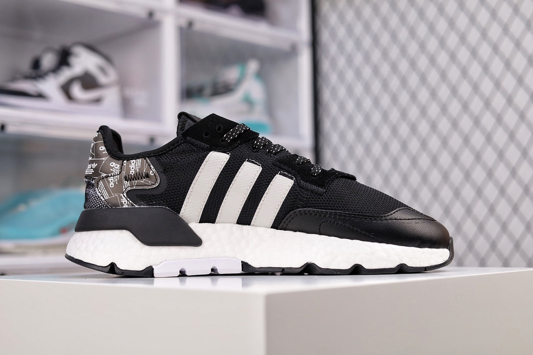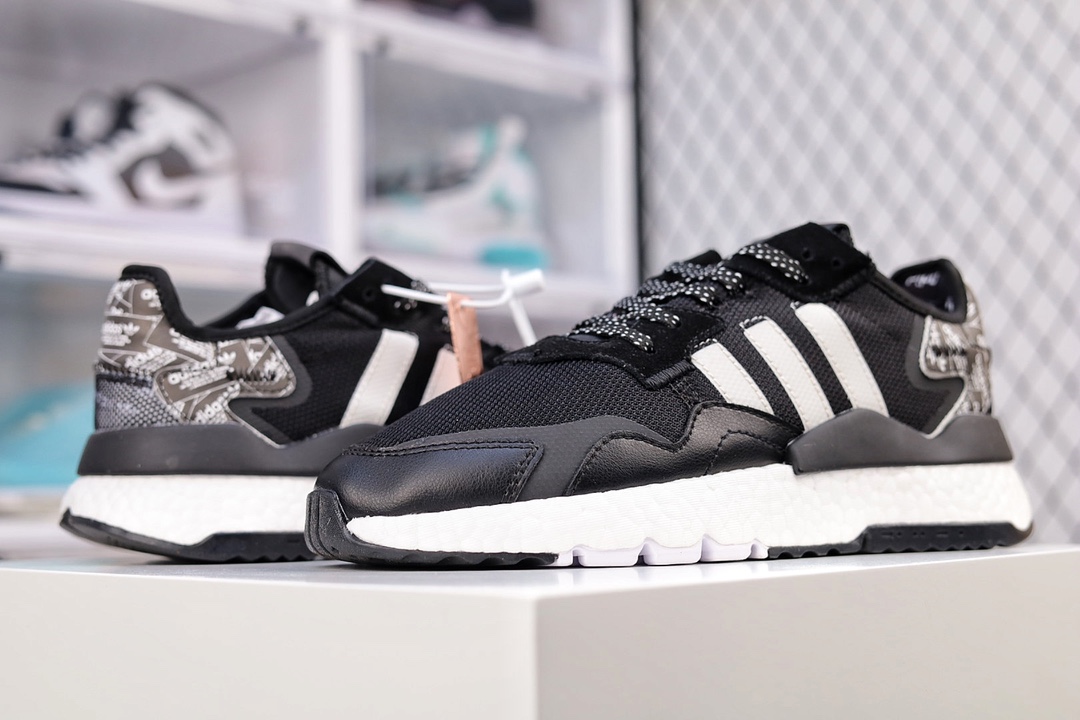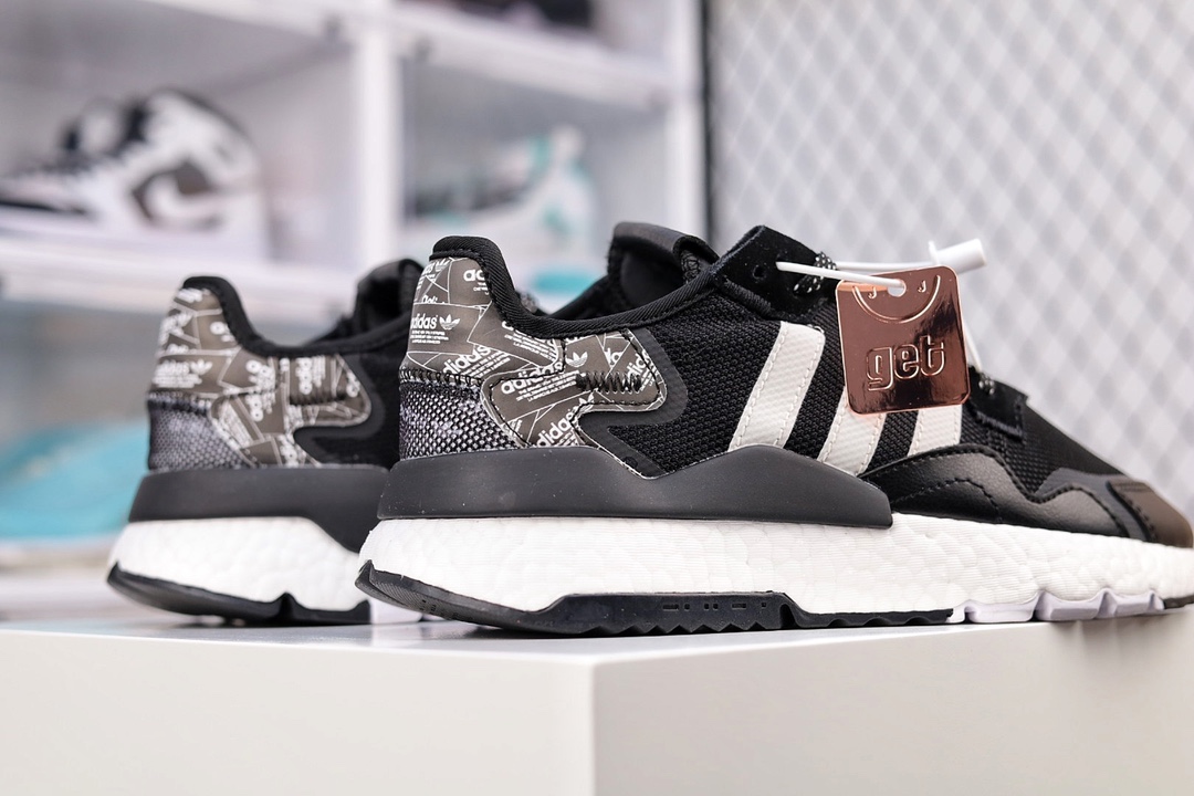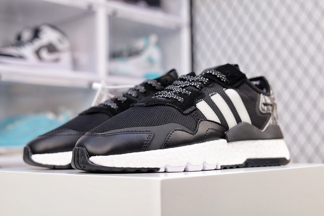 G5 纯原版本 Adidas Nite Jogger 2020 Boos 三叶草 联名夜行者 复古跑鞋原厂材料 原厂大底 家独模 网布搭配麂皮拼接打造鞋面 极具复古风格鞋头及鞋跟点缀3M反光设计极为亮眼中底采用全掌 Boost 科技,厚度相当可观,脚感极佳