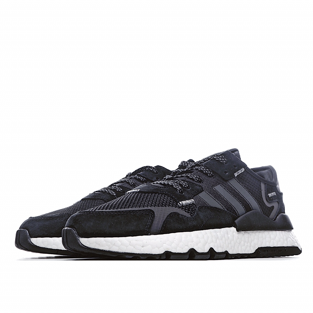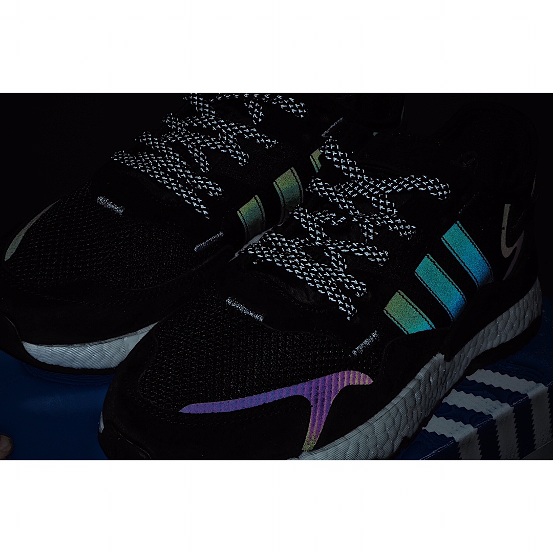G5 Adidas 阿迪达斯 Nite Jogger Boost 夜行者3M反光复古跑鞋 原厂材料 原厂大底 私家独模 网布搭配麂皮拼接打造鞋面 极具复古风格 鞋头及鞋跟点缀3M反光 设计极为亮眼 中底采用全掌 Boost 科技 厚度相当可观 脚感极佳