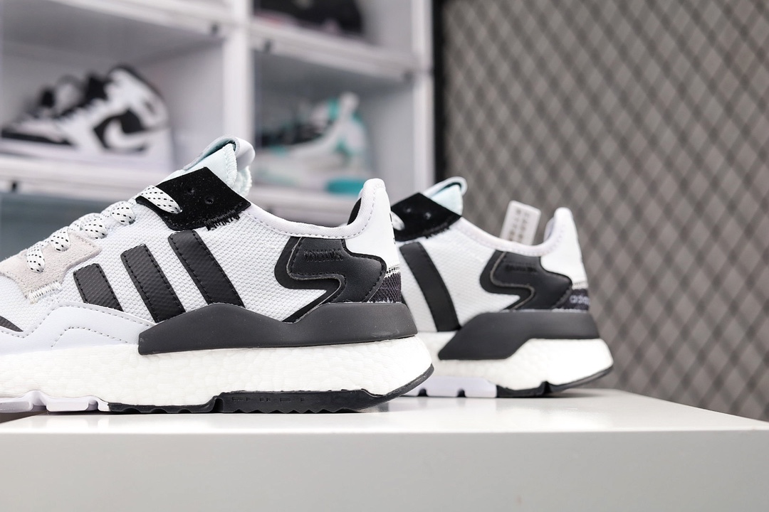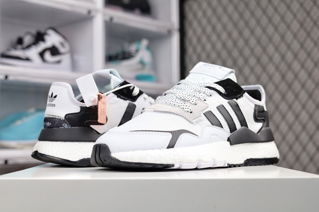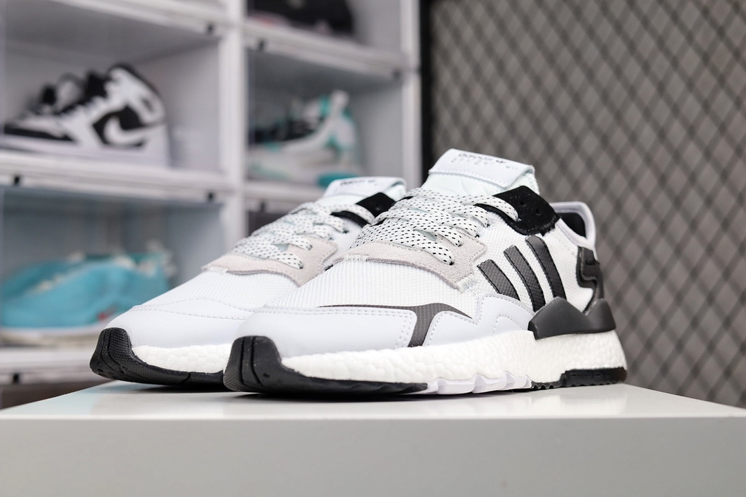 G5 Get版本 Nite Jogger 2019 Boost 全新配色王嘉尔代言款 针织透气鞋面 夜行者 3M反光 真爆大底复古跑鞋。 针织透气网布搭配麂皮拼接打造鞋面 极具复古风格鞋头及鞋跟点缀3M变色反光设计极为亮眼中底采用全掌 Boost 科技,厚度相当可观,超舒适脚感×553YF货号:FW6 F5 0 尺码:36-45(带半码)