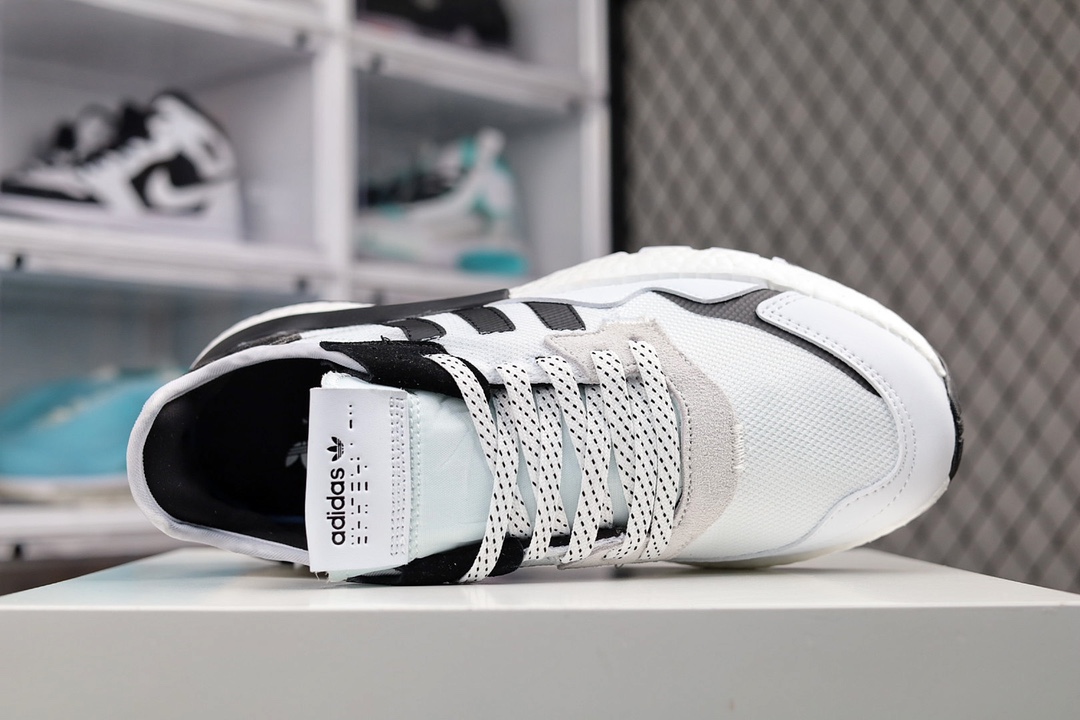 G5 Get版本 Nite Jogger 2019 Boost 全新配色王嘉尔代言款 针织透气鞋面 夜行者 3M反光 真爆大底复古跑鞋。 针织透气网布搭配麂皮拼接打造鞋面 极具复古风格鞋头及鞋跟点缀3M变色反光设计极为亮眼中底采用全掌 Boost 科技,厚度相当可观,超舒适脚感×553YF