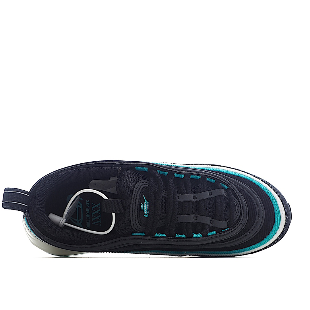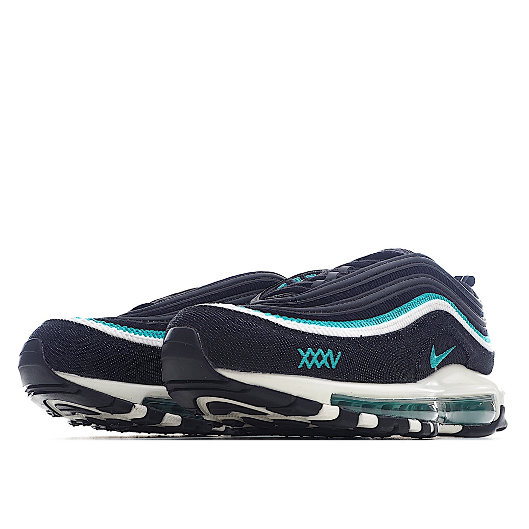 H0 公司级Air Max 97 的 25 周年纪念,本次发布还向 Air Max 系列的 35 周年致敬,鞋垫和前掌刺绣上印有特殊的“XXXV”字样,以及“3JP Sport Turbo”品牌字样. 白色中底和黑色橡胶外底顶部的 3M 反光细节完善了设计。