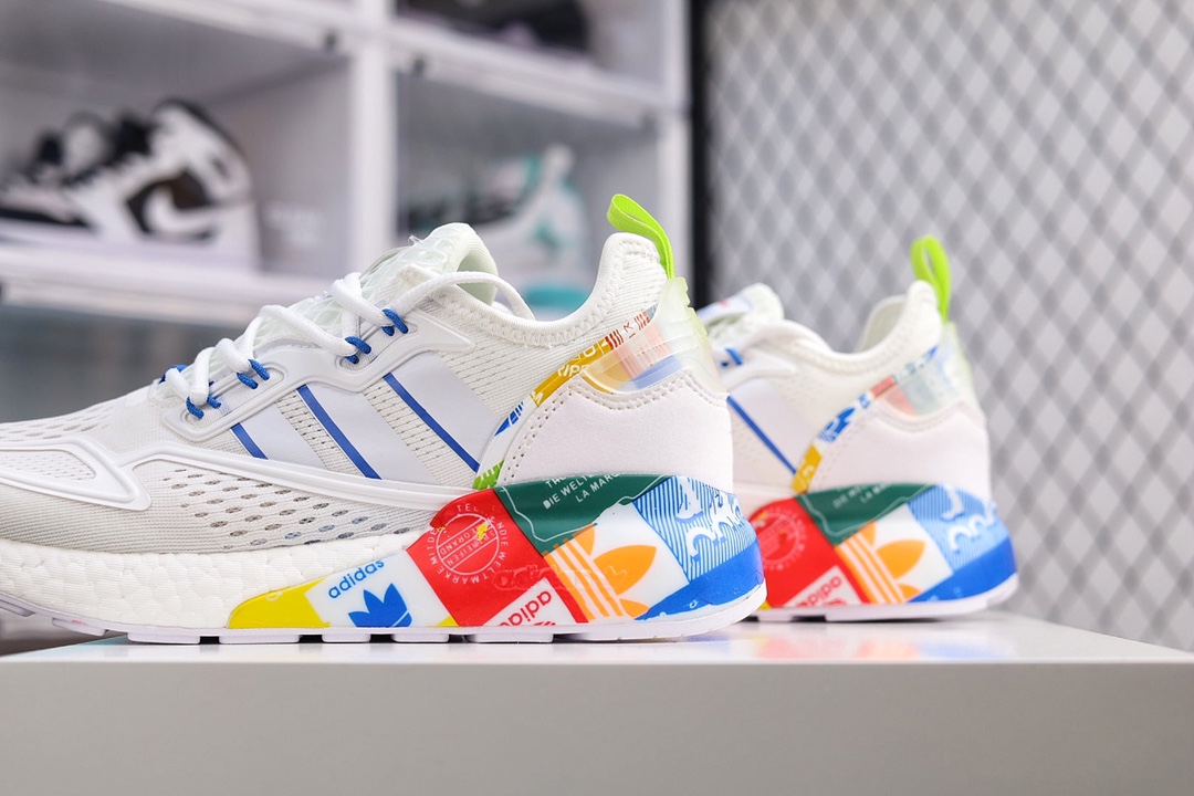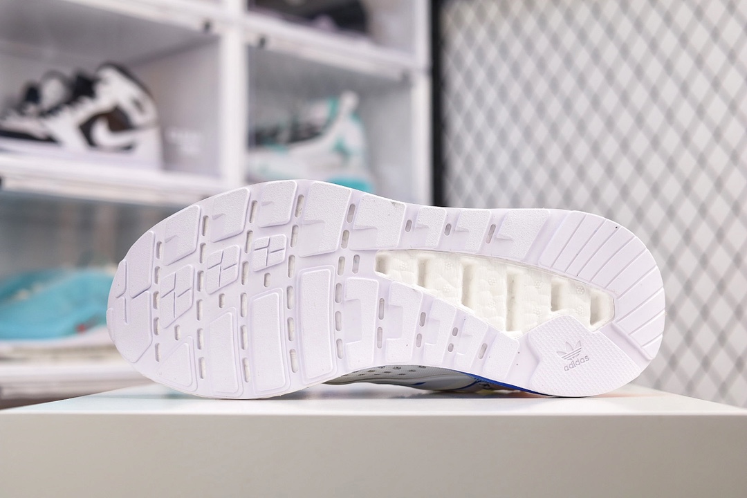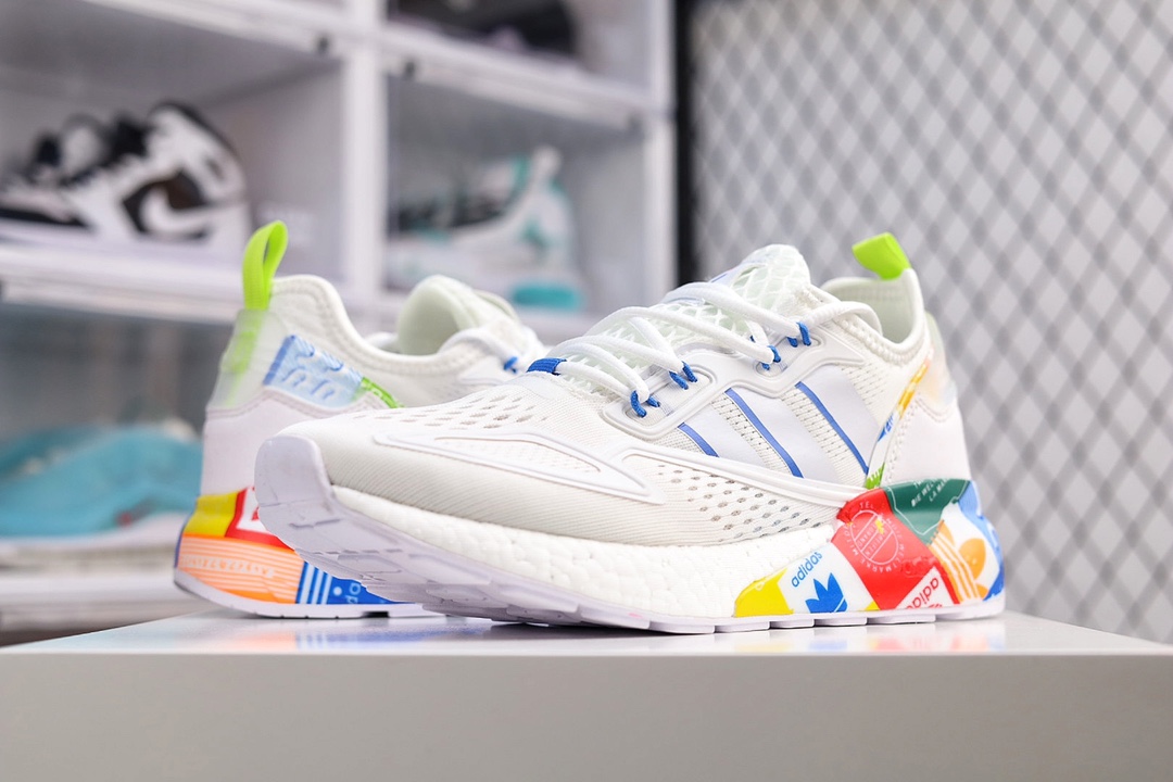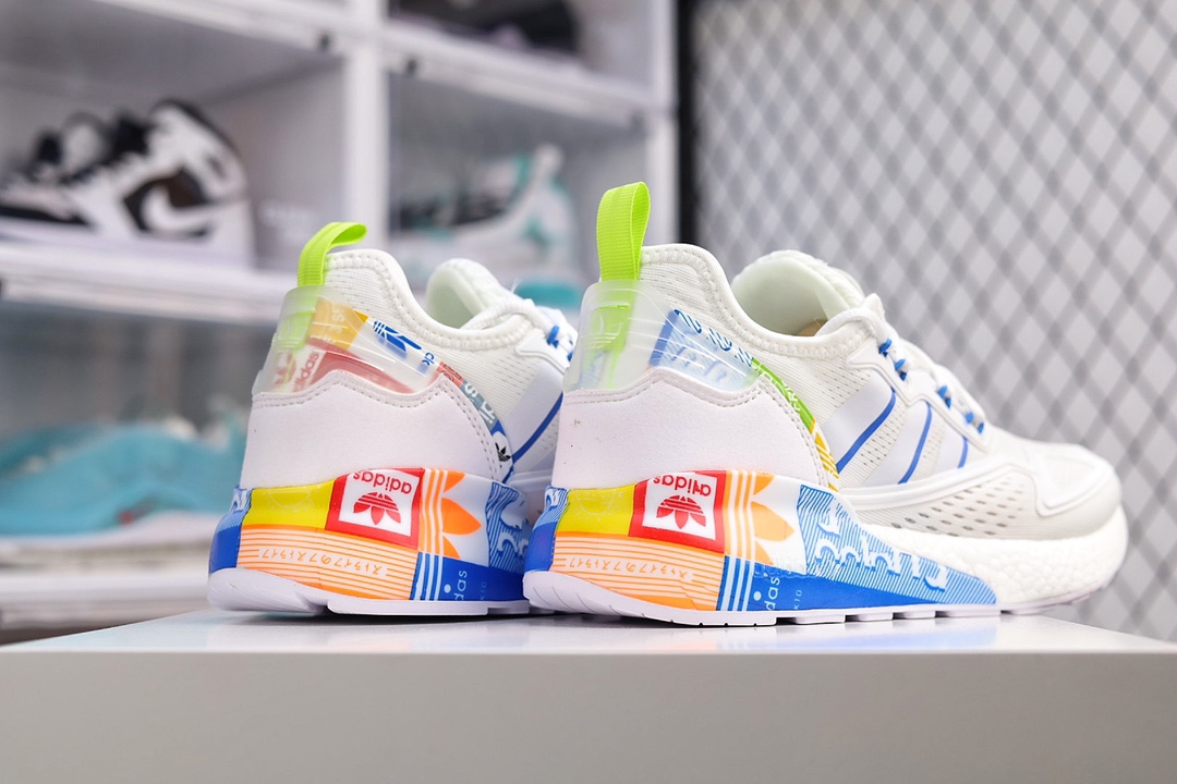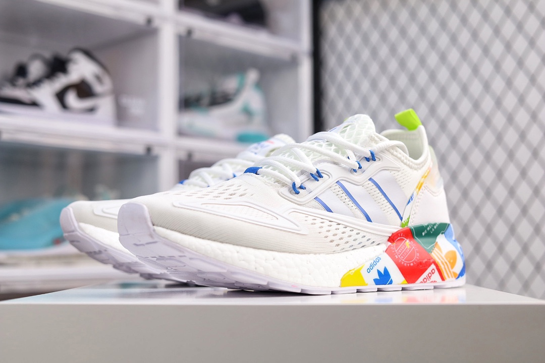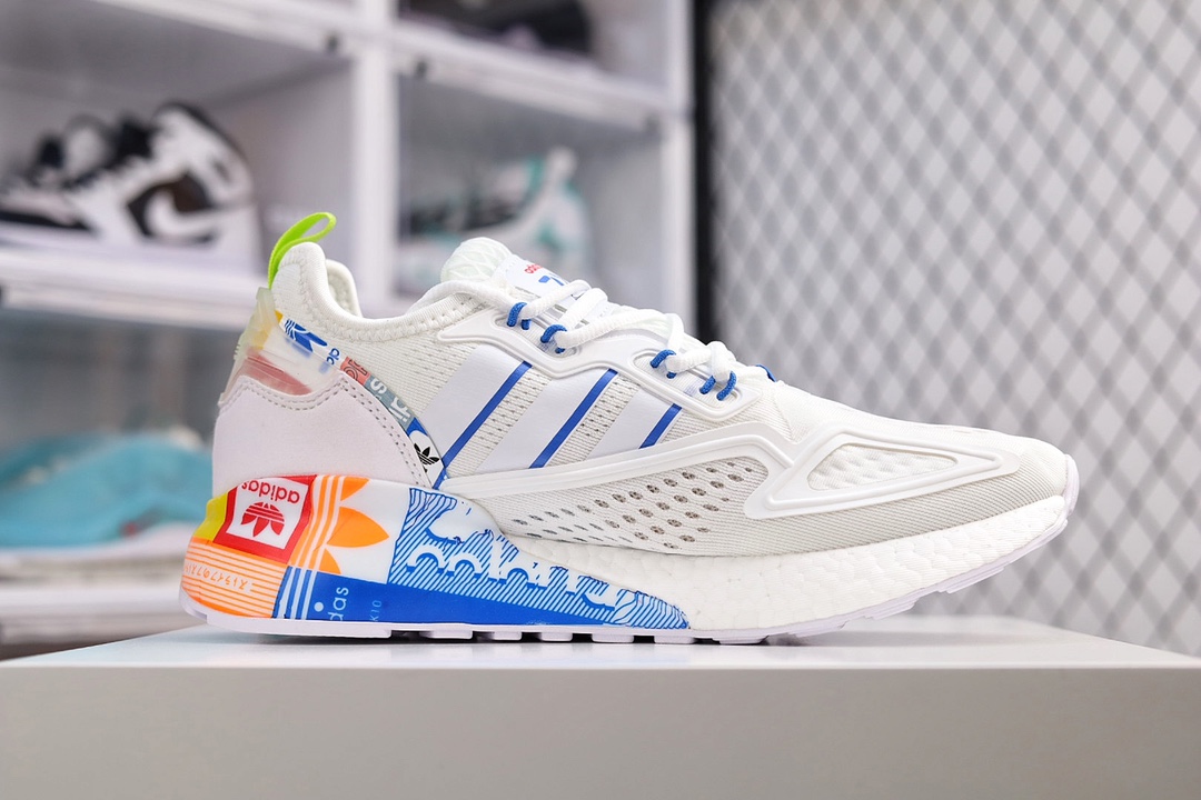 H0 AD Originals ZX 2K Boost 白蓝橙这款街头经典板鞋,采用科技风设计。网材鞋面搭配模制饰面,力求打造未来风范。别致外底,力求伴你保持节奏。采用套入式结构,同时也配鞋带。官方