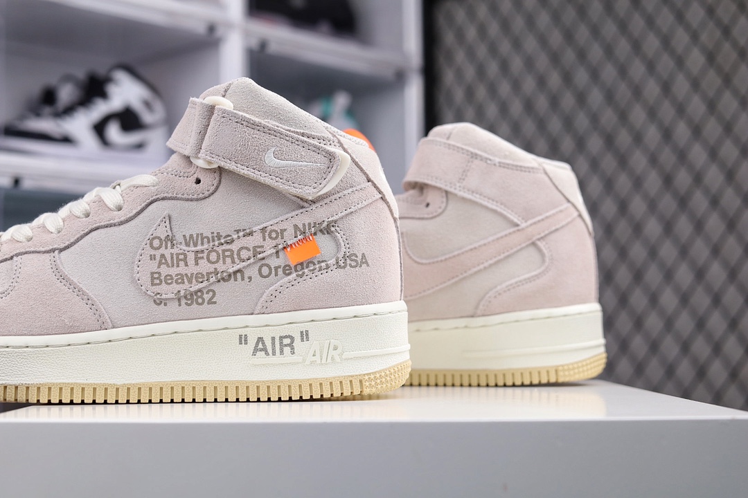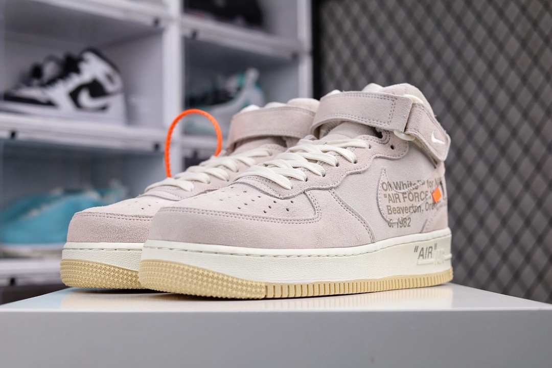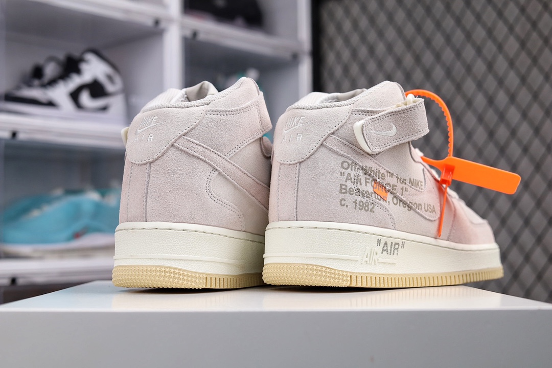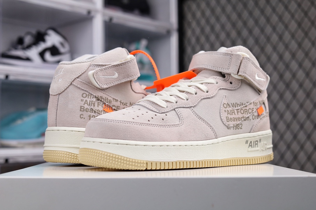 H0 Nike Air Force 1 X Ow联名款麂皮灰 空军一号中帮运动休闲板鞋 客供模具、原材料,内置全掌Solo 原楦头纸板 打造最完美空军鞋型