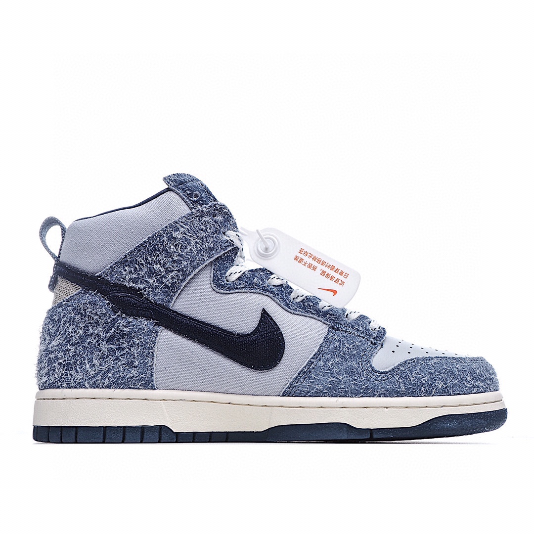 H0 Nike SB Dunk Hight“Strawberry Cough” 灰蓝色长绒毛 高帮休闲运动滑板鞋